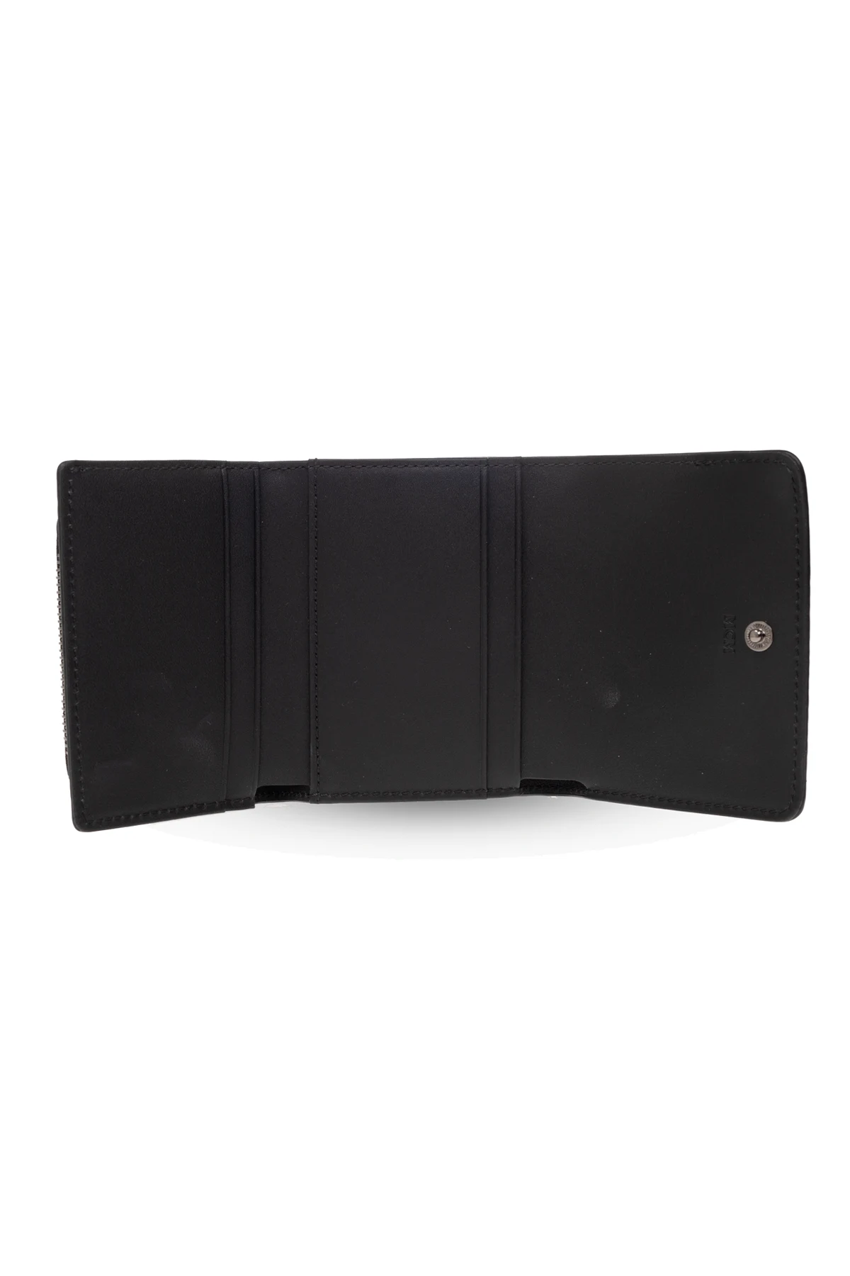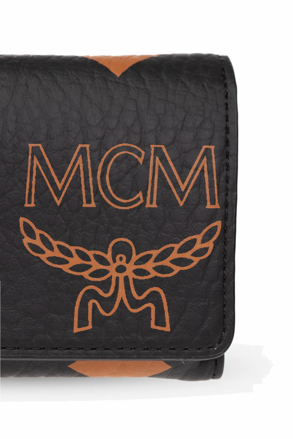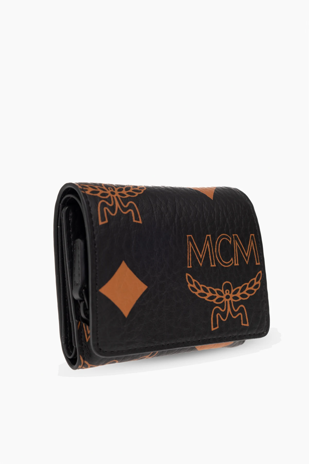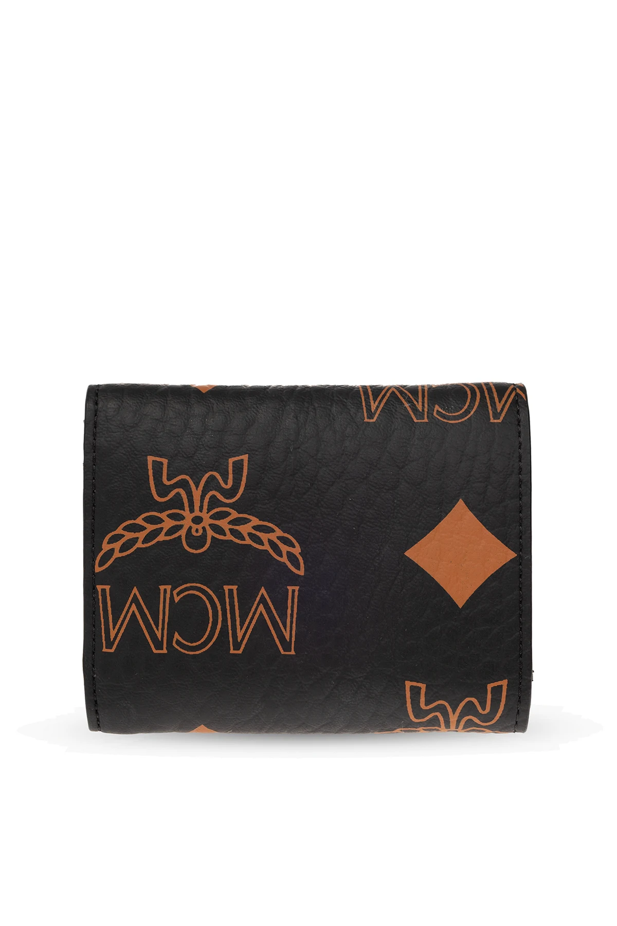 Black wallet from MCM. Crafted from coated canvas with a brown Visetos monogram, this item fastens with a snap and features one bill compartment, one zip coin pocket and four card slots inside.