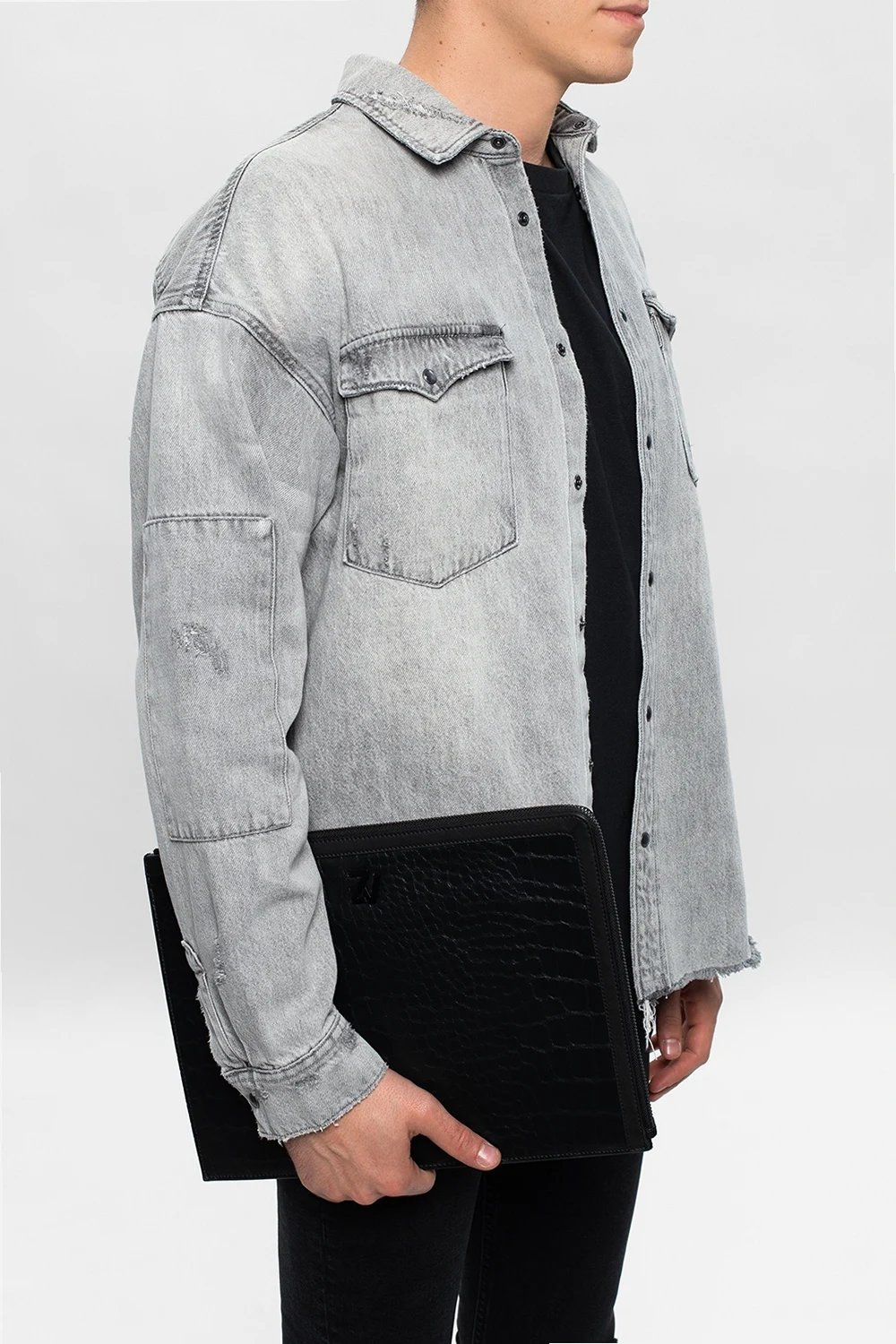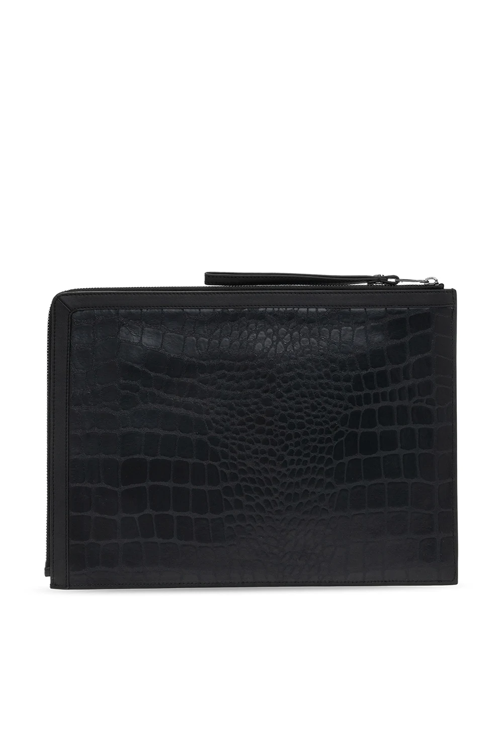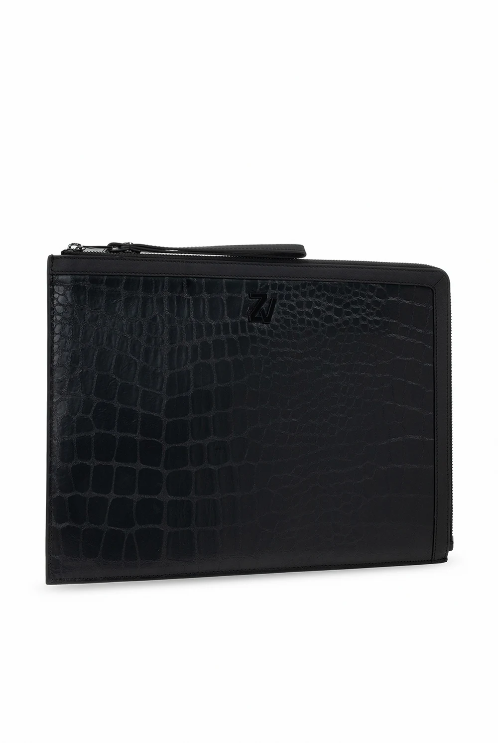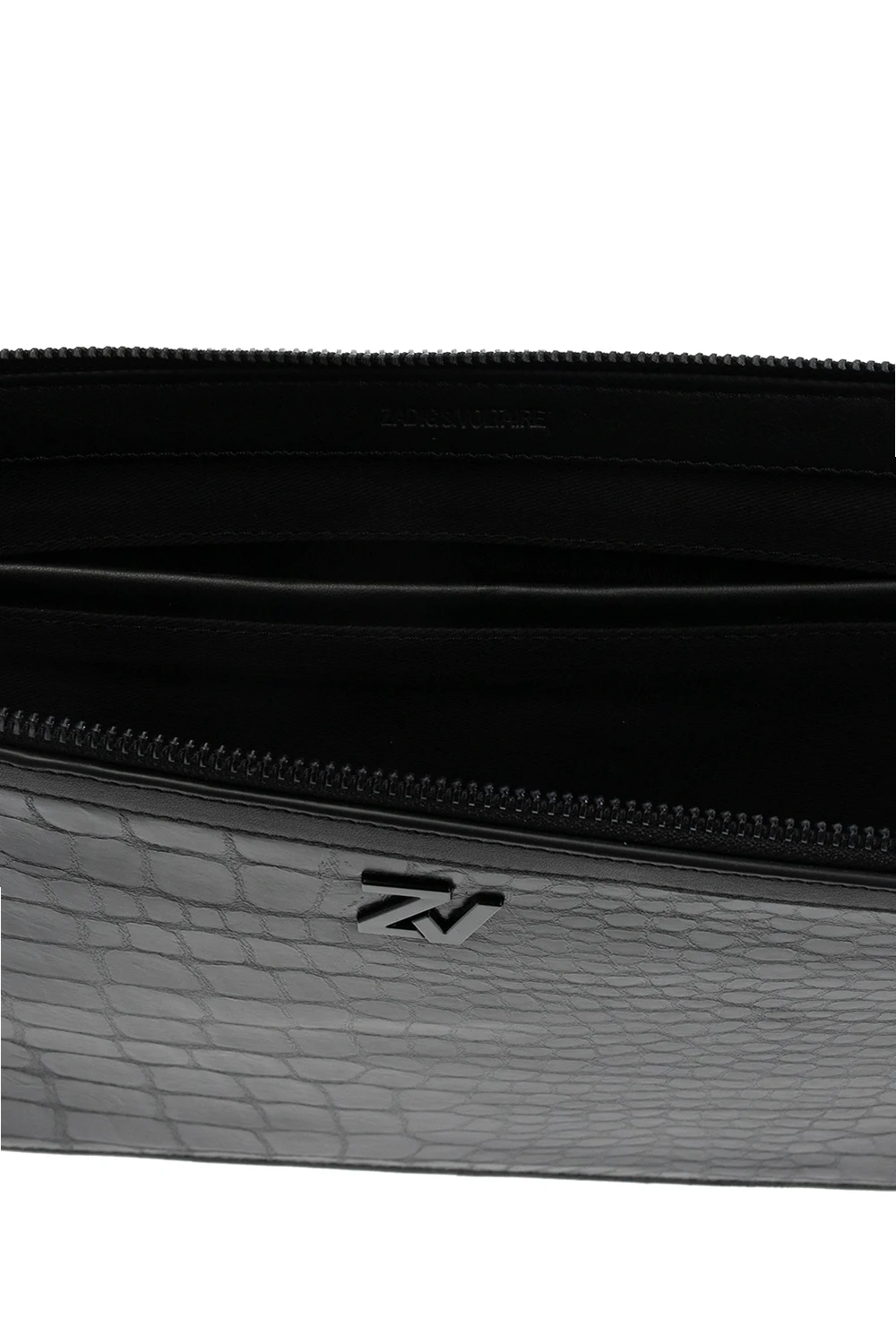 Black hand bag from Zadig & Voltaire. Crafted from leather with a crocodile skin effect, this item features zip fastening, metal logo, grey metal hardware and one internal compartment with one slip pocket.