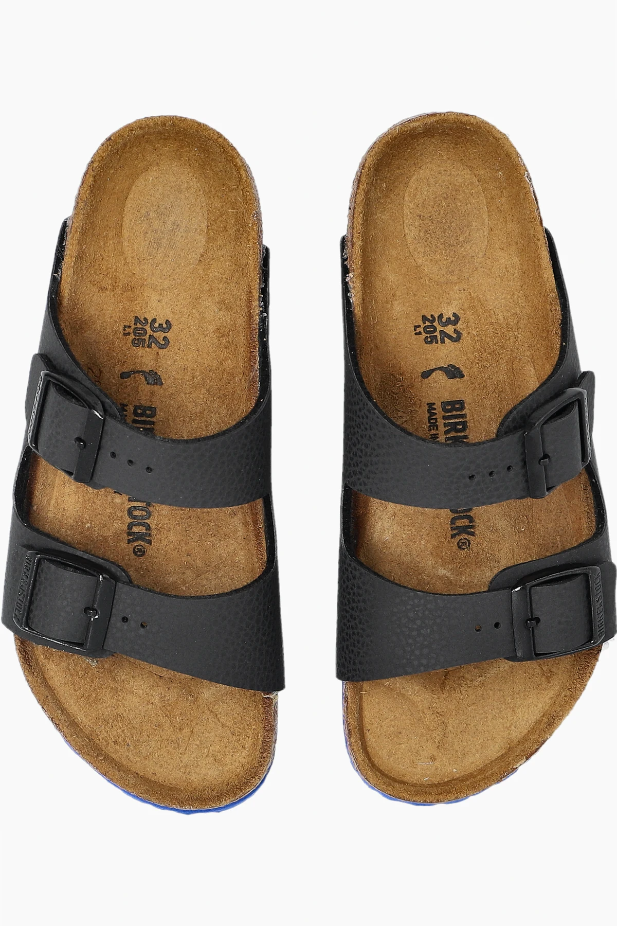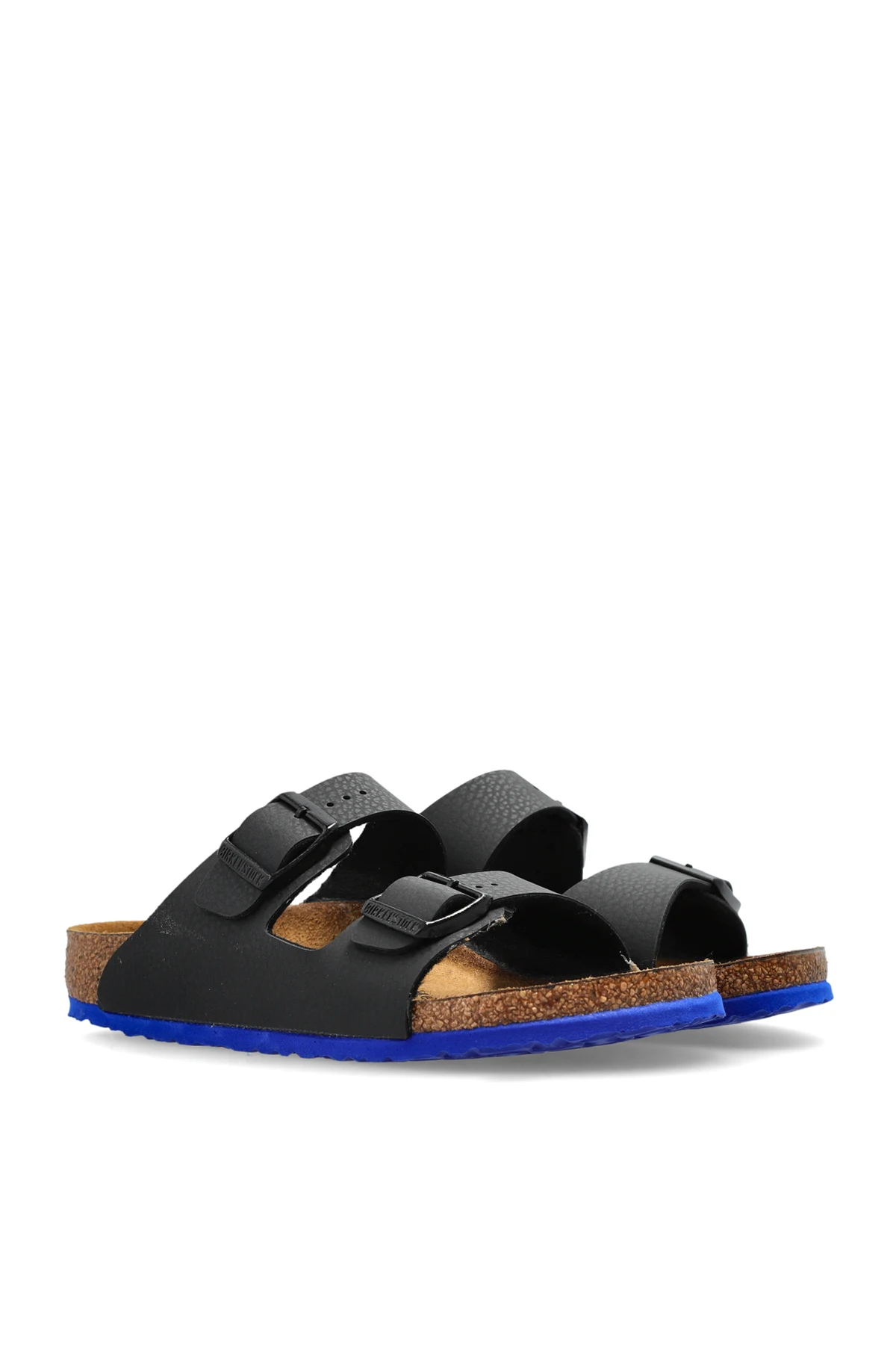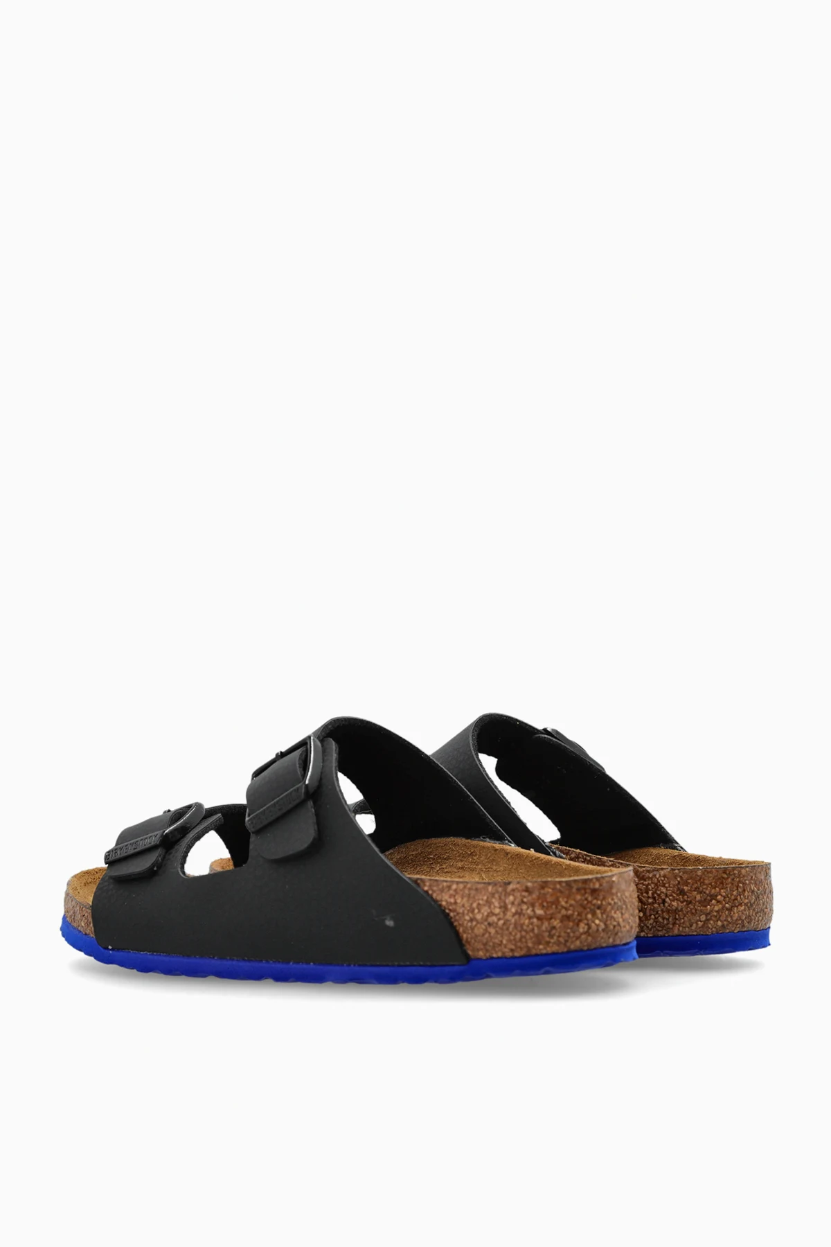 Introducing the distinguished Arizona Kids BS sandals by Birkenstock Kids, a quintessential selection for the youthful connoisseur of style. These classic sandals are adorned with two broad, adjustable black straps, crafted from durable materials to ensure a perfect fit for growing feet. The interior footbed, meticulously fashioned from natural cork, provides heavenly comfort and flexible support, ideal for dynamic summer adventures. The blue outsole offers a striking contrast to the predominant black, infusing a playful yet sophisticated touch to these iconic sandals. Perfect for children, these slippers epitomize both functionality and aesthetic charm, resonating with the elegance of renowned fashion marques. With visible size markings and the esteemed brand logo on the insole, these sandals are as practical as they are stylish. Why Choose This Product? Iconic Design: A timeless look with adjustable straps for a custom fit. Supreme Comfort: Cork footbed offers exceptional support for little feet. Stylish Contrast: Blue outsole adds a vibrant edge to the black elegance. Versatile: Perfect for beach outings or park strolls.