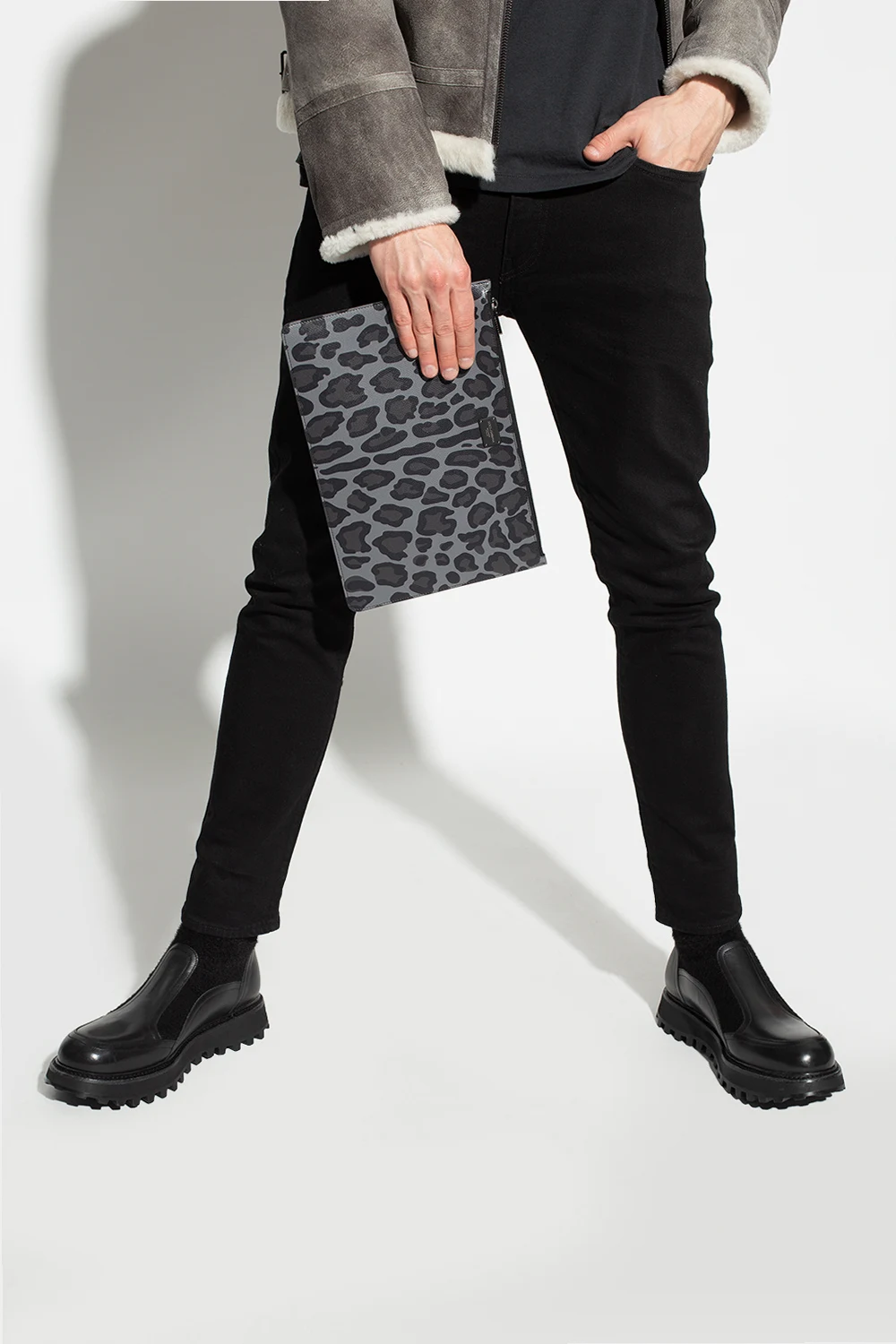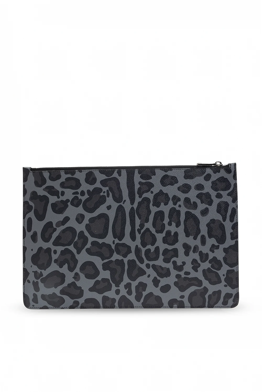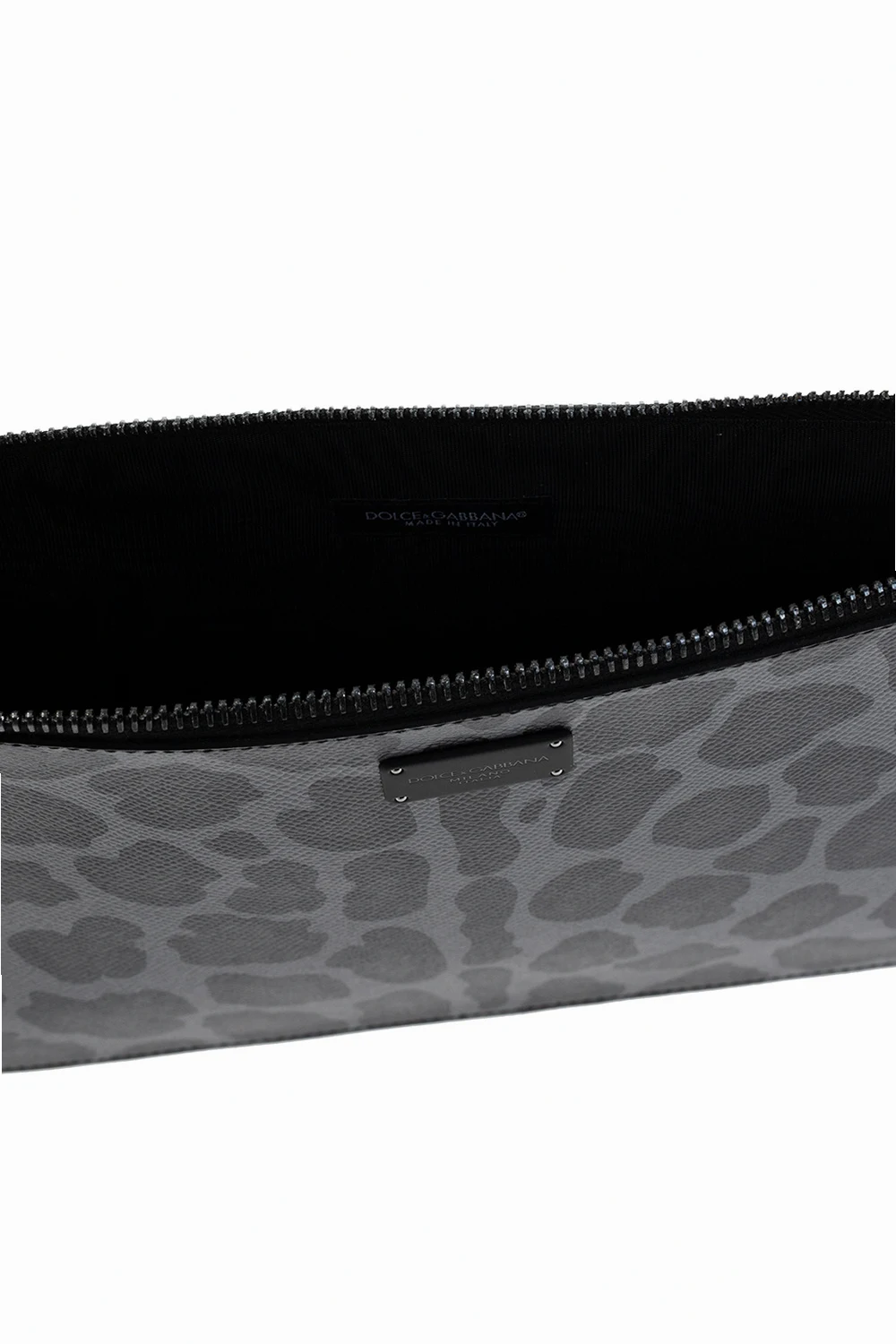 Black and grey handbag from Dolce & Gabbana. Crafted from calf leather, this design fastens via a zipper and showcases an animal motif, a logo appliqué on the front, grey metal hardware and one internal compartment.