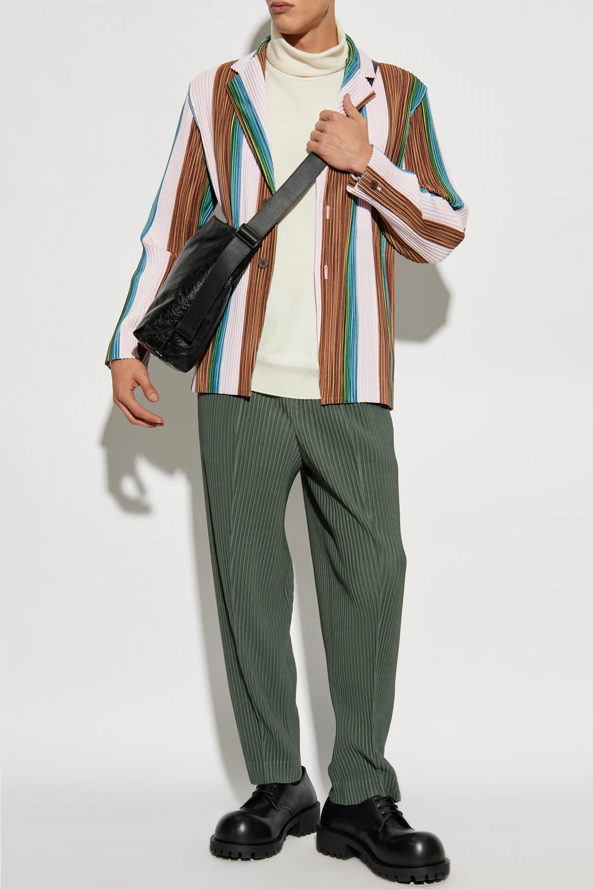 Introducing the exquisite Wool Turtleneck Sweater from the exclusive collection of Homme Plissé Issey Miyake. This luxurious garment exemplifies timeless elegance and superior craftsmanship. Meticulously crafted from the finest wool, this turtleneck sweater ensures unparalleled warmth and comfort. The material is supremely soft and delicate to the touch, providing an exceptional wearing experience. Featuring a classic, straight cut with long sleeves, this sweater boasts a high turtleneck collar that can be stylishly folded down. The subtle cream hue lends an air of sophistication and versatility, making it an impeccable addition to any wardrobe. Designed without any additional patterns or embellishments, this sweater embraces minimalistic elegance. Ribbed cuffs and hem offer a tailored fit, enhancing the garment\'s overall aesthetic. The absence of external logos or brand markings emphasizes its understated luxury. The intricate, finely-woven texture of the wool fabric is showcased through detailed imagery, highlighting the superior quality and craftsmanship. This sweater seamlessly complements other wardrobe pieces, underscoring its versatility and timeless appeal. Why Choose This Product? Superior Material: Made from 100% premium wool for ultimate warmth and comfort. Elegant Design: Classic turtleneck with a sophisticated cream color. Expert Craftsmanship: Meticulously designed with ribbed cuffs and hem for a perfect fit. Versatile: Complements various styles and outfits, ideal for any occasion. Exclusive Collection: A piece from the renowned Homme Plissé Issey Miyake, known for innovative and modern menswear.