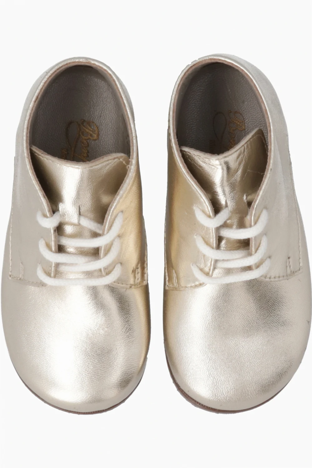 Gold-tone ‘Joyau’ shoes from Bonpoint. Made of calf leather, this lace-up pair rests on a rubber sole in black and brown.
