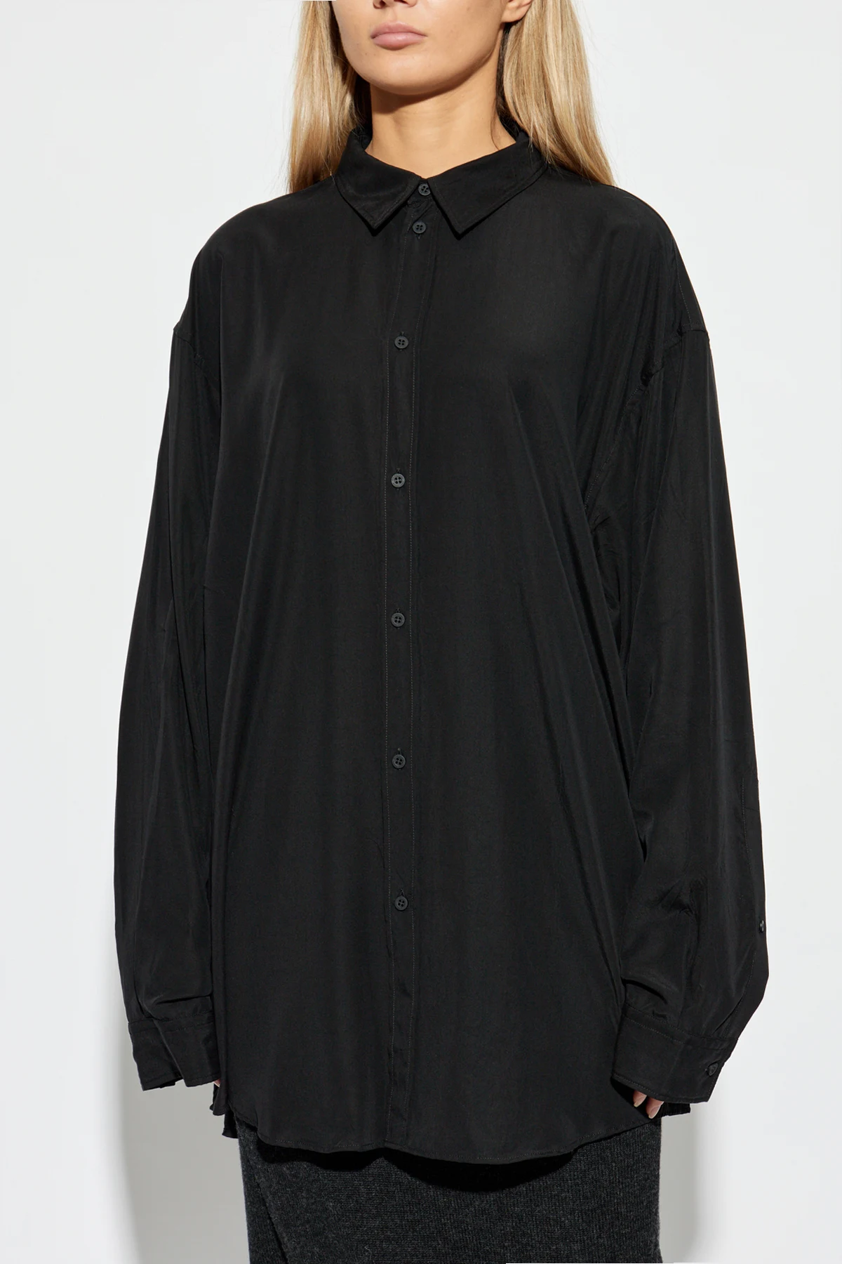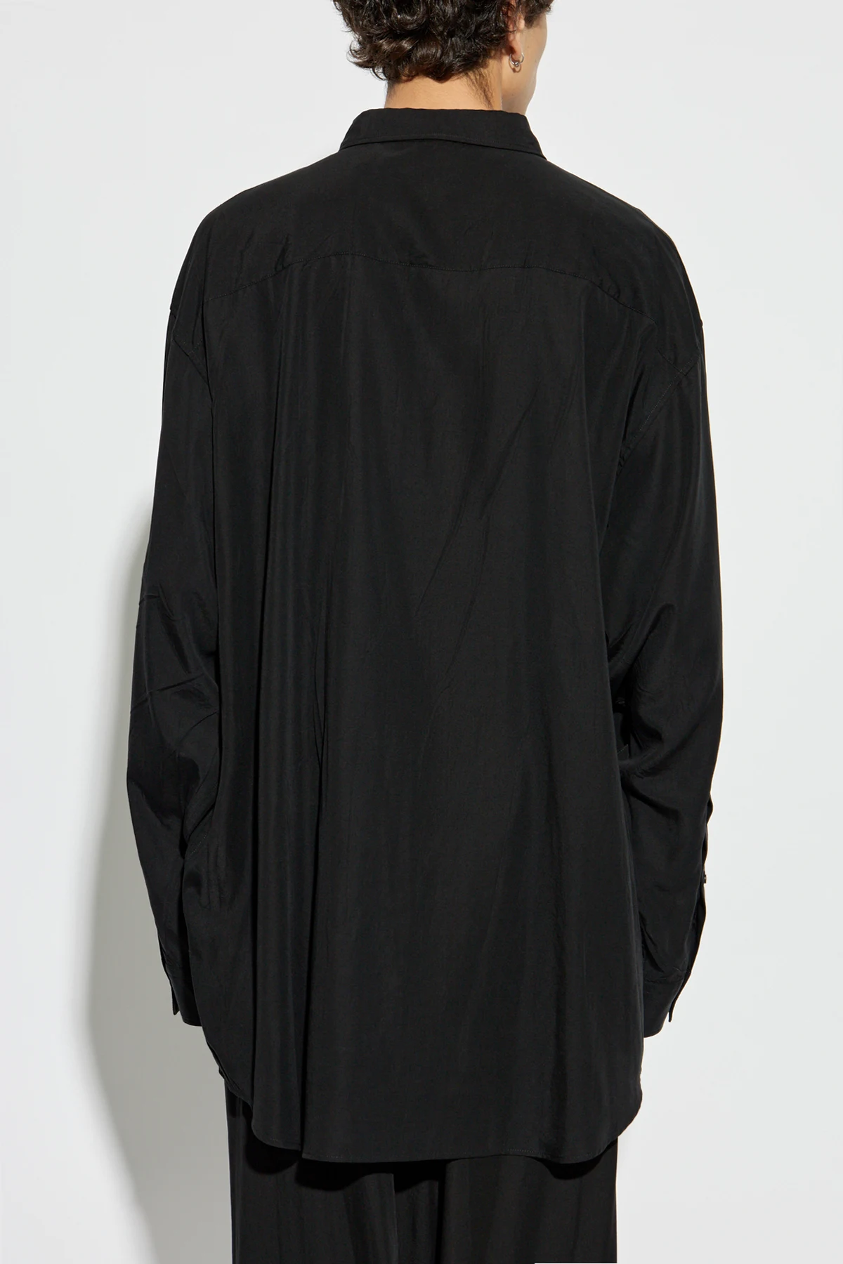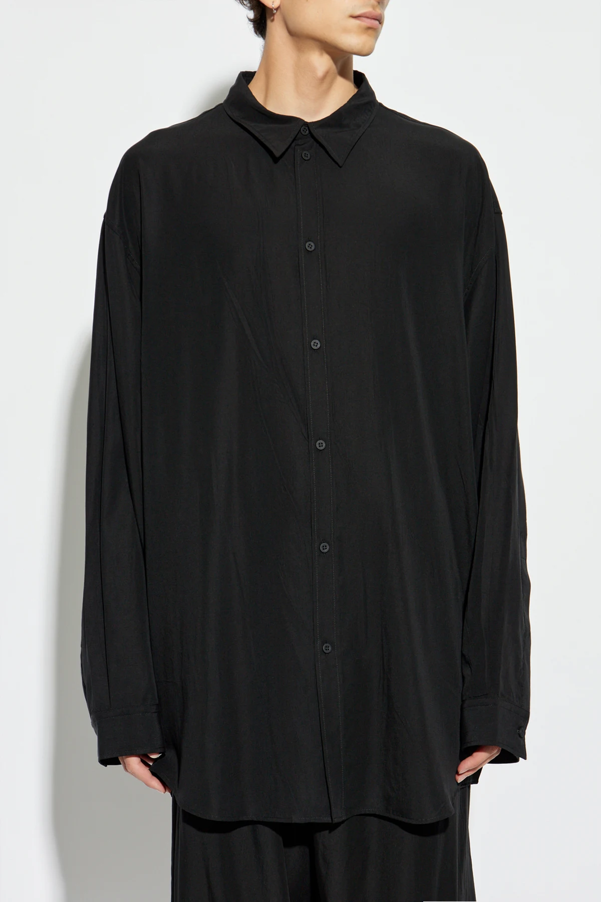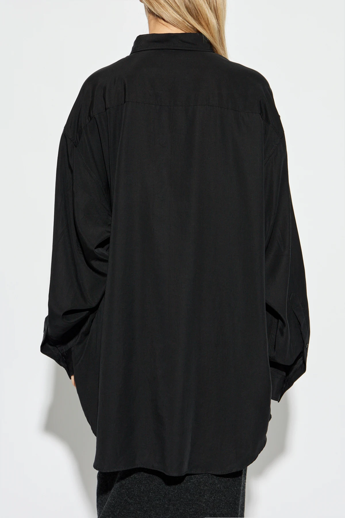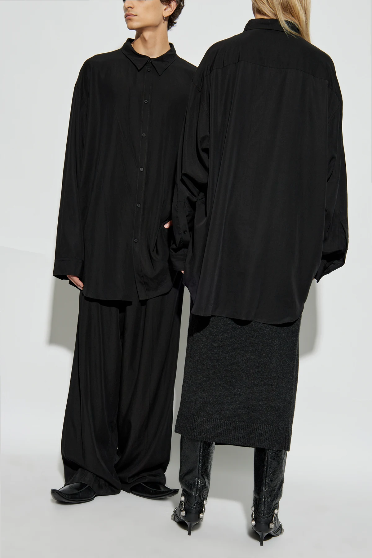 Introducing the Loose-Fit Shirt from the exclusive collection by the renowned designers at Balenciaga. This shirt epitomizes the perfect blend of contemporary style and timeless elegance. Crafted from 100% Lyocell, the fabric offers a lightweight and soft texture, ensuring unparalleled comfort. The shirt\'s loose fit and extended length provide a relaxed yet sophisticated silhouette, ideal for both casual and more formal occasions. The shirt features long, flowing sleeves with buttoned cuffs, adding a touch of refinement to its overall design. Its classic collar and discreet black buttons seamlessly integrate with the shirt\'s minimalist aesthetic, emphasizing its sleek and understated charm. This unisex shirt, presented in a classic black hue, is devoid of any additional patterns or prints, highlighting a clean and modern look. The absence of visible logos or text on the front underscores the brand\'s subtle and sophisticated branding. Why Choose This Product? Designed by the esteemed Balenciaga, a name synonymous with haute couture excellence. Made from high-quality, breathable 100% Lyocell for maximum comfort. Versatile loose-fit design suitable for various occasions and styles. Unisex, making it a perfect addition to any wardrobe. Minimalist and elegant, ideal for those who appreciate refined simplicity.