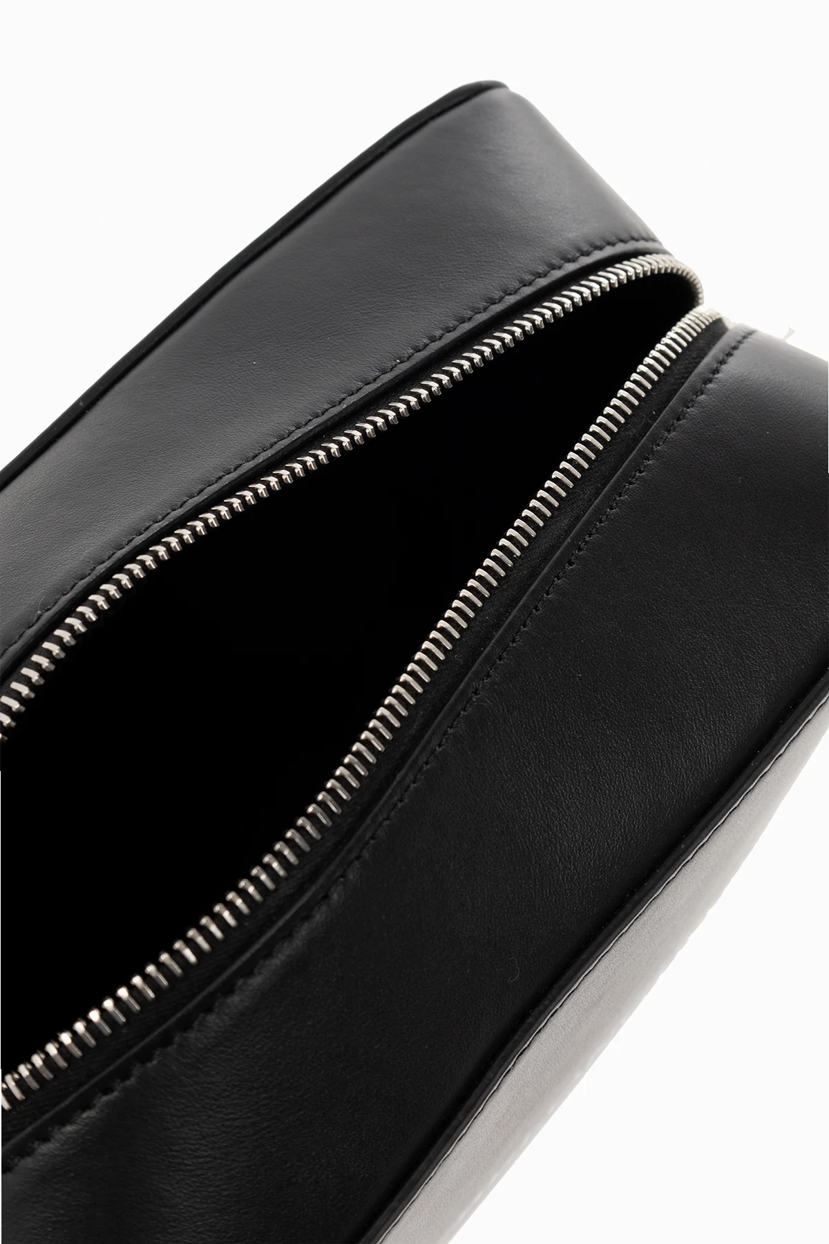 Black ‘Quote Bookish’ handbag from Off-White. Made of calf leather, this design features a zip fastening, white print, handle to the side, one internal compartment and silver-tone metal hardware.