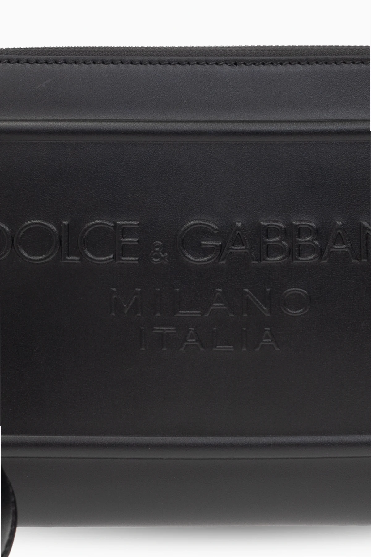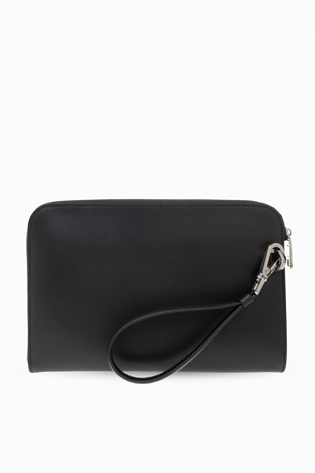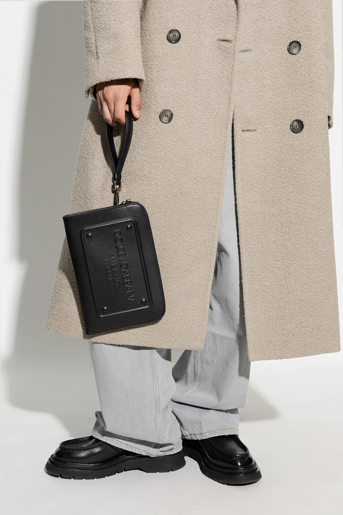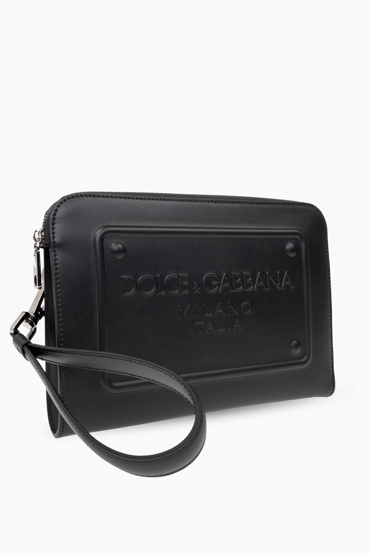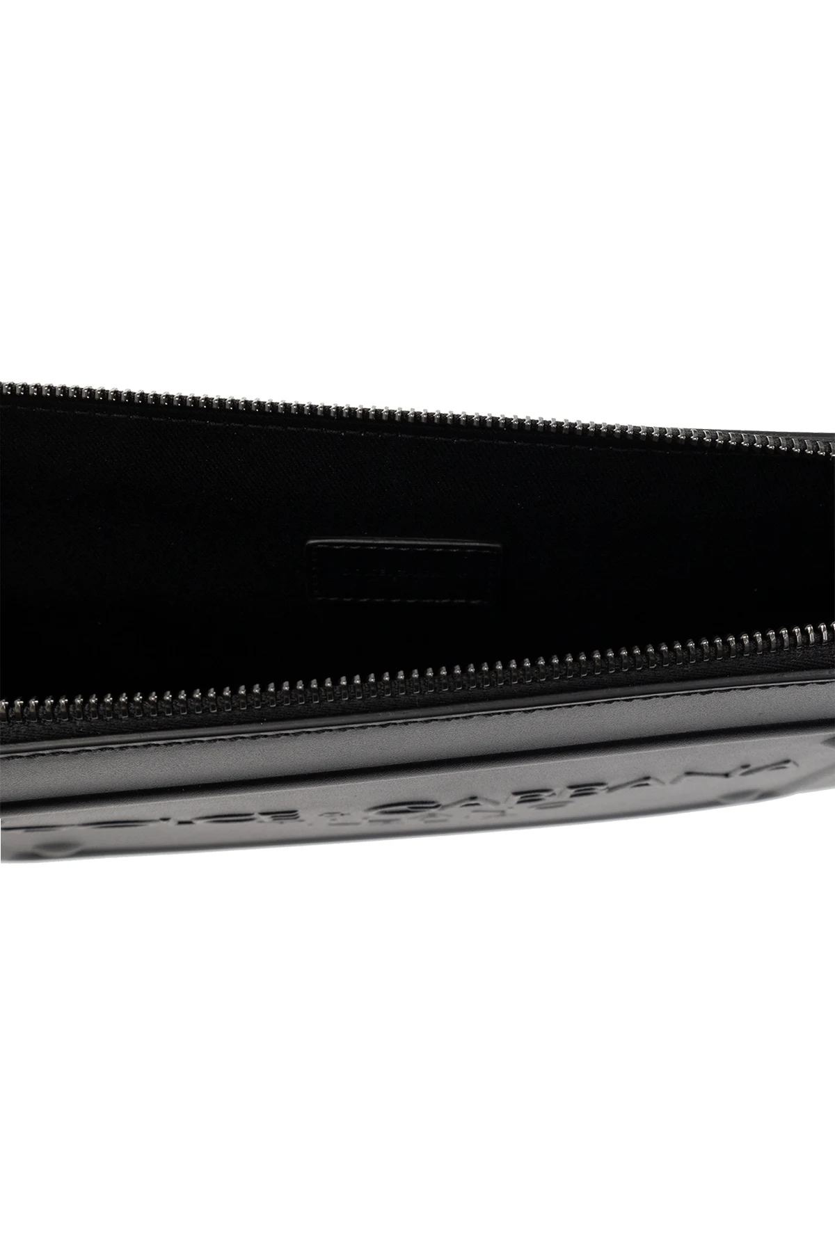 Black handbag from Dolce & Gabbana. Made of smooth leather, this design features a zip fastening, tactile logo, detachable wrist strap to the side and one internal compartment with two slip pockets.