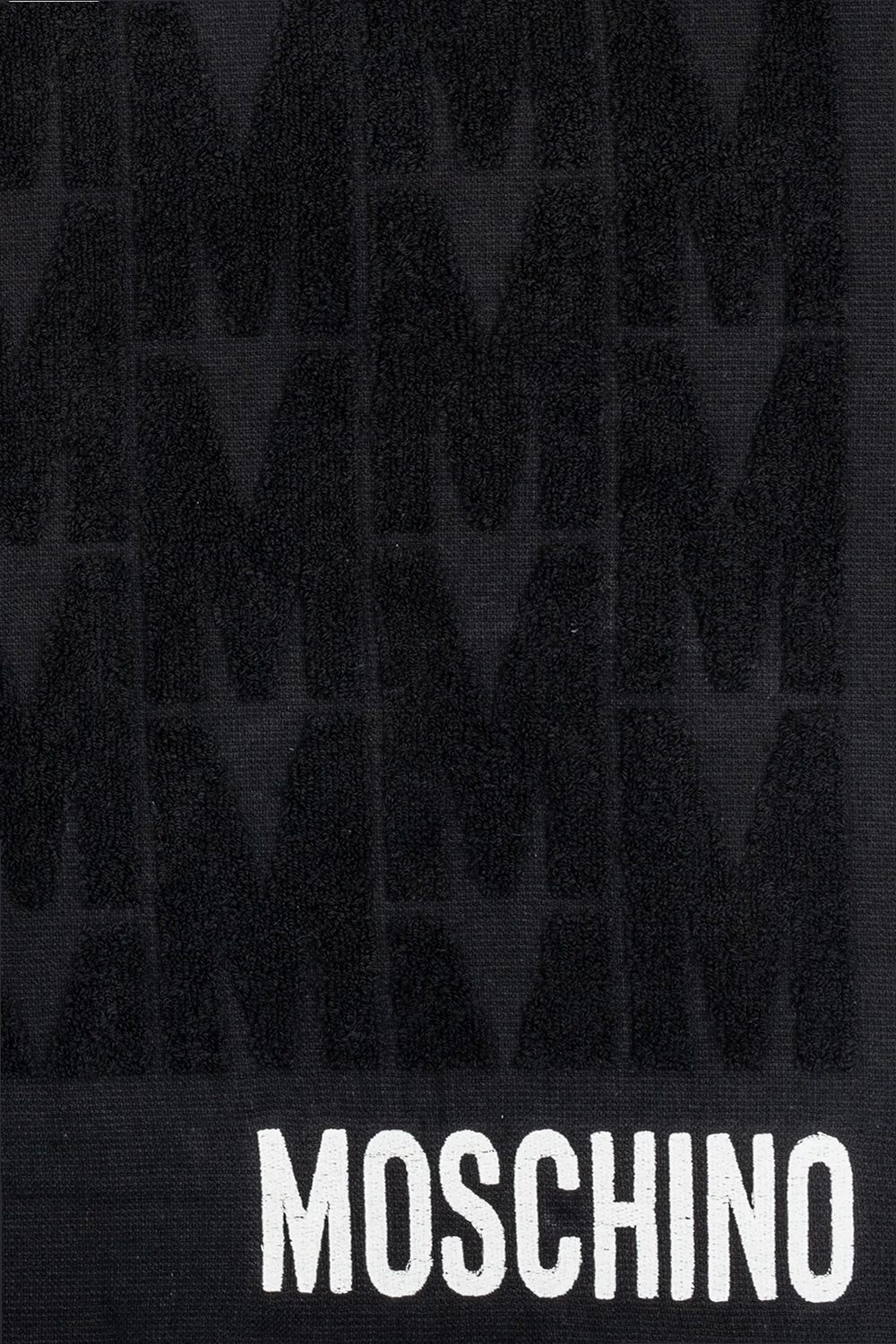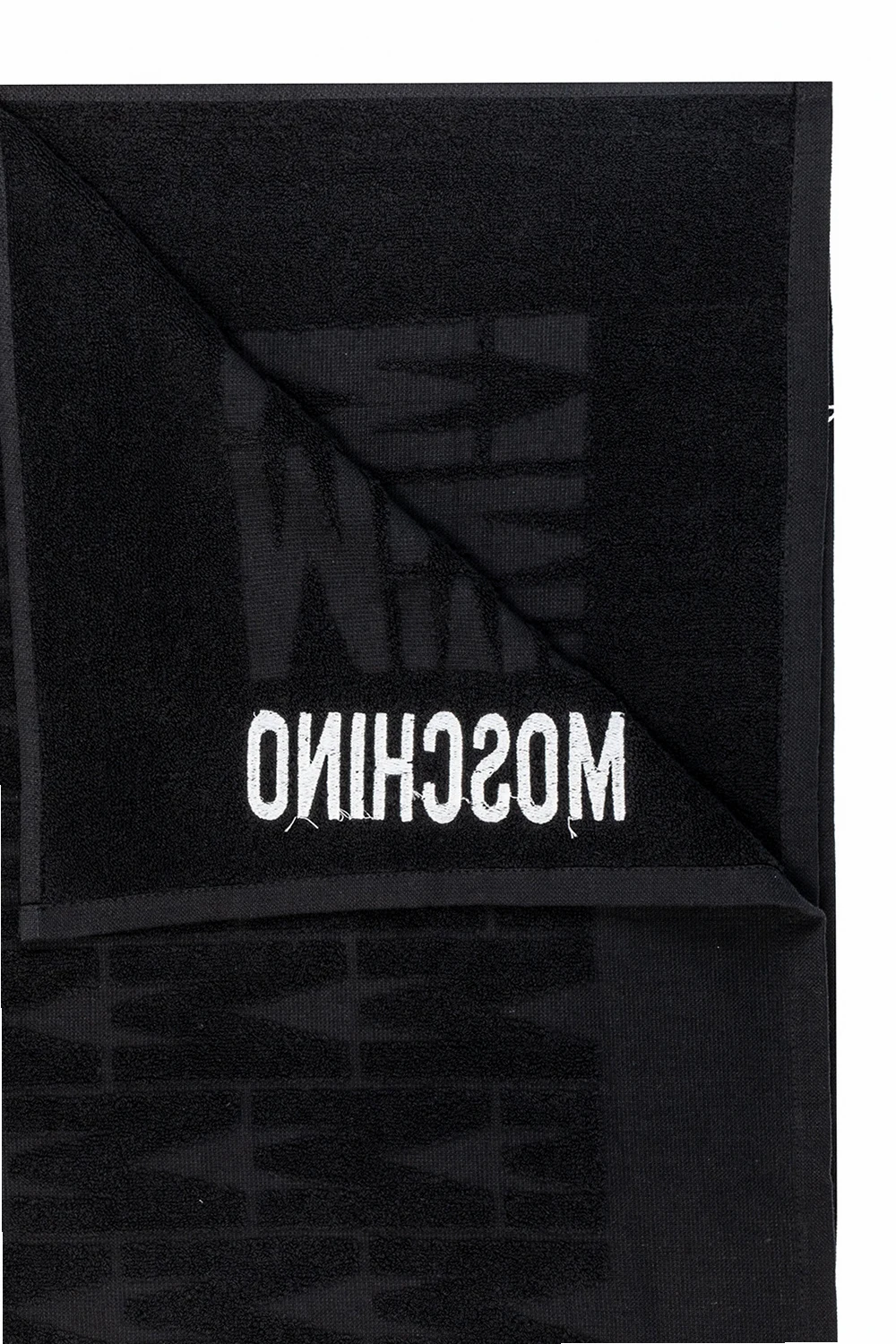 Black bath towel from Moschino. Made of cotton, this item showcases an embroidered logo.
