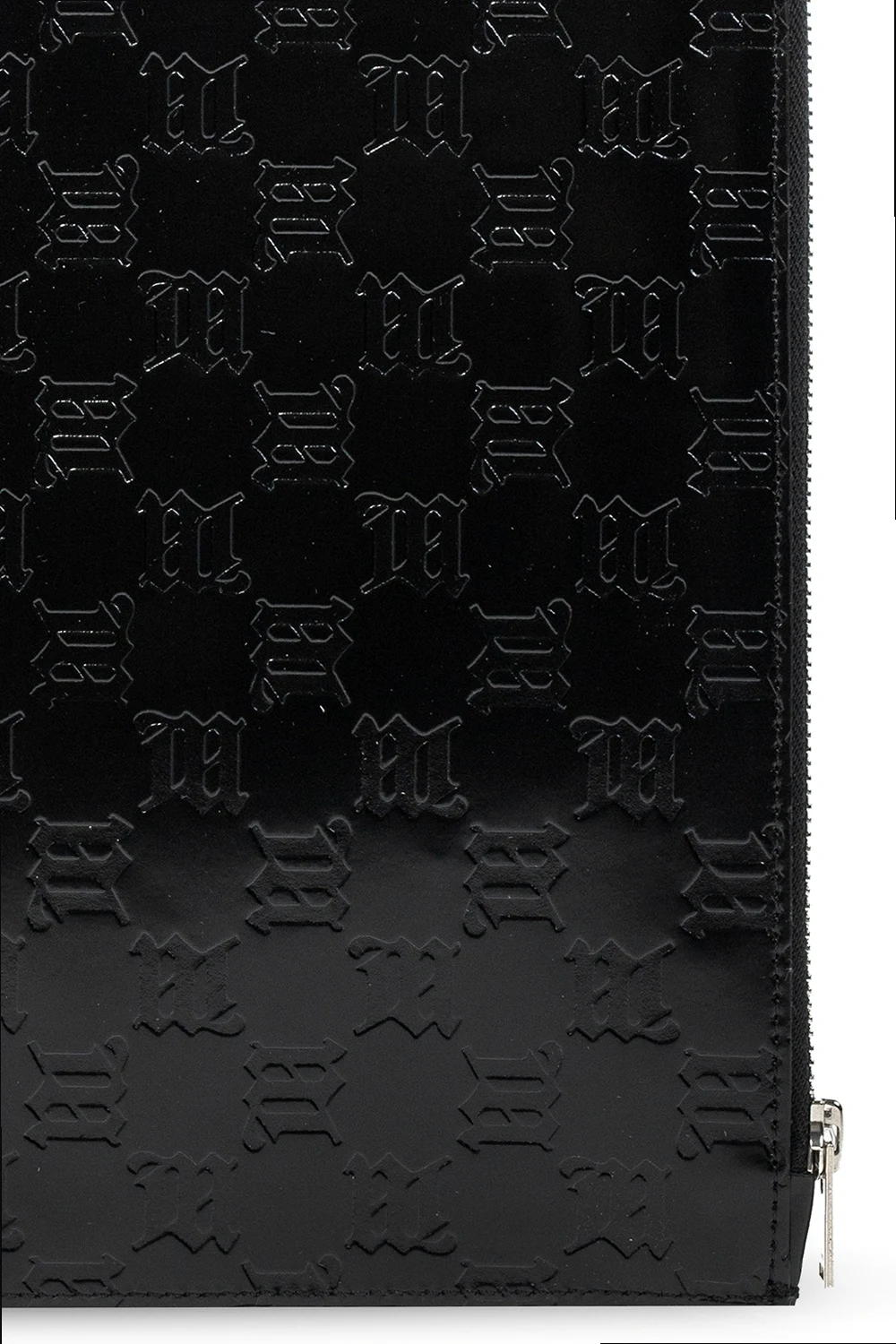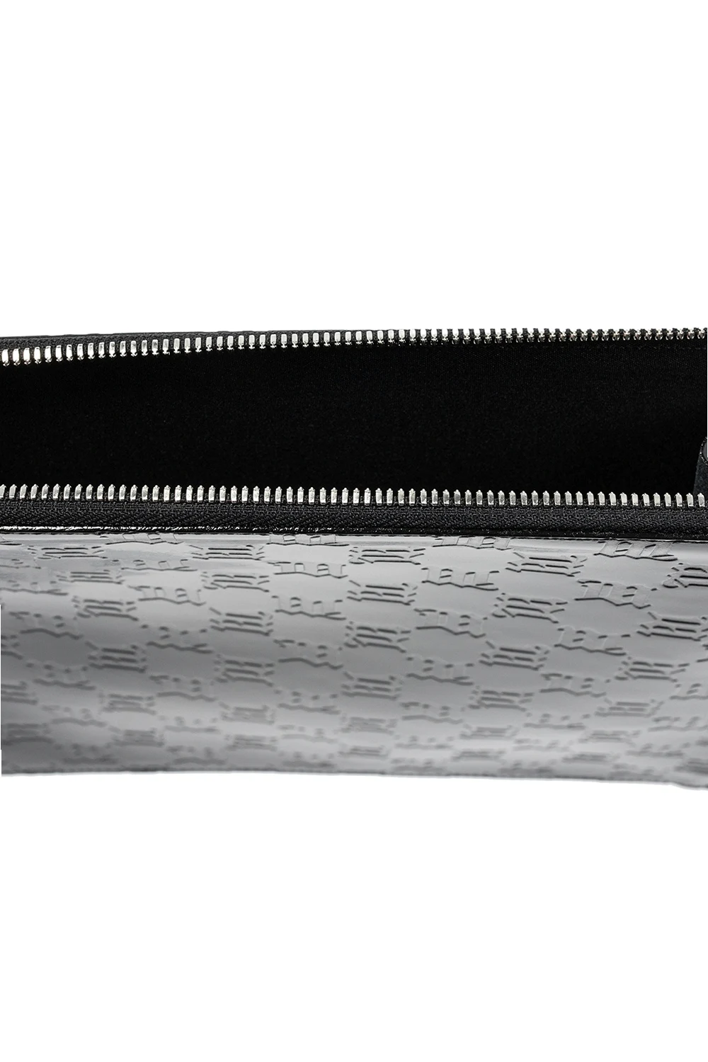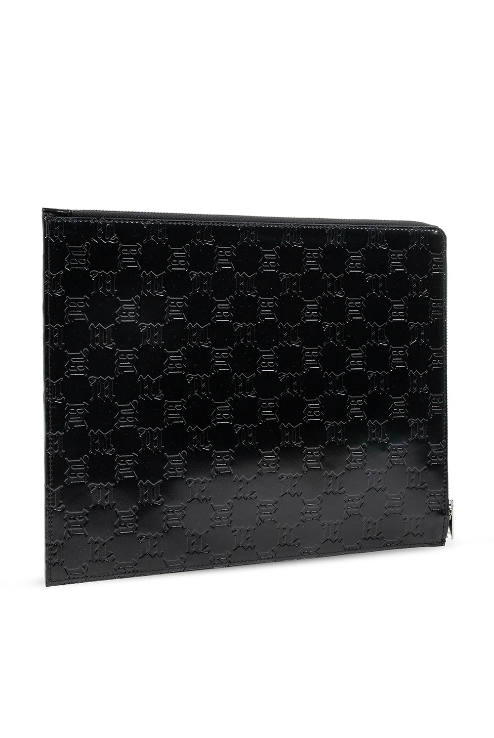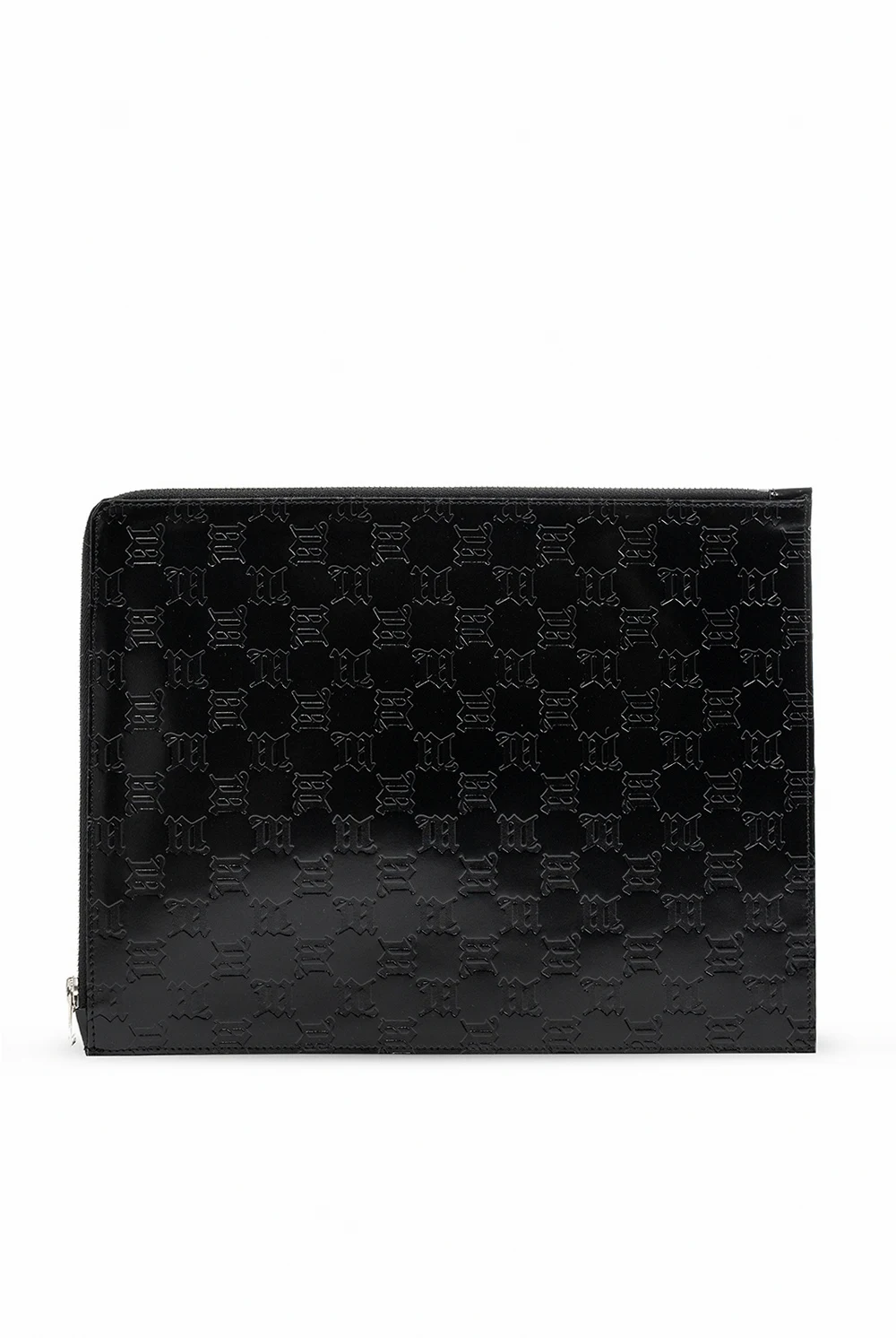 Black clutch from MISBHV. Crafted from leather, this item fastens with a zip and features a logo pattern, one internal compartment and silver-tone metal hardware.