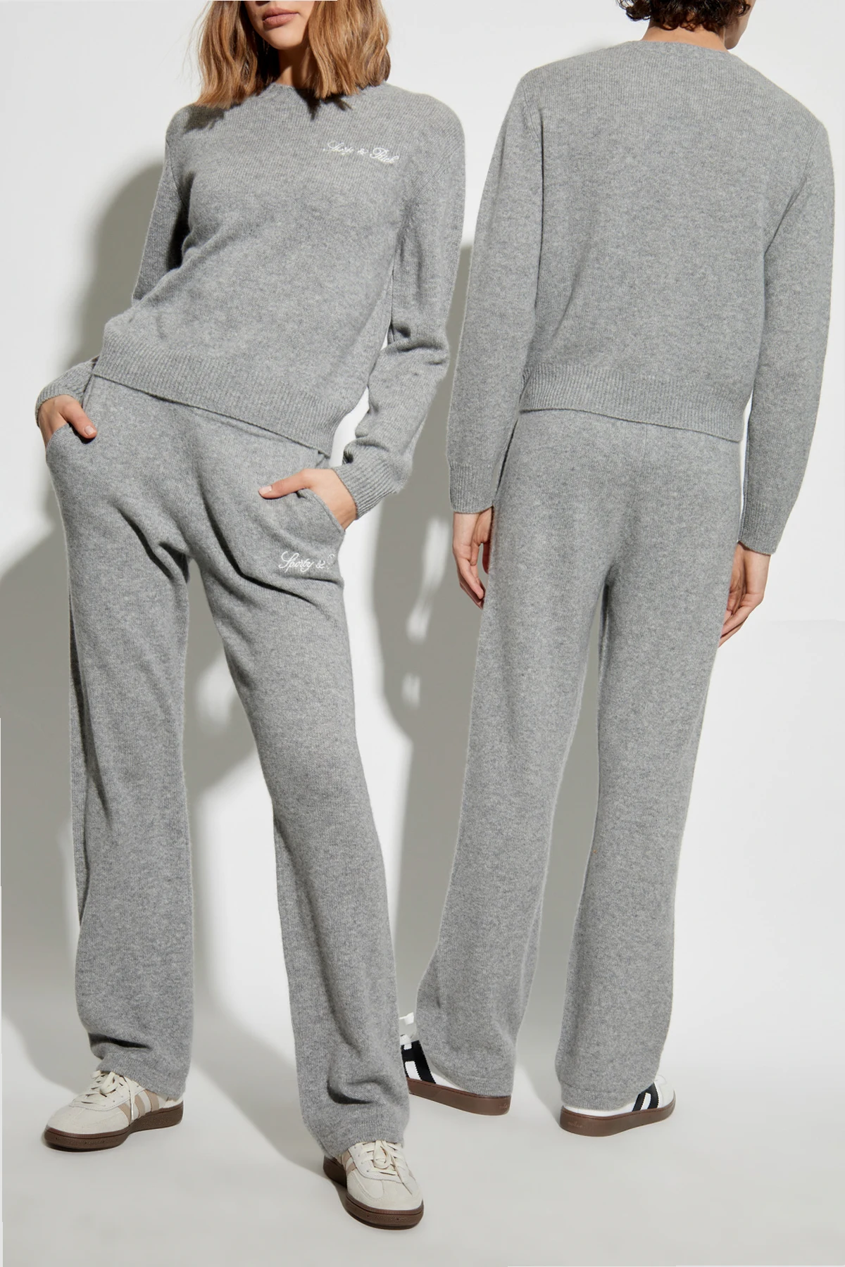 Introducing the exquisite Paris Drop Sweatpants from the renowned Sporty & Rich collection. These gray sweatpants embody a harmonious blend of simplicity and elegance, with a relaxed fit that ensures unparalleled comfort. Crafted from a luxurious blend of cashmere and wool, the material is both soft and inviting to the touch. Adorned with a subtle white logo at the hip, these pants exude an understated sophistication. The elastic waistband enhances comfort, making them a versatile choice for any wardrobe. Designed as a unisex piece, they effortlessly cater to both women and men, perfect for a casual yet chic everyday look. Sporty & Rich, a brand born from a lifestyle moodboard, has evolved under the visionary guidance of Emily Oberg. Known for merging vintage sports fashion with discreet luxury, their pieces are timeless and stylish, suitable for both city and court life. Why Choose This Product? Luxurious blend of cashmere and wool for supreme comfort. Timeless design with a relaxed fit. Subtle branding for added elegance. Unisex design, perfect for any wardrobe. Two convenient slip pockets.