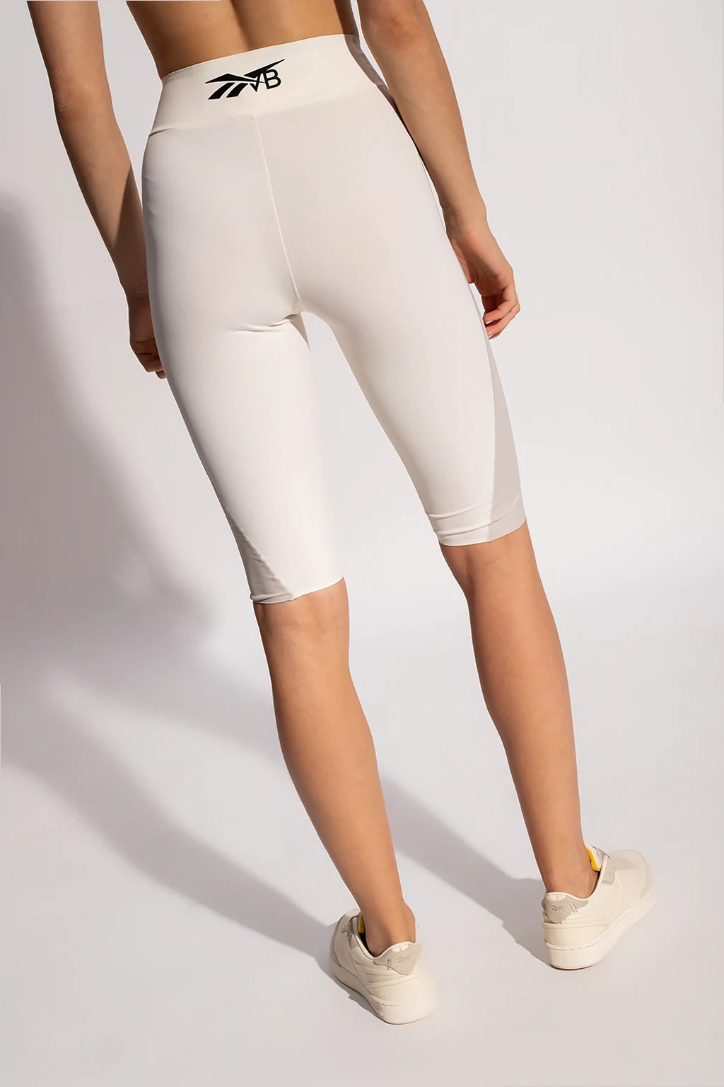 Short, cream and light grey leggings from Reebok x Victoria Beckham. Decorated with a black logo print at the back, this pair is complete with an elastic waistband.