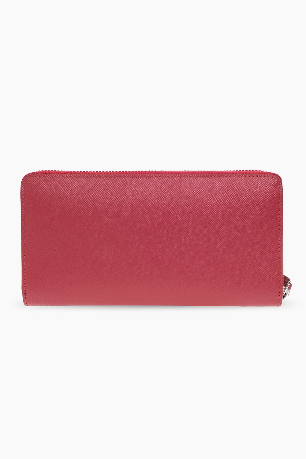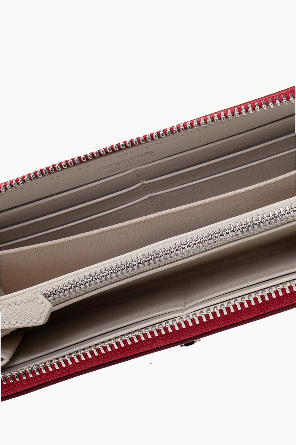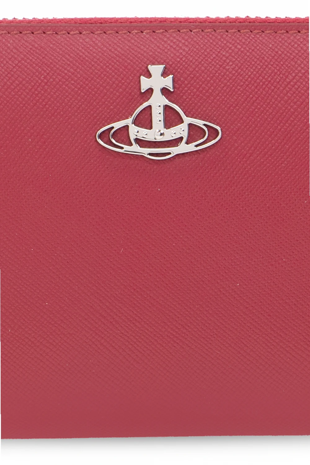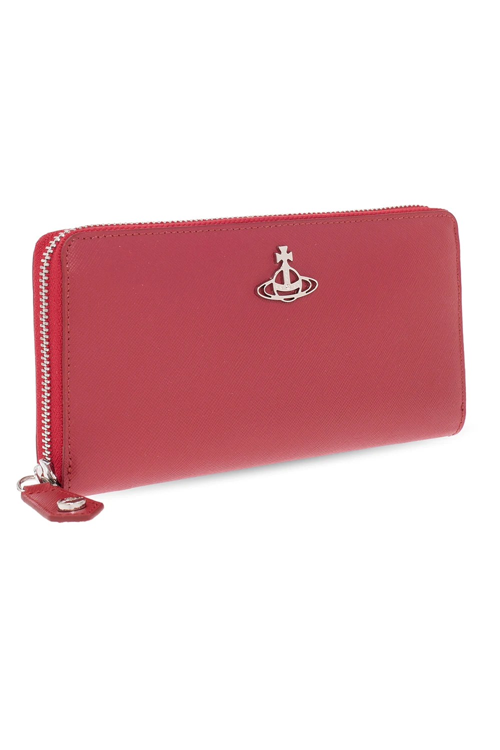 Red ‘Debbie’ wallet from Vivienne Westwood. Crafted from calf leather, this design features a zip-around fastening, silver-tone metal hardware, including a logo plaque on the front, and an interior with three bill compartments, one zip pocket and twelve card slots inside.