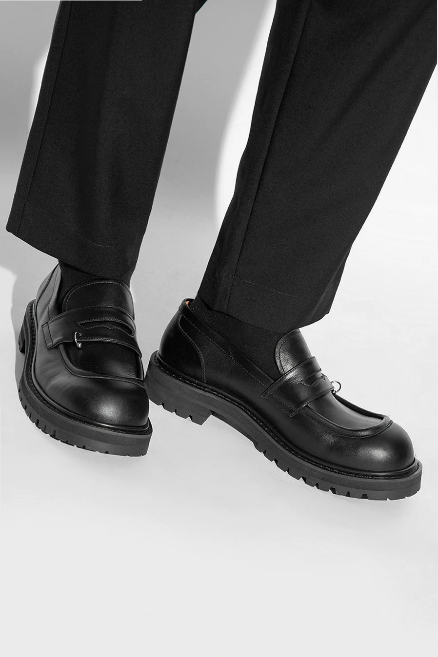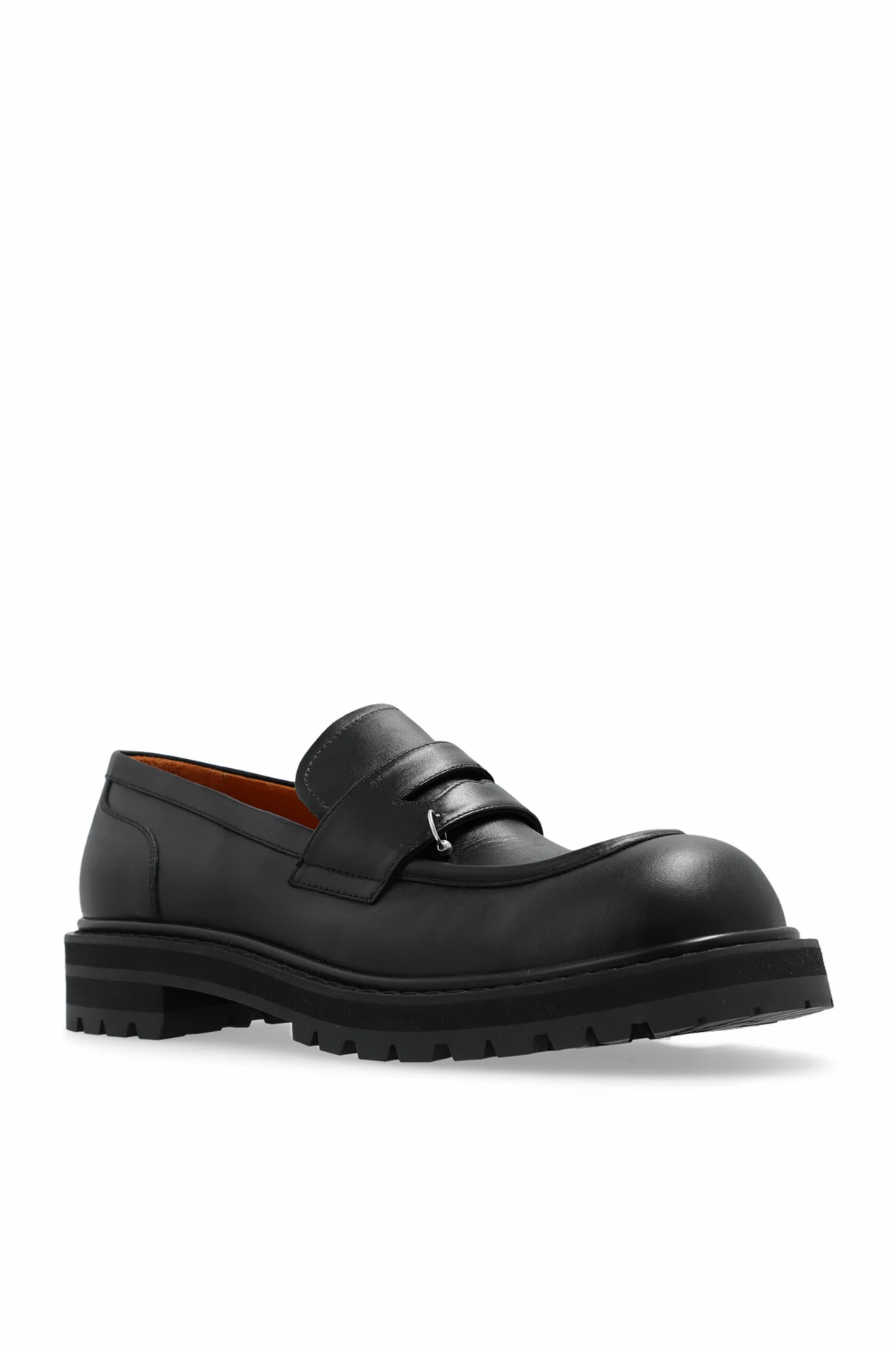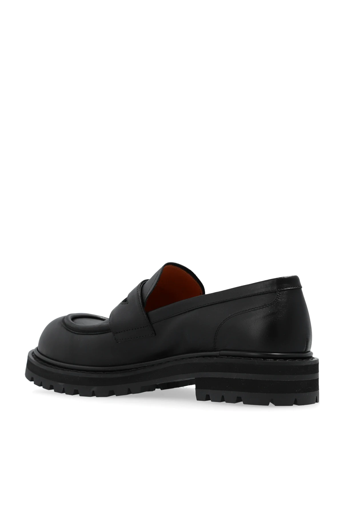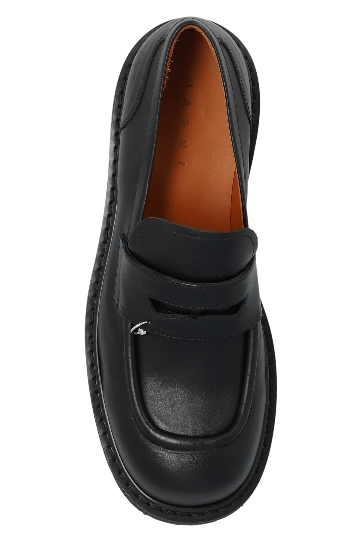Black loafers from Marni. Made of leather, this pair features a silver-tone metal earring detail and a black rubber sole.