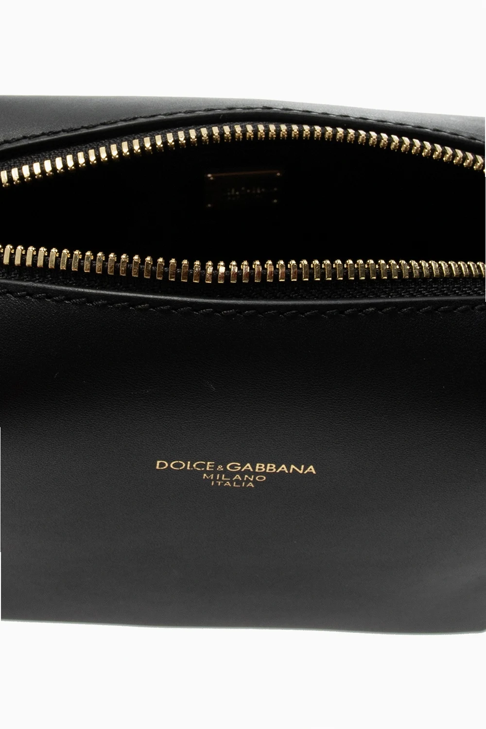 Black adjustable belt from Dolce & Gabbana. This item features two pouches made of calf leather with two-way zip fastening, a gold-tone logo print and one internal compartment each.