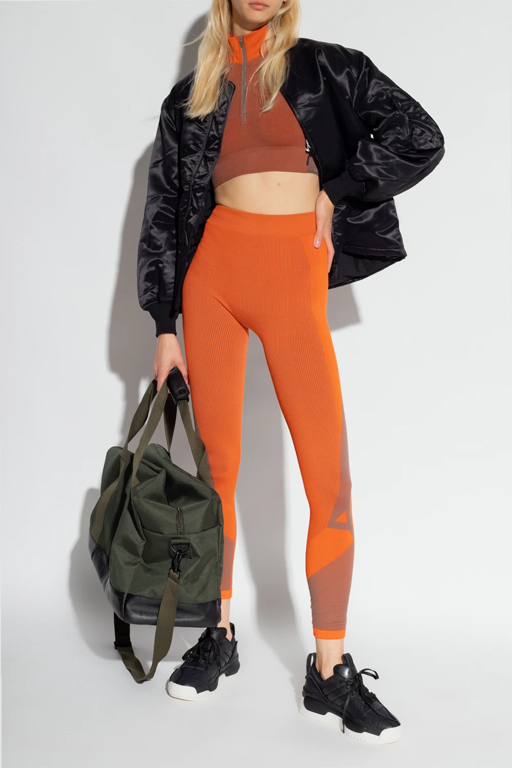 Orange and grey training tank top from Y-3 Yohji Yamamoto. Embellished with the brand\'s logo, this style features a cropped fit and a standing collar with a quarter-zip closure.