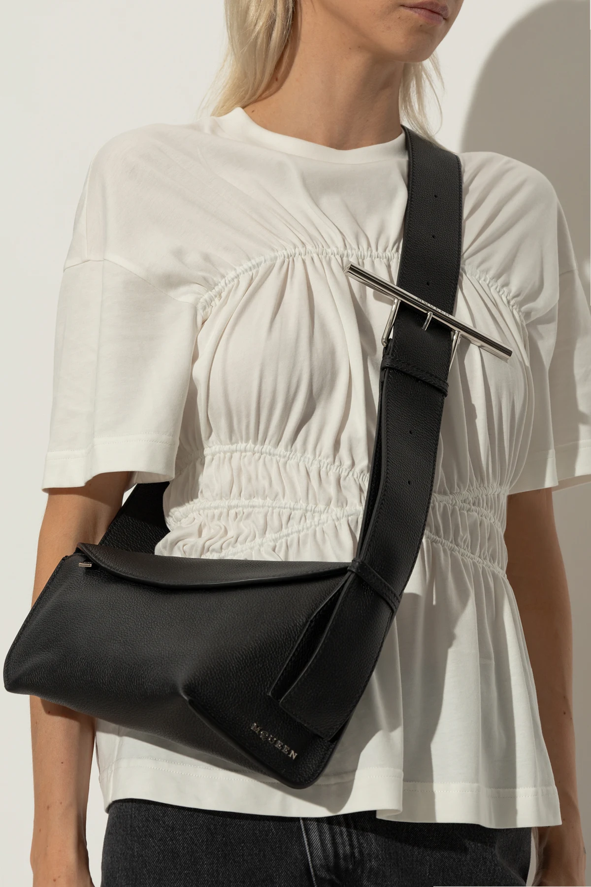 Introducing the Alexander McQueen Black Belt Bag, a paragon of elegance from our exclusive collection. This sophisticated accessory, crafted from premium calfskin leather, epitomizes modern luxury while honoring the rich heritage of British tailoring. The bag boasts a sleek rectangular shape with subtly rounded edges, exuding a timeless allure. Its smooth, unadorned surface highlights the exquisite texture of high-quality leather, ensuring durability against scratches and wear. The wide, adjustable strap guarantees both comfort and a perfect fit for any occasion. A distinctive feature of this bag is its polished metal bar inscribed with the designer\'s name, \"MOUFEN\", which serves as a magnetic clasp, adding a touch of contemporary elegance. Inside, the spacious compartment is lined with a black fabric and includes a zippered pocket for small essentials. This bag, with its understated luxury and practical design, is adorned with the unmistakable Alexander McQueen logo, symbolizing authenticity and prestige. The polished metal accents further enhance its luxurious appearance, making it a versatile yet stylish addition to your daily ensemble. Why Choose This Product? Exquisite craftsmanship with high-quality calfskin leather. Adjustable strap for personalized comfort. Elegant magnetic closure with designer branding. Spacious interior with a secure zippered pocket. Timeless design suitable for any occasion.