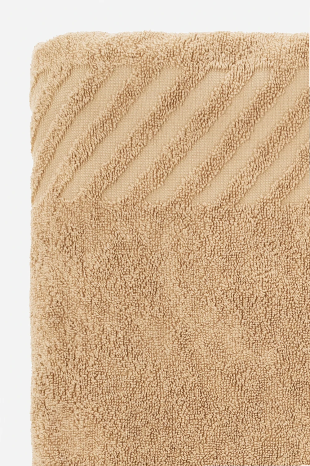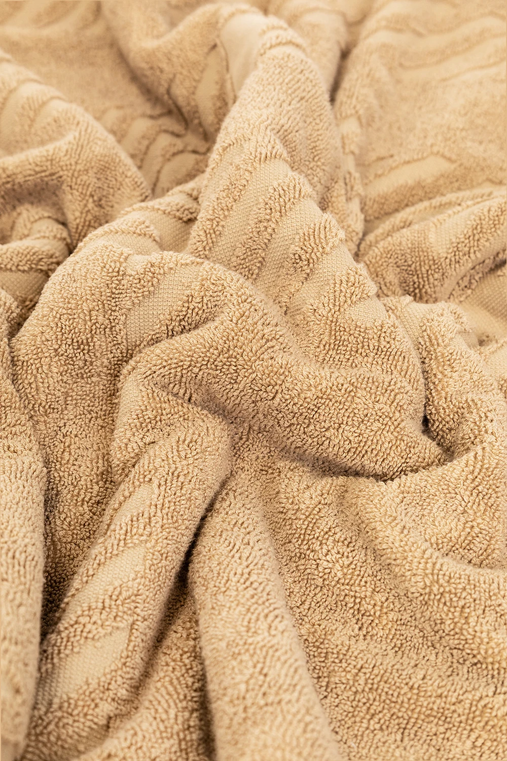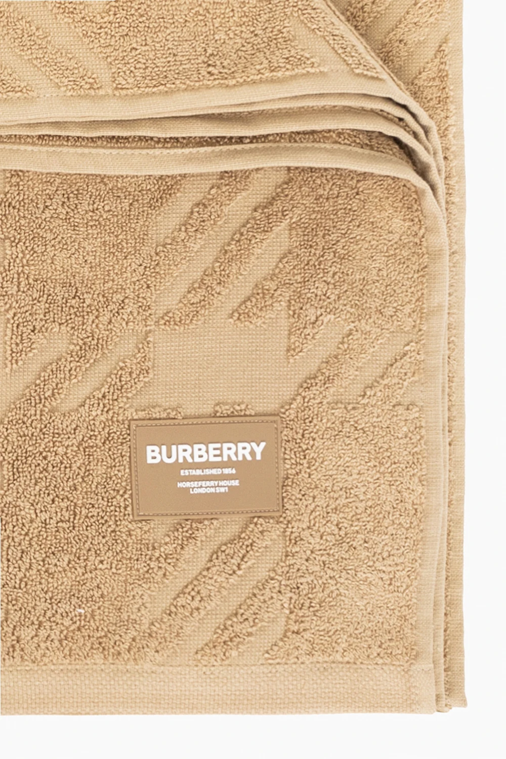 Beige towel from Burberry. Made of terry cotton, this item showcases a beige and white logo patch and check pattern.