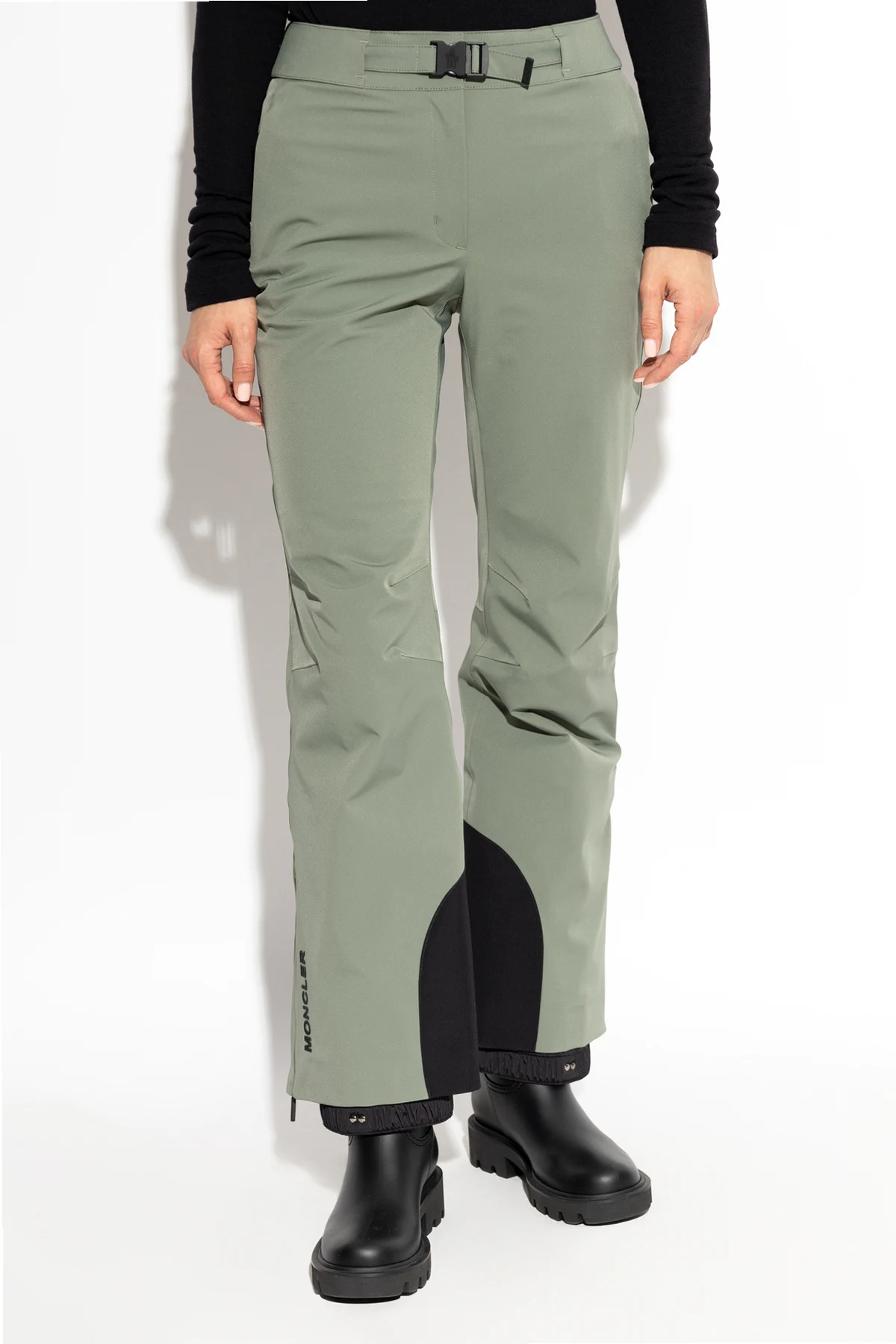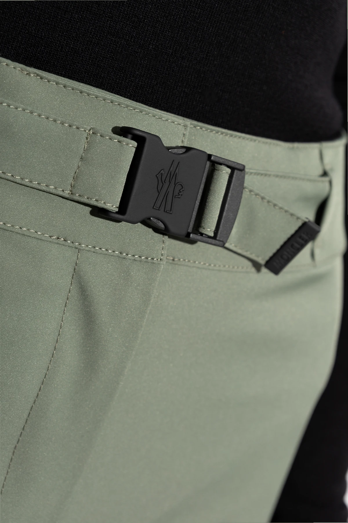 Introducing the MONCLER GRENOBLE HIGH PERFORMANCE ski pants, a quintessential piece from the exclusive Moncler Grenoble collection, crafted for those who seek both style and functionality on the slopes. Imbued with an elegant khaki hue, these pants are meticulously designed with a technical fabric blend, ensuring resilience against the elements while maintaining a sleek aesthetic. The classic ski silhouette features wide legs designed to effortlessly drape over ski boots, offering unrestrained movement. A sophisticated adjustable buckle at the waist, adorned with the subtle Moncler logo, accentuates the tailored fit, while black reinforcements at the cuffs provide added protection against snow and abrasion. Accentuated by the Moncler emblem at the hem, these pants are an ode to the brand’s commitment to high fashion and performance. With a zip, snap, hook, and belt closure, they promise both security and style, making them an indispensable addition to any winter wardrobe. Why Choose This Product? Exquisite design by Moncler Grenoble, a symbol of luxury and innovation. Technical fabric blend offering unmatched protection and comfort. Adjustable waist for a personalized fit. Functional and fashionable, perfect for avid skiers and style enthusiasts.