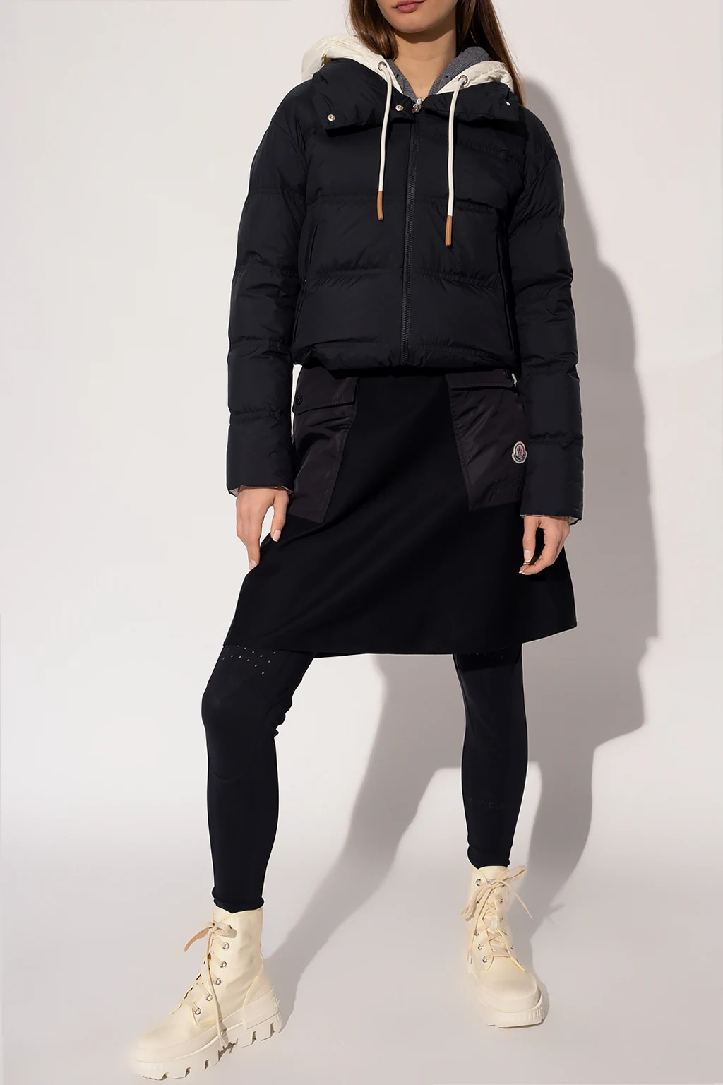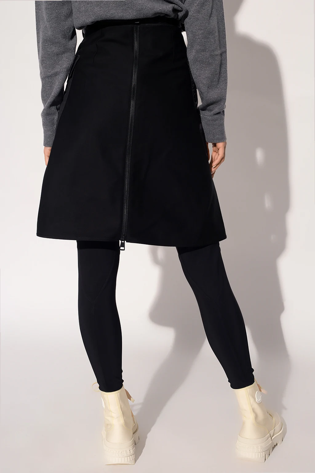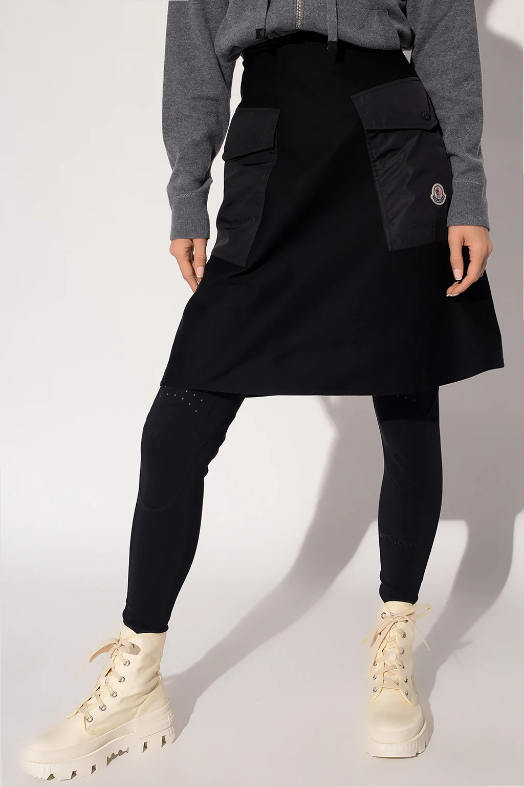 Black training leggings from Moncler. This pair features an elastic waistband with a shiny logo pattern, back pocket with a concealed zip, mesh inserts and perforations.