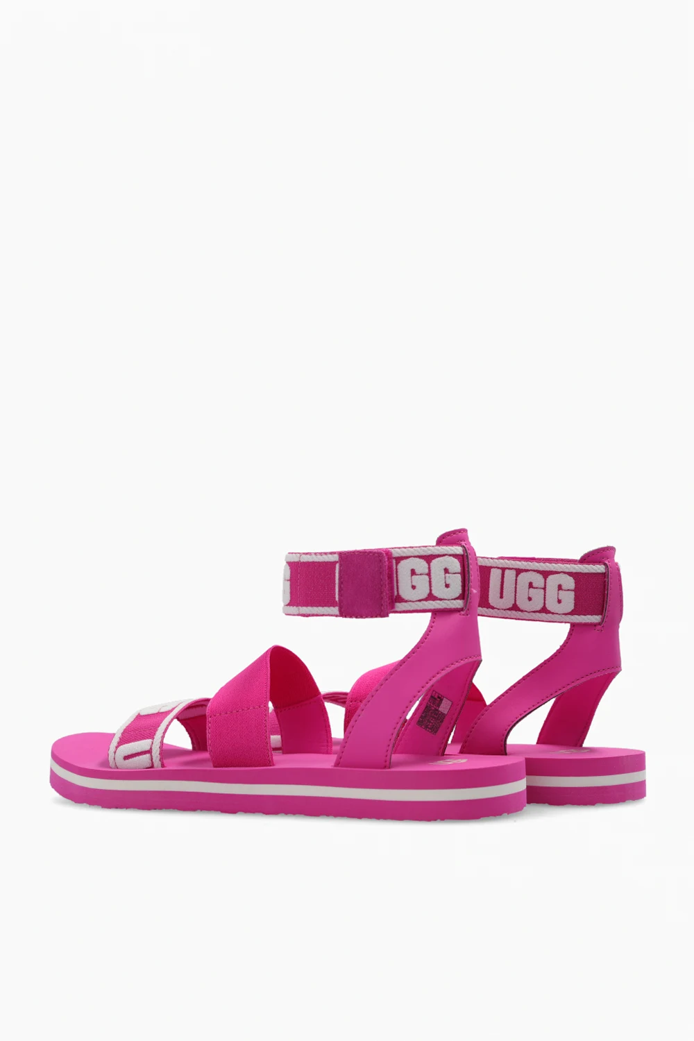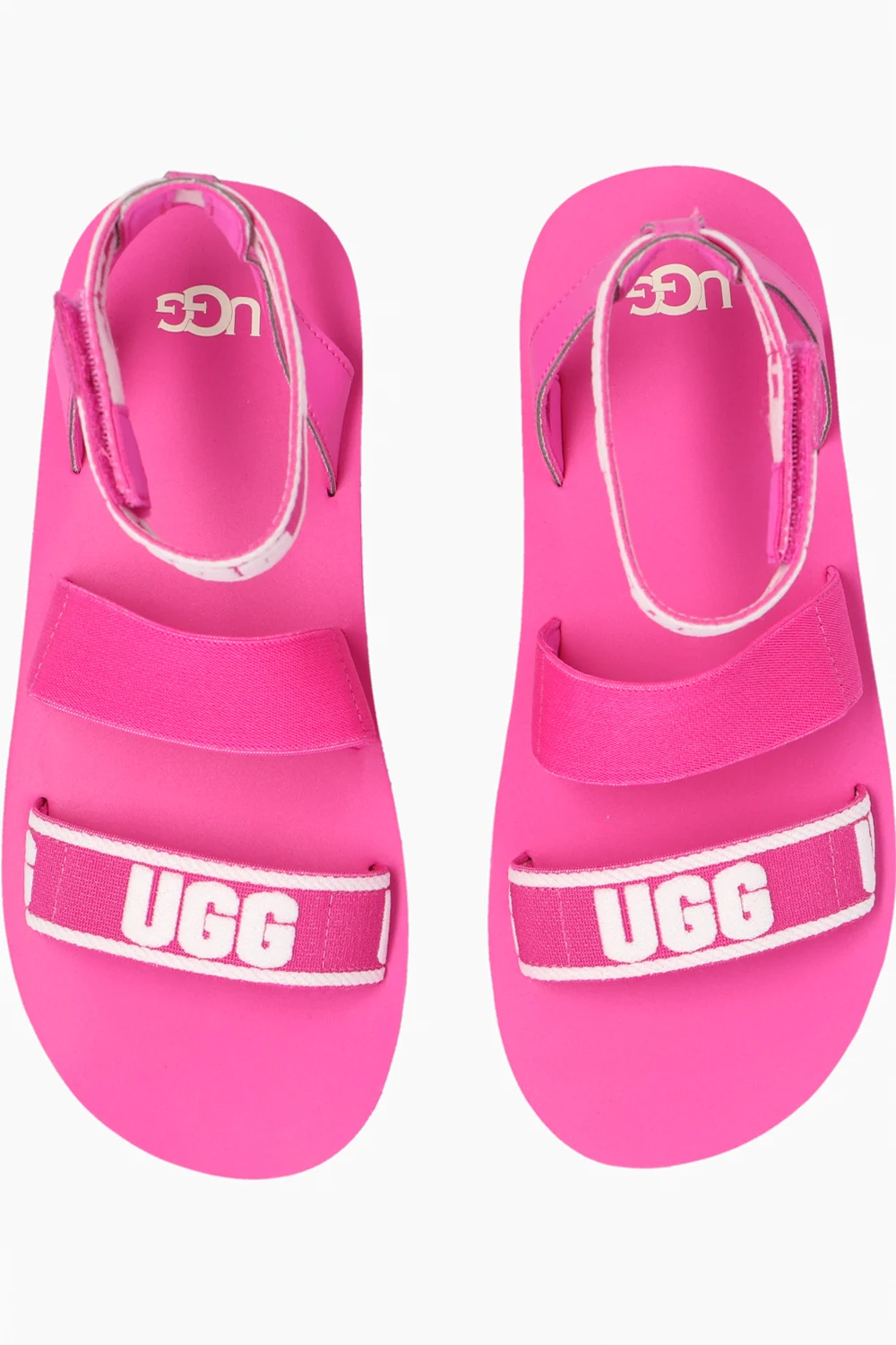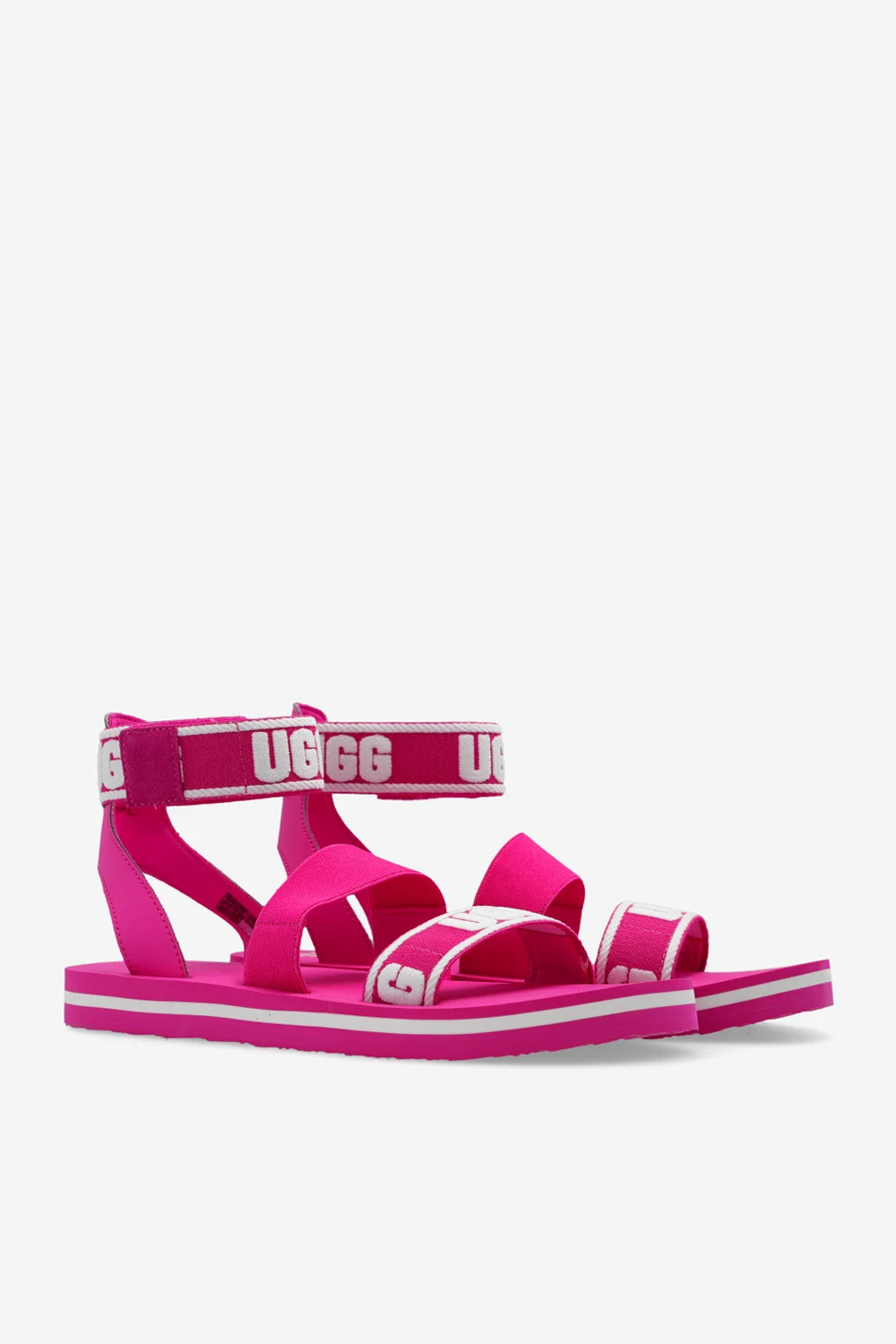 Pink and white ‘Allisa’ sandals from UGG Kids. Made of fabric, this high-waisted pair features velcro fastenings, a logo detail, elastic straps and foam sole in pink and white.