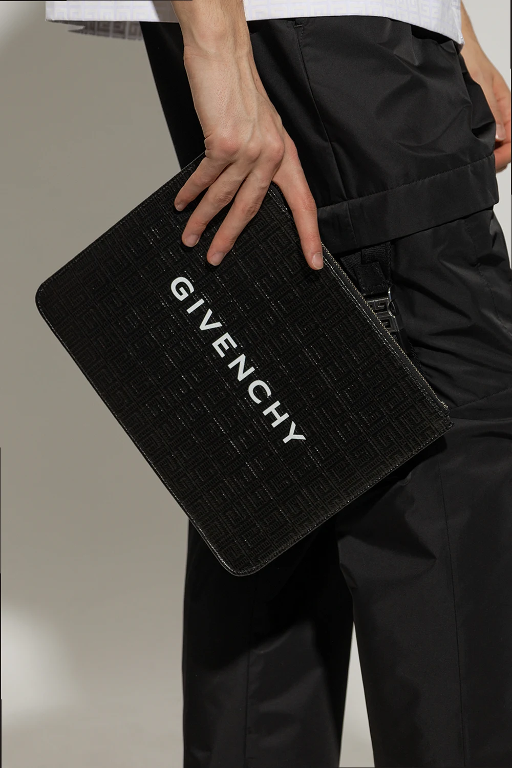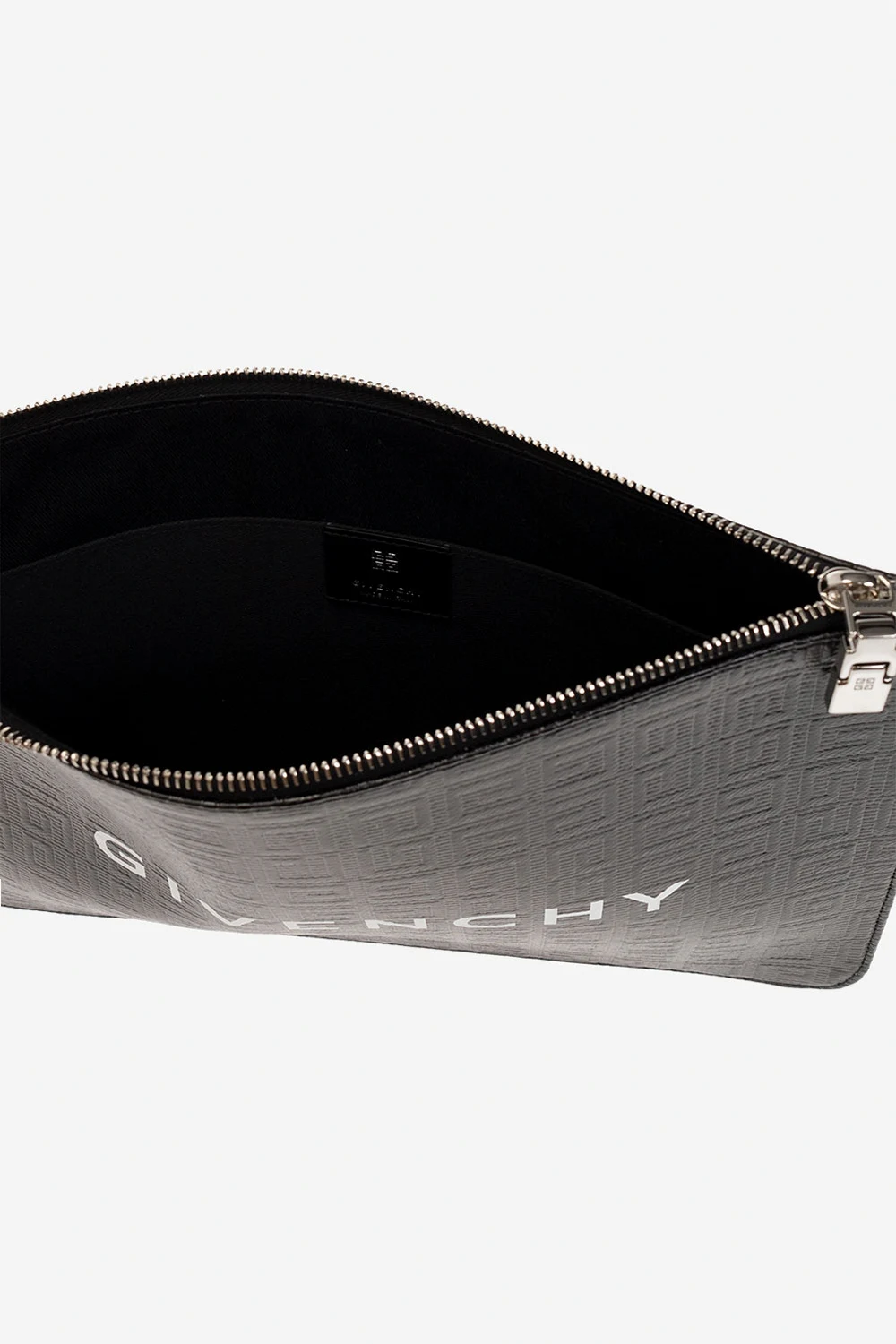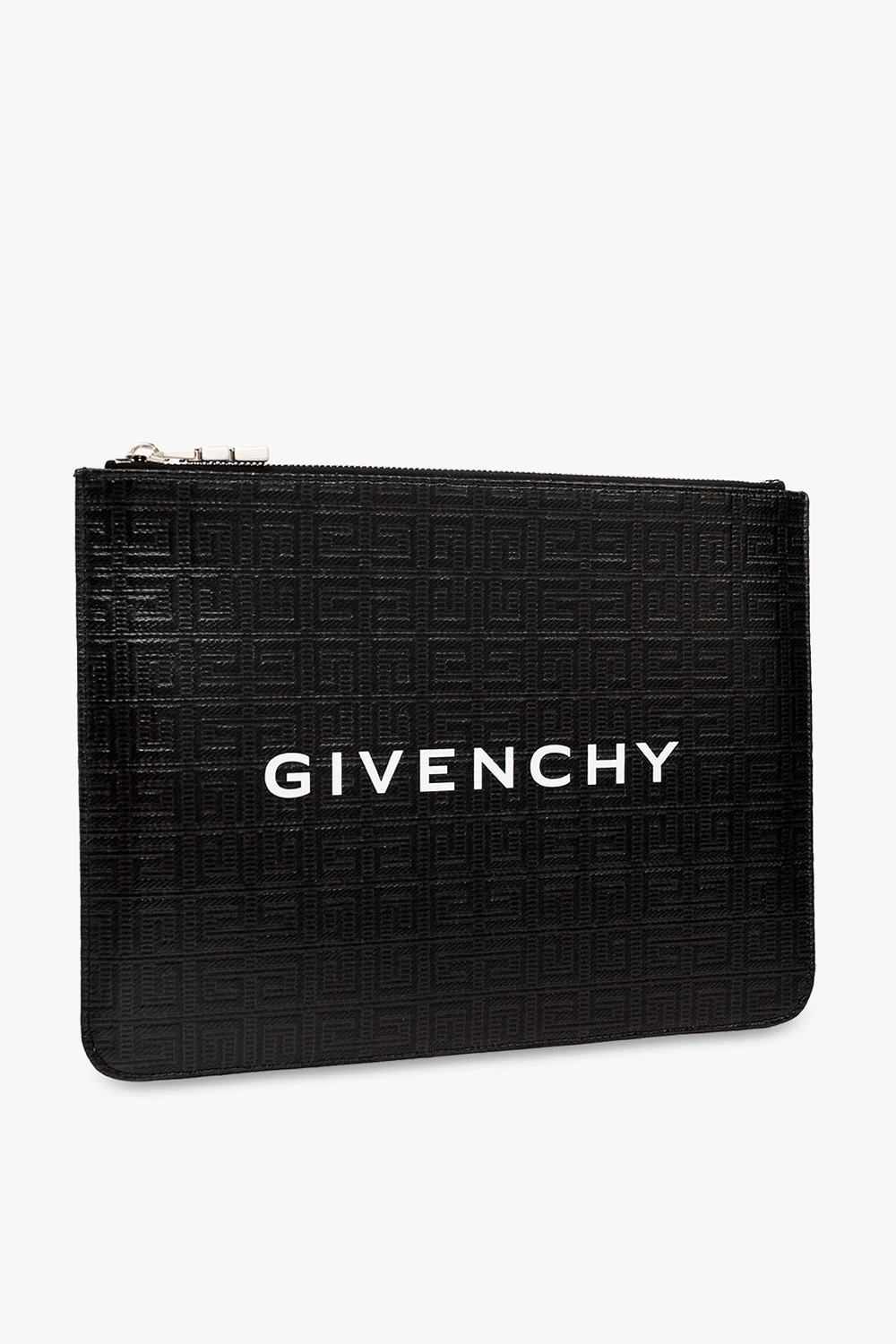 Black handbag from Givenchy. Crafted from monogrammed canvas, this design features a silver-tone zip fastening, a printed white logo on the front and one internal compartment with a slip pocket.