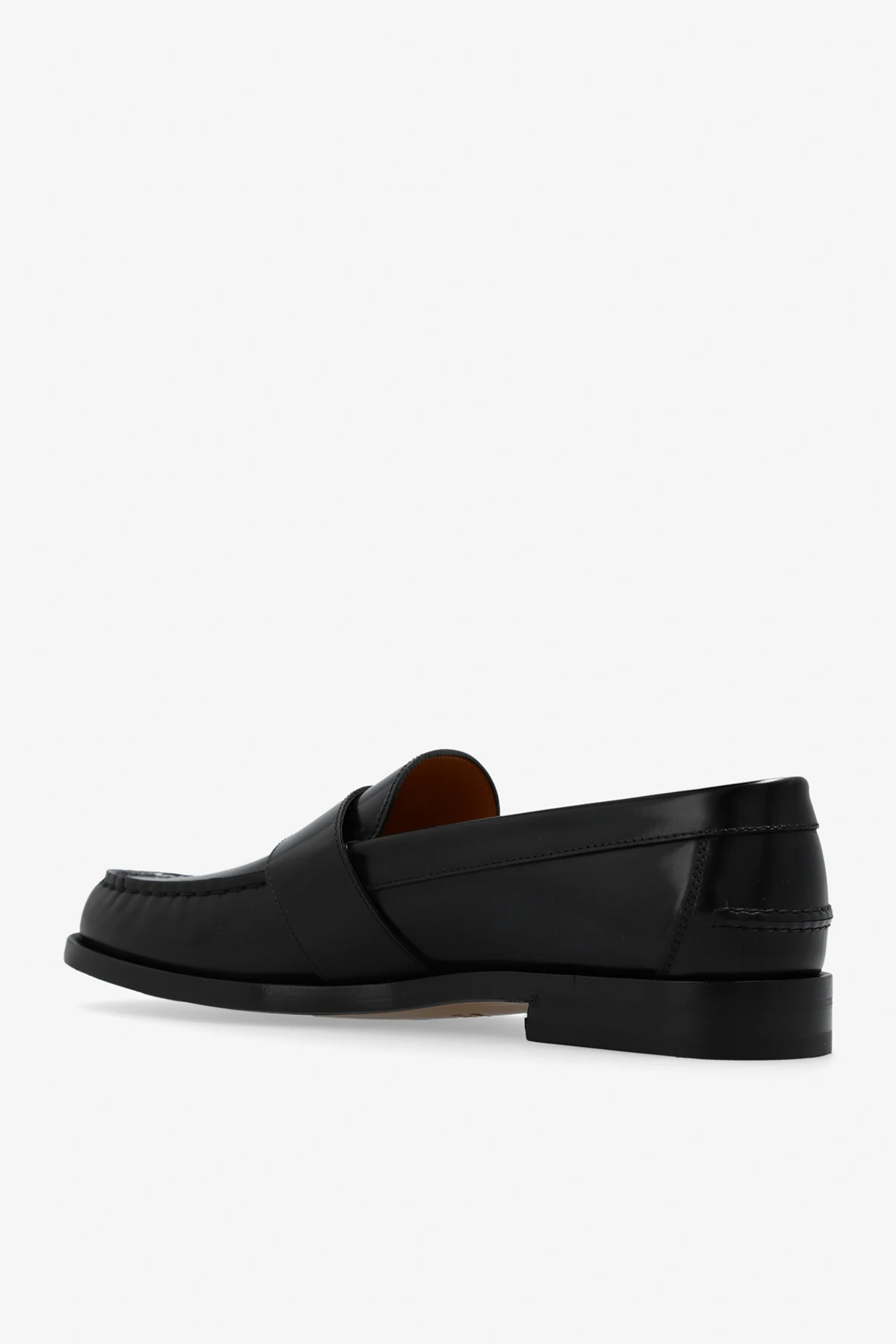 Black shoes from Gucci. Made of leather, this model sits on a brown leather sole and showcases a silver-tone and gold-tone logo application.
