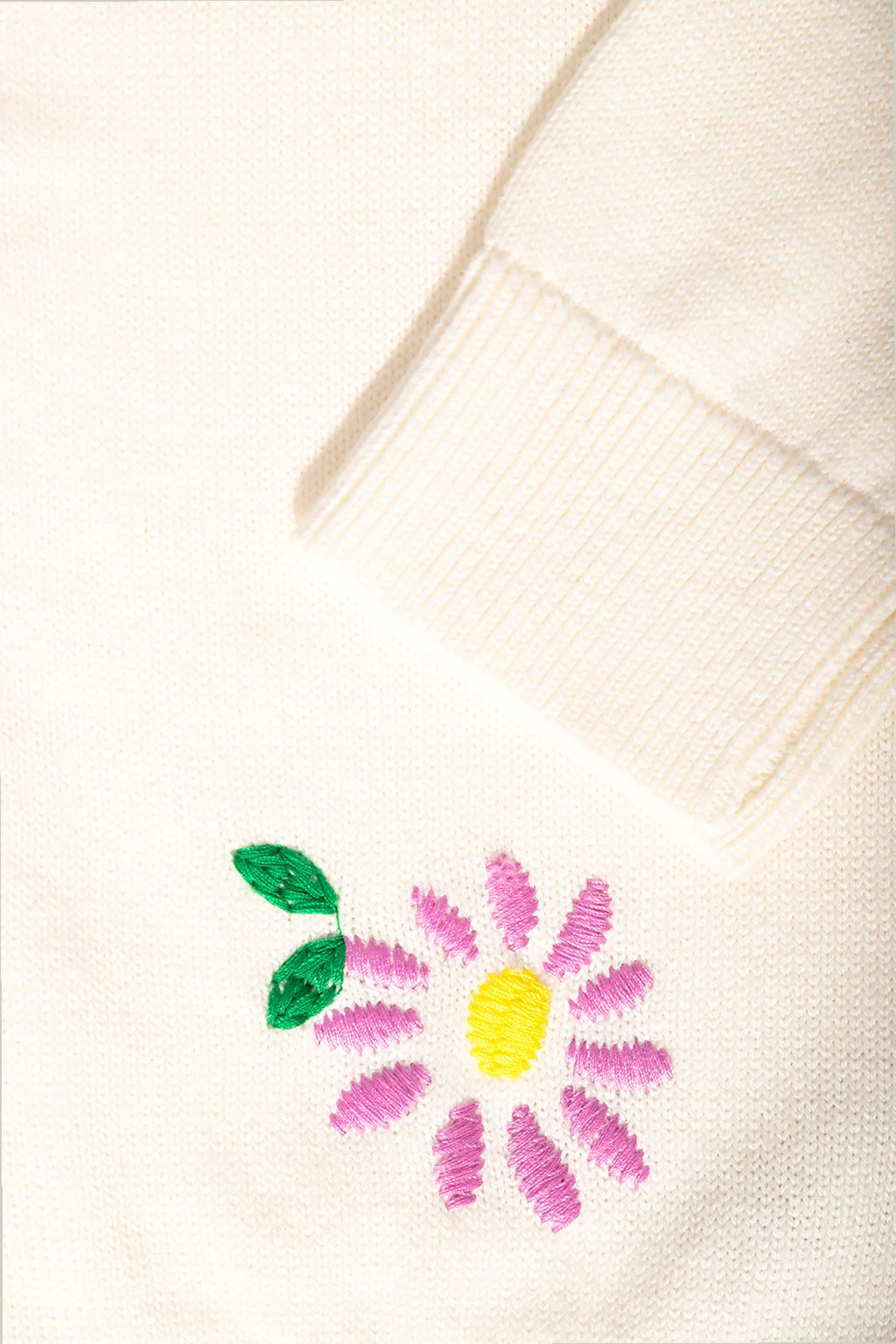 Cream cardigan from Stella McCartney Kids. Made of cotton, this style fastens via buttons and features a V-shaped neckline, long sleeves and colourful graphic embroidery with flowers all over.