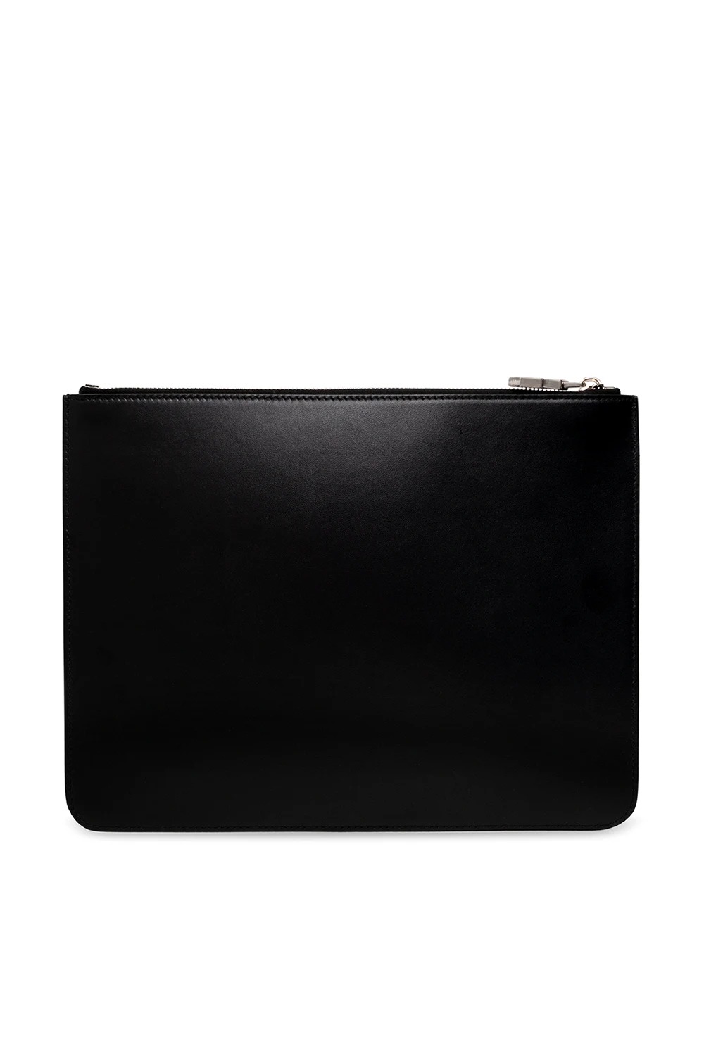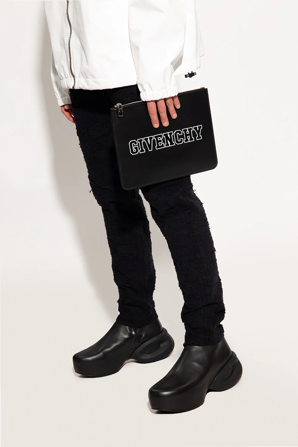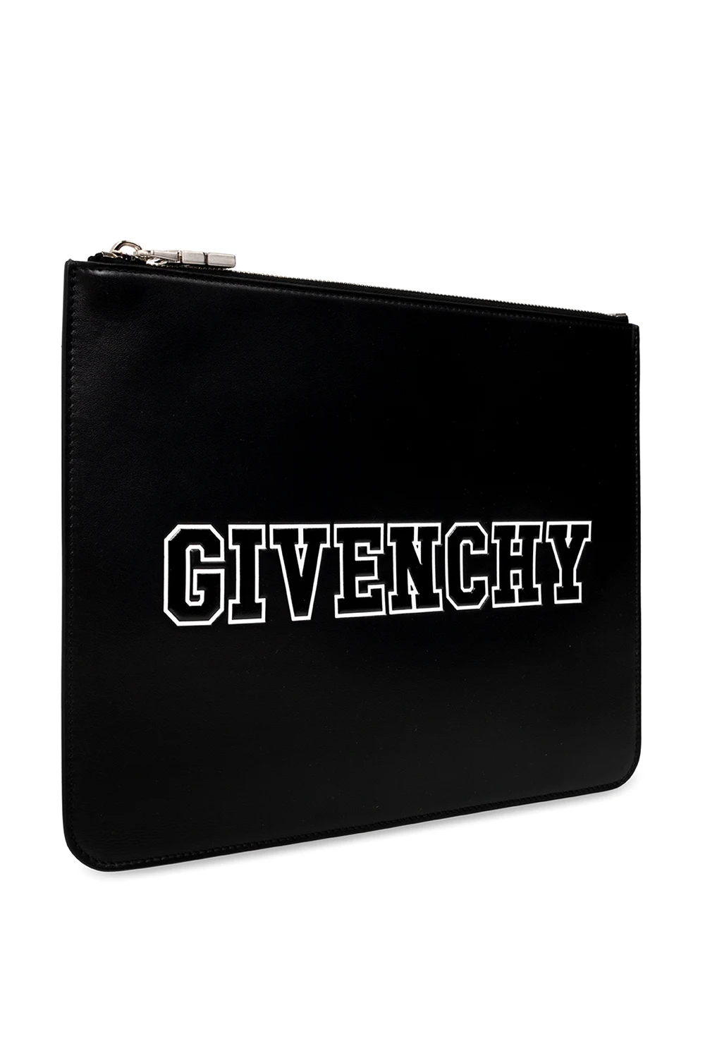 Black pouch from Givenchy. Made of leather, this model features a black and white embossed logo, silver-tone metal hardware and one internal compartment with one slip pocket.