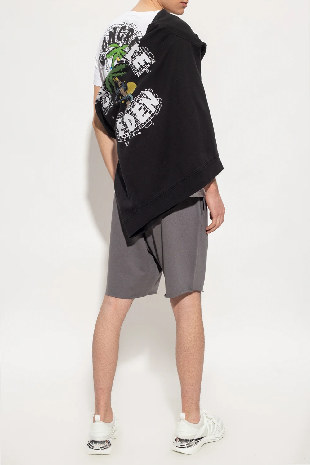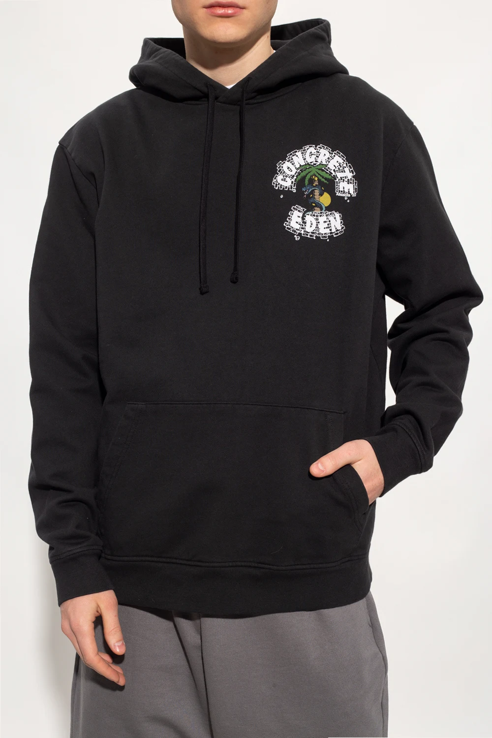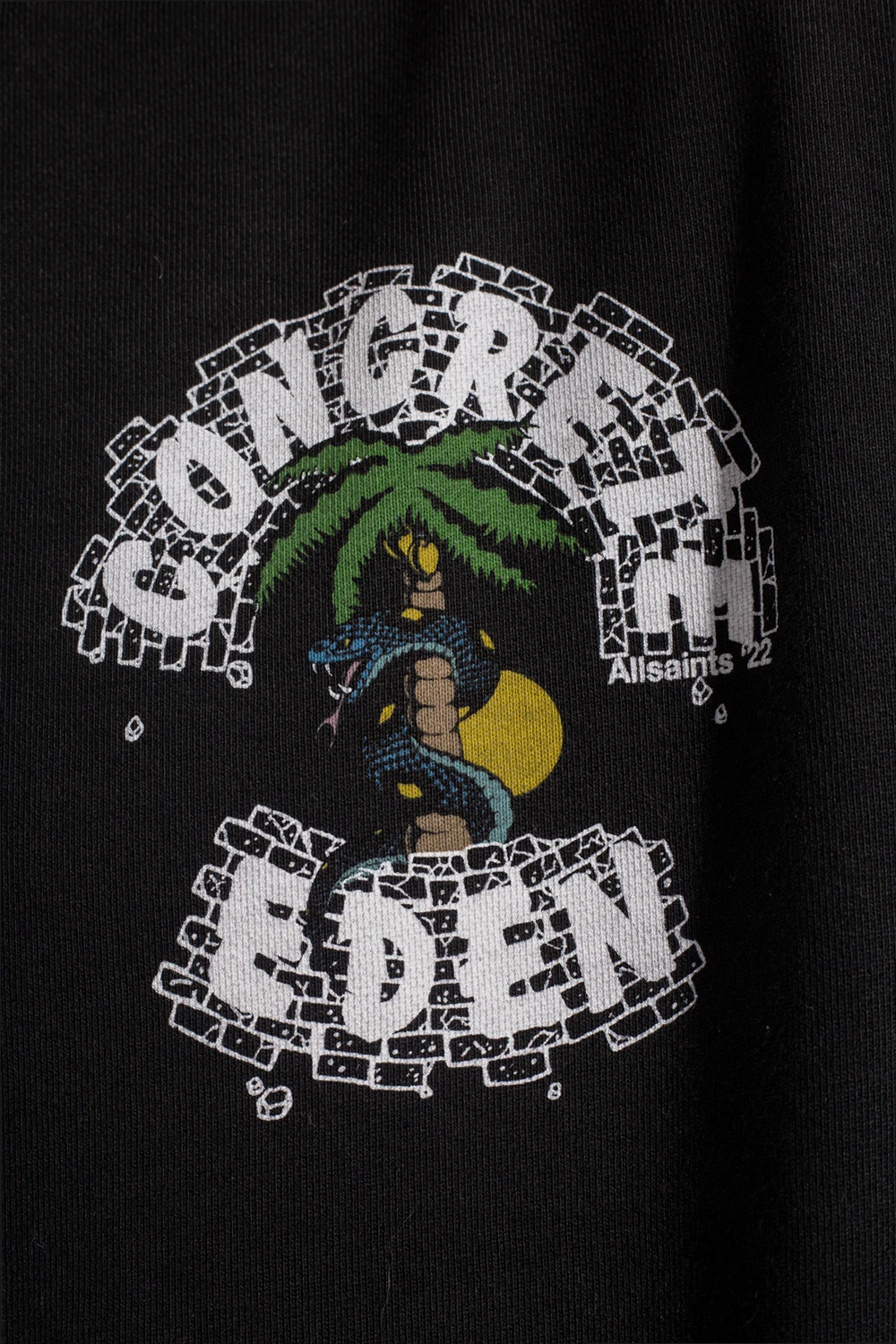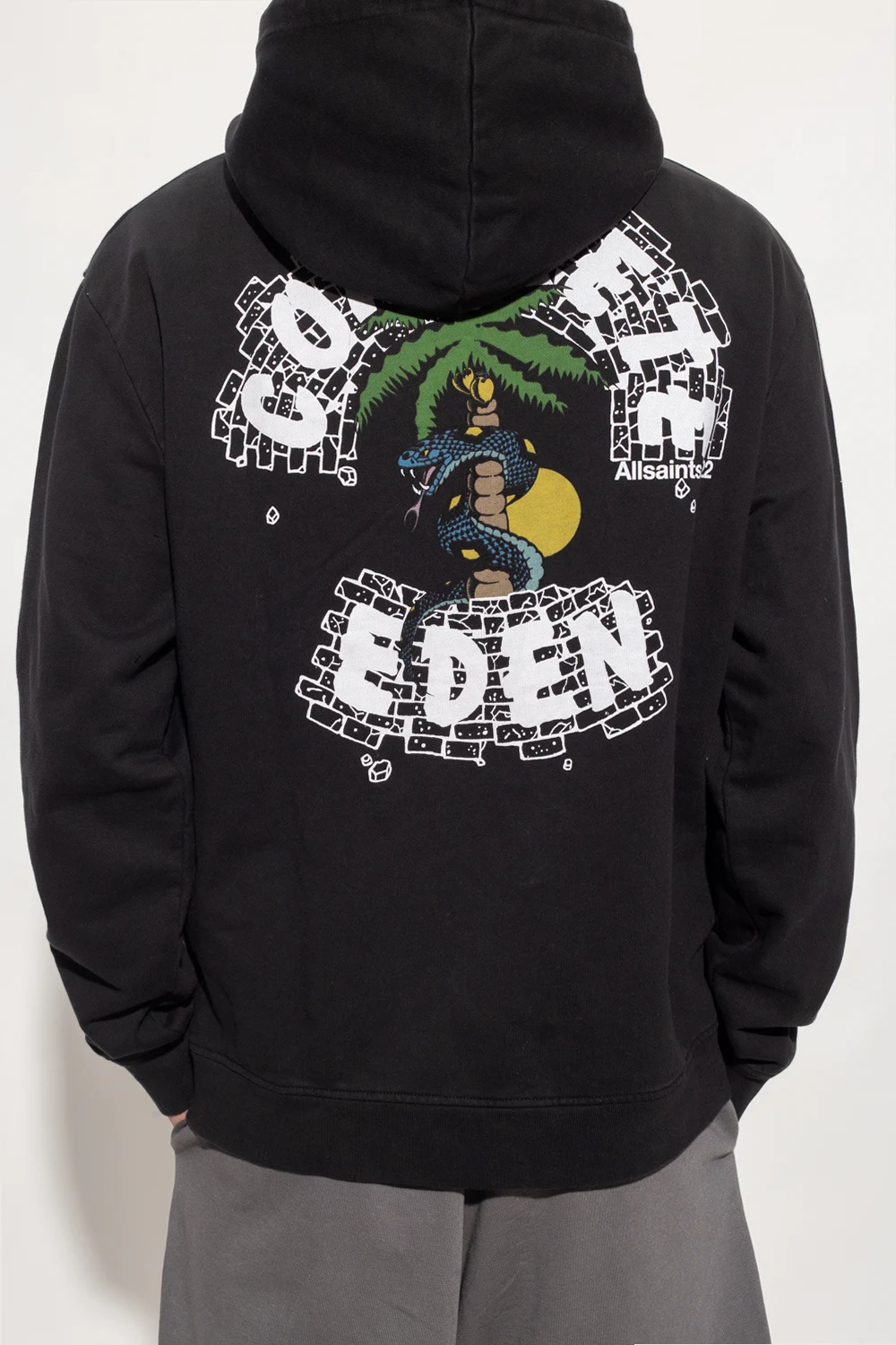 Black ‘Damnation’ hoodie from AllSaints. Crafted from cotton, this garment features a multicolored hand-painted Concrete Eden print, front pocket, drawstring hood and ribbed trims at the hem and cuffs.