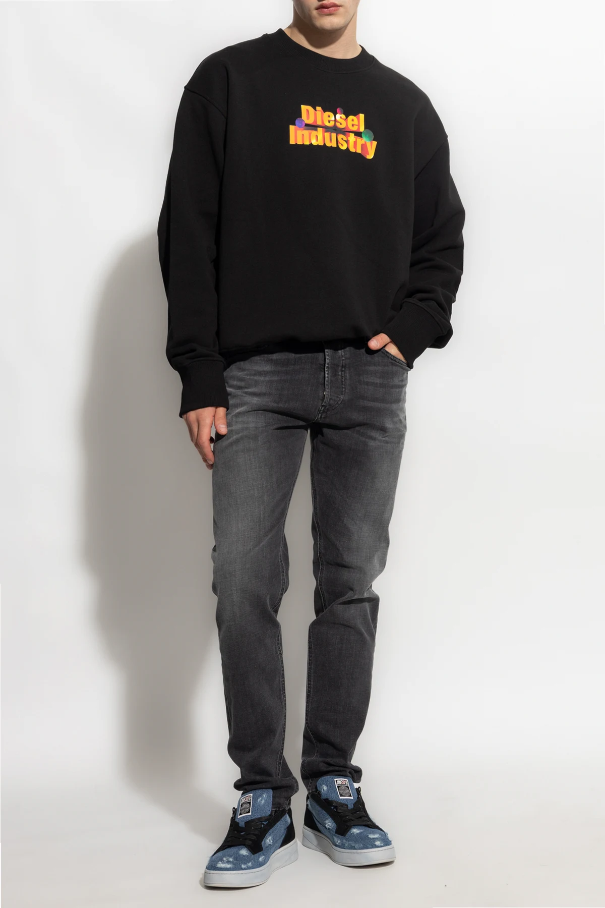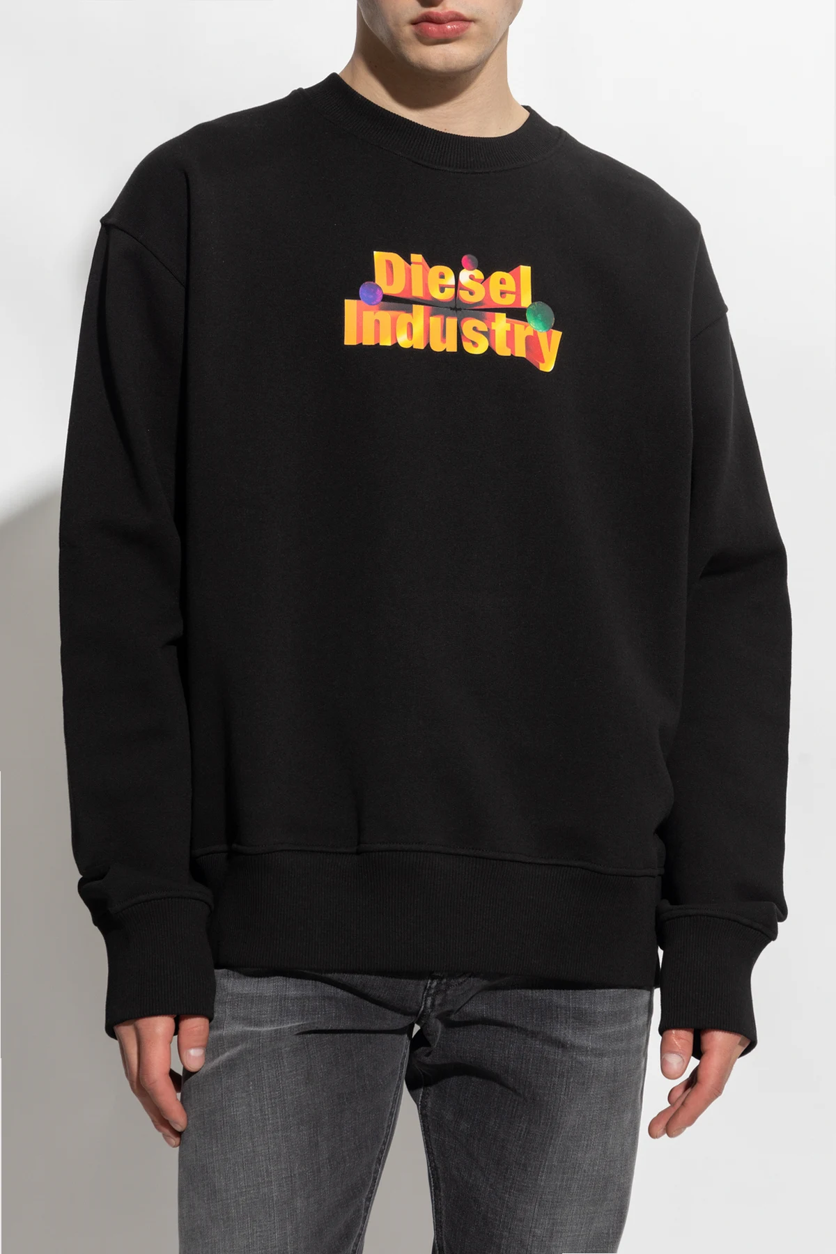 Black ‘S-MACS-L1’ sweatshirt from Diesel. Made of cotton, this garment features a multicolored logo print and ribbed trims at the crew neck, hem and cuffs.