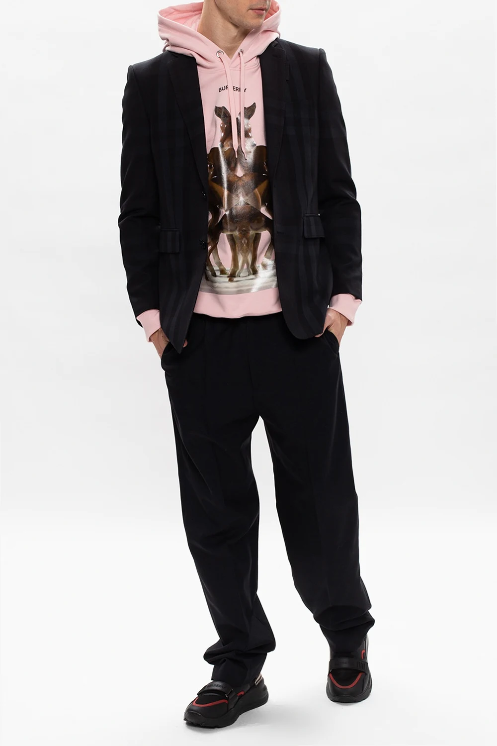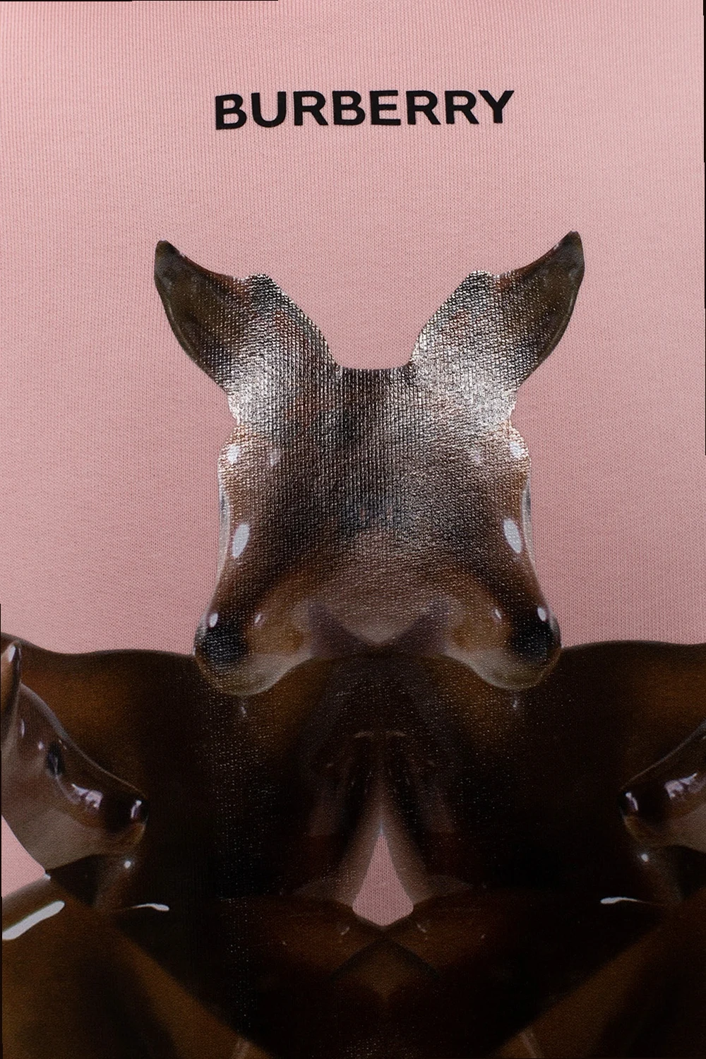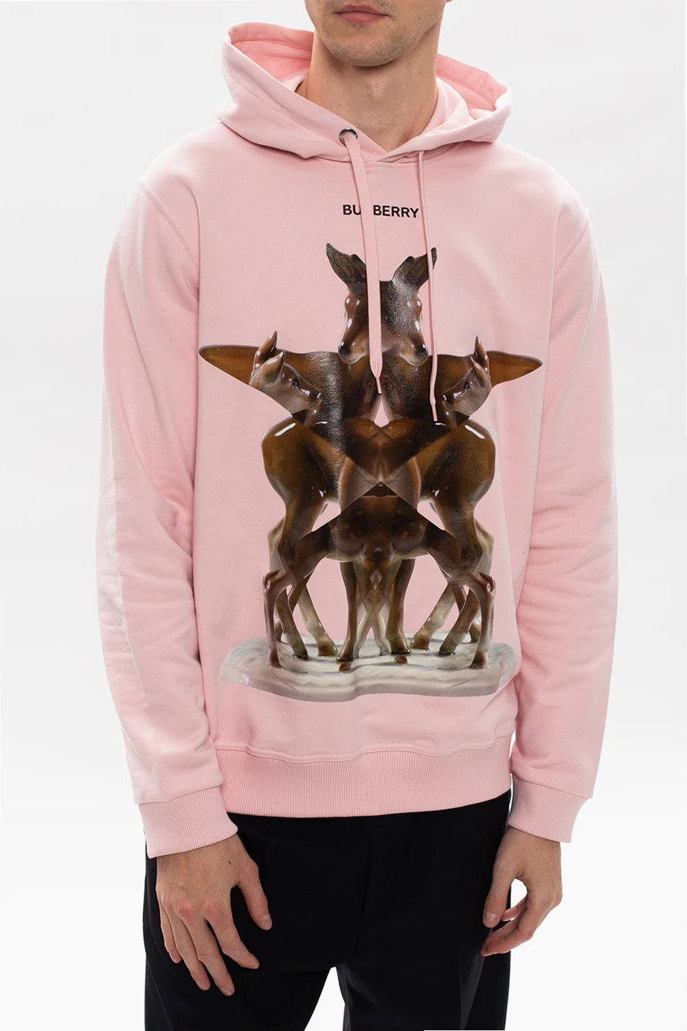 Pink hoodie from Burberry. Made of cotton, this long sleeve design is enriched by an animal print, logo detail and ribbed trims at the hem and cuffs.