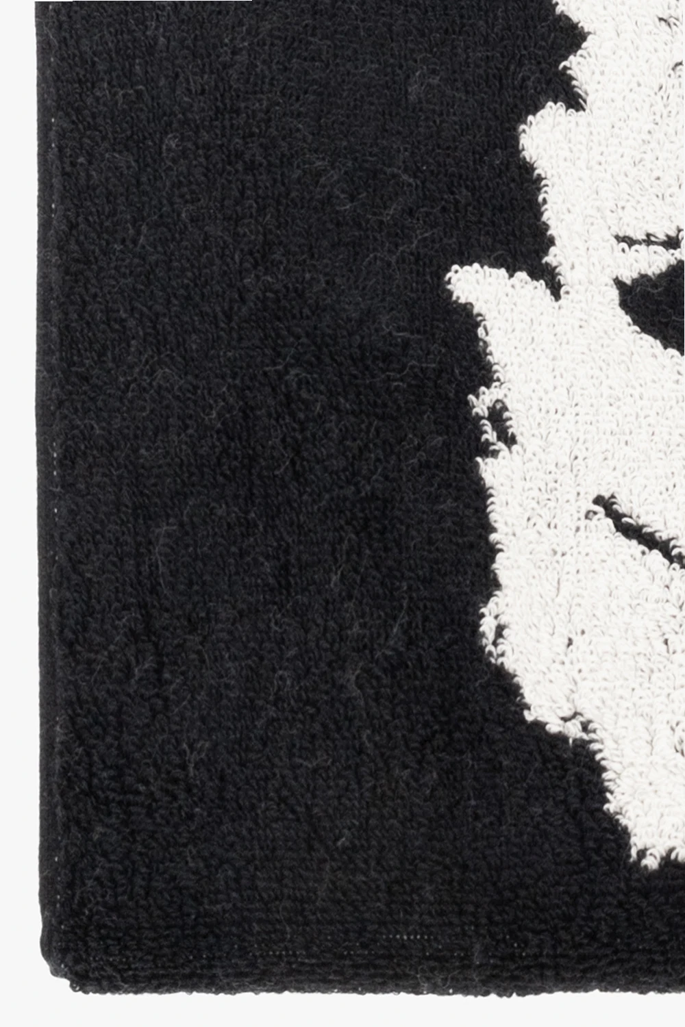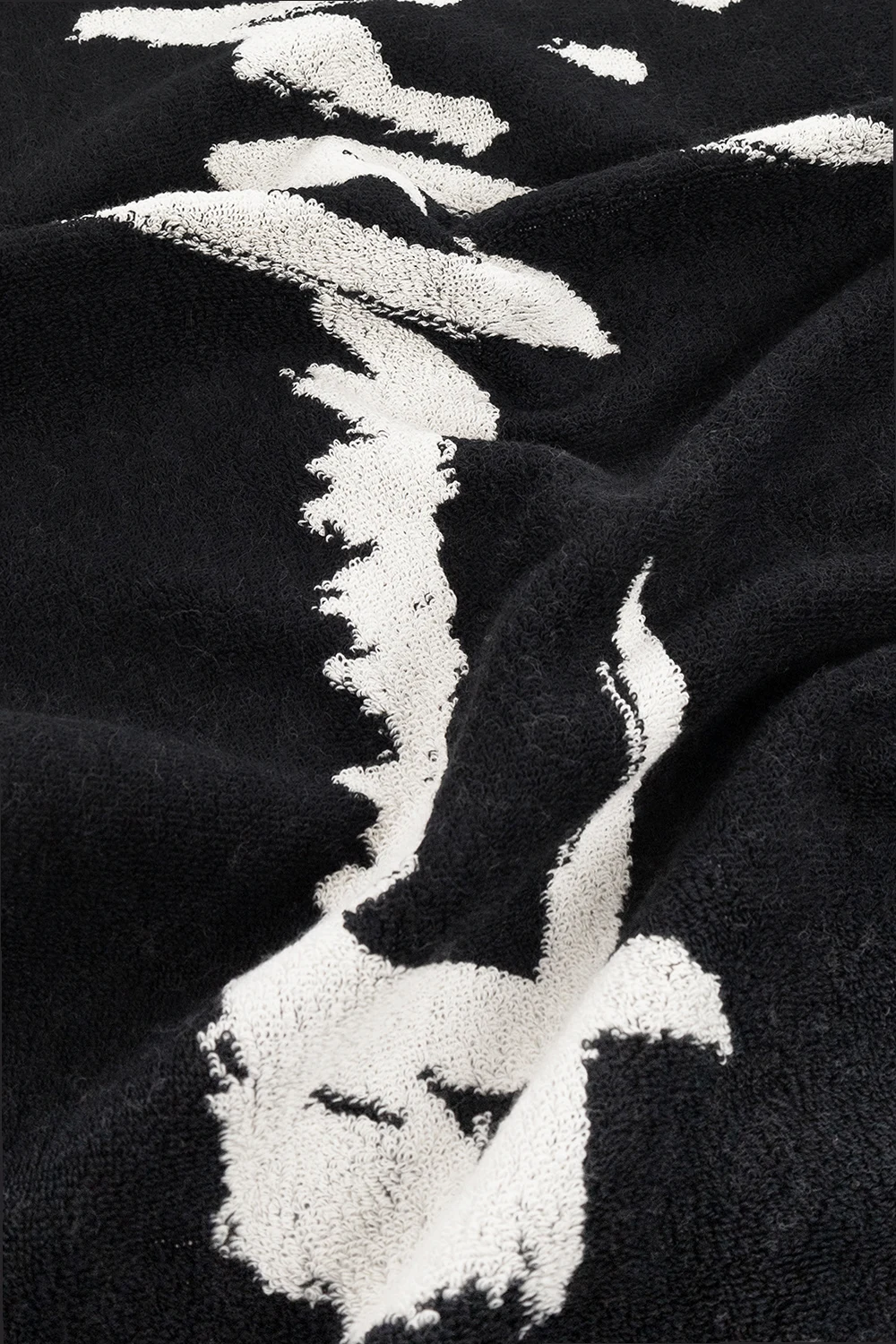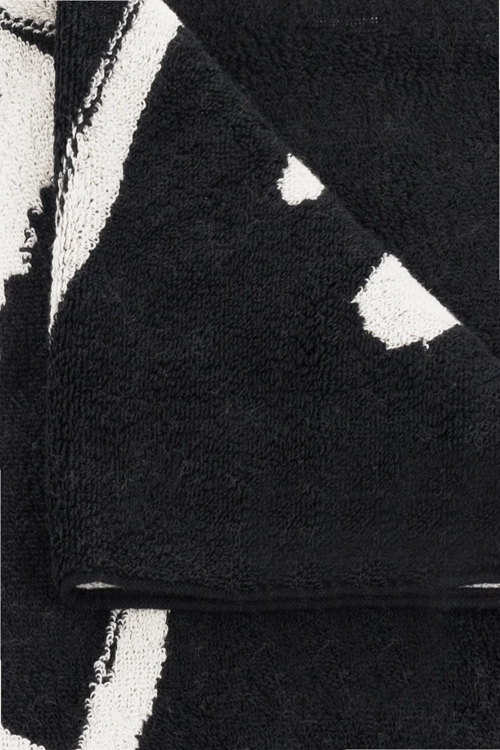 Black towel from Yohji Yamamoto. Crafted from terry cotton, this style showcases an embroidered white logo.