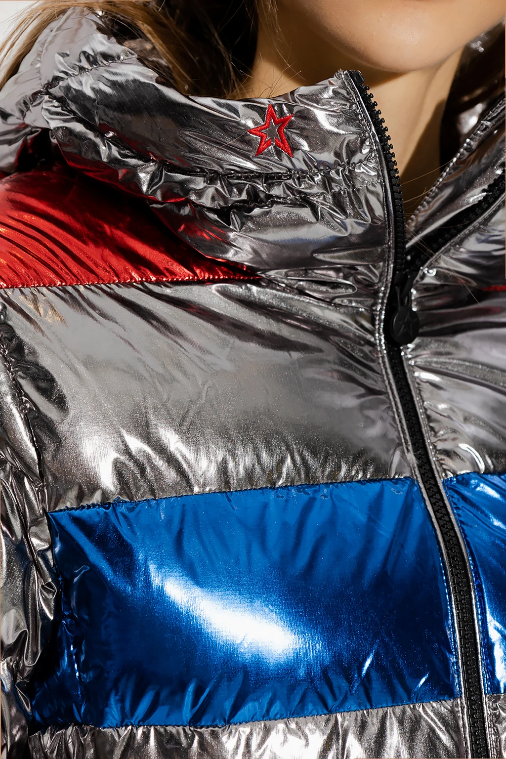 Outer Layer: 100% Nylon Inner Layer: 92% Polyester 8% Spandex Padding: 90% Goose Down 10% Goose Feathers