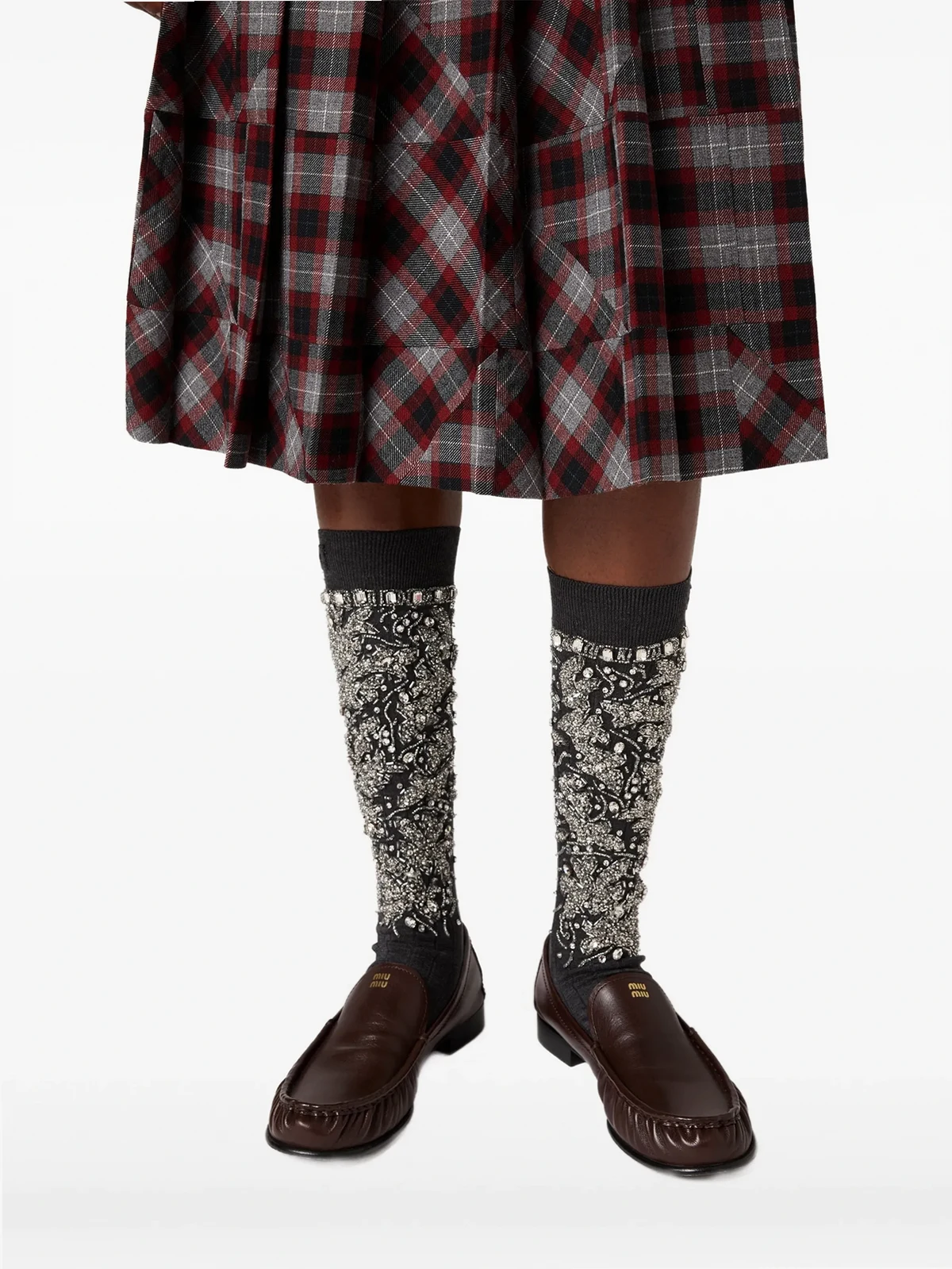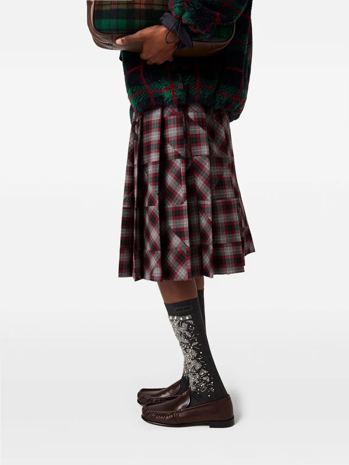 Miu Miu tartan pleated midi skirt