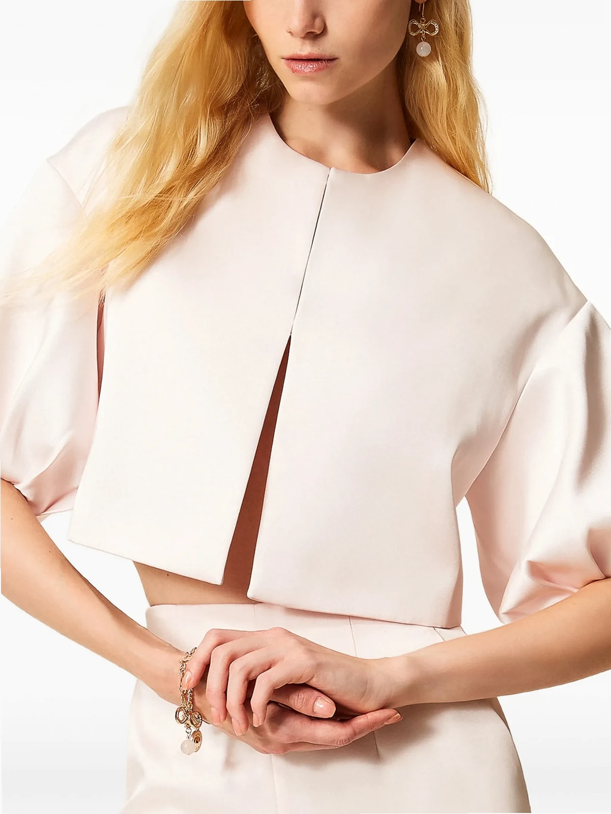 TWINSET duchess-satin puff-sleeve jacket