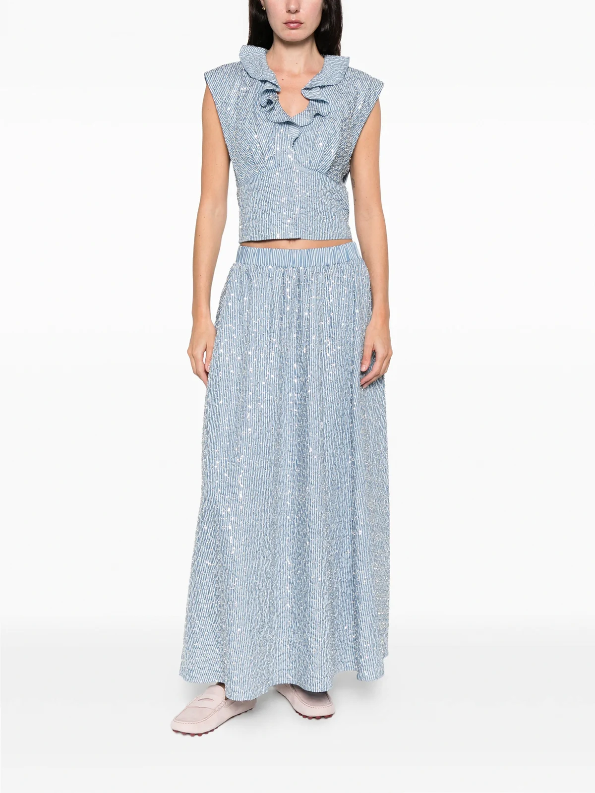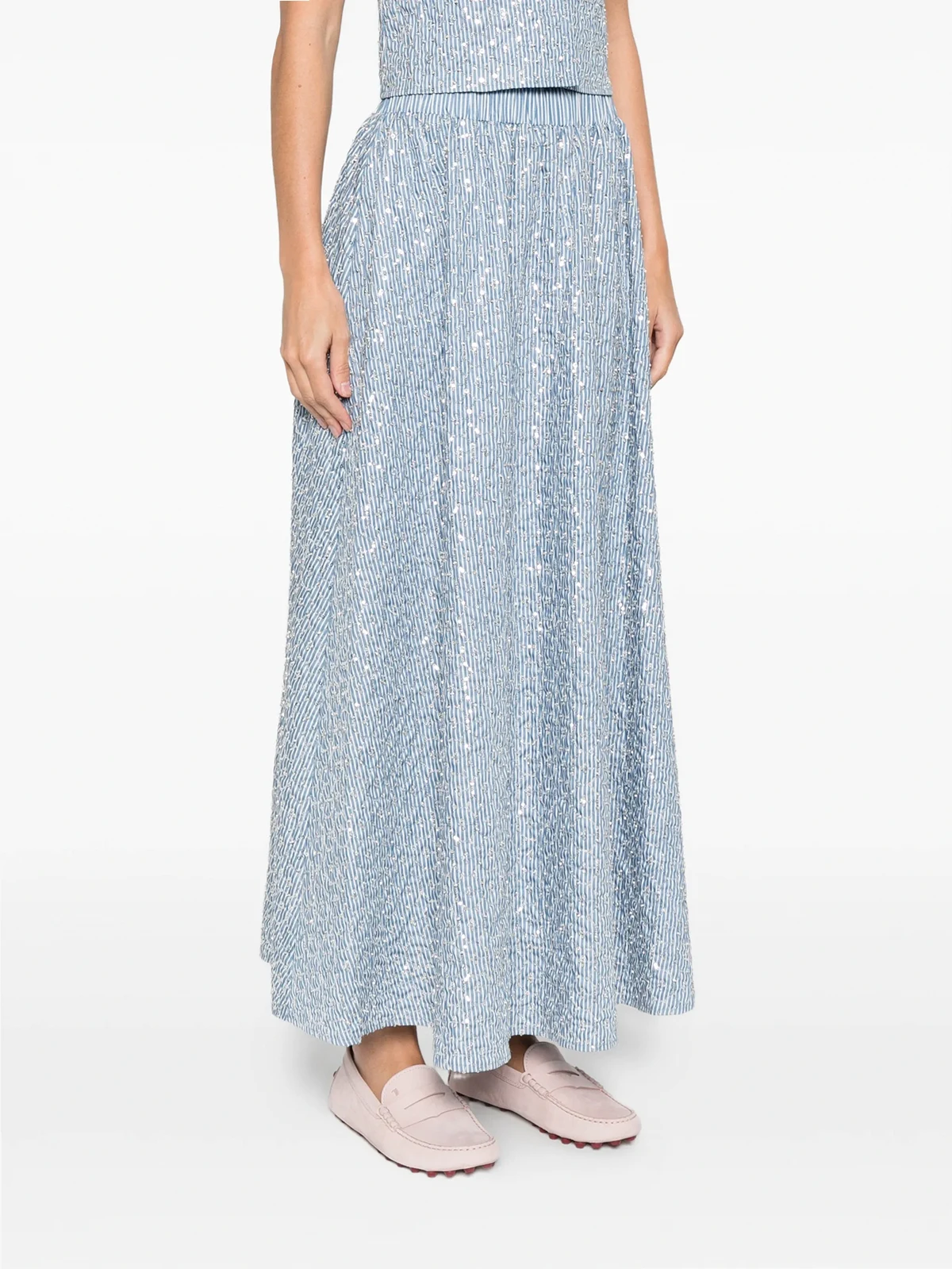 SANDRO striped-pattern embellished maxi skirt