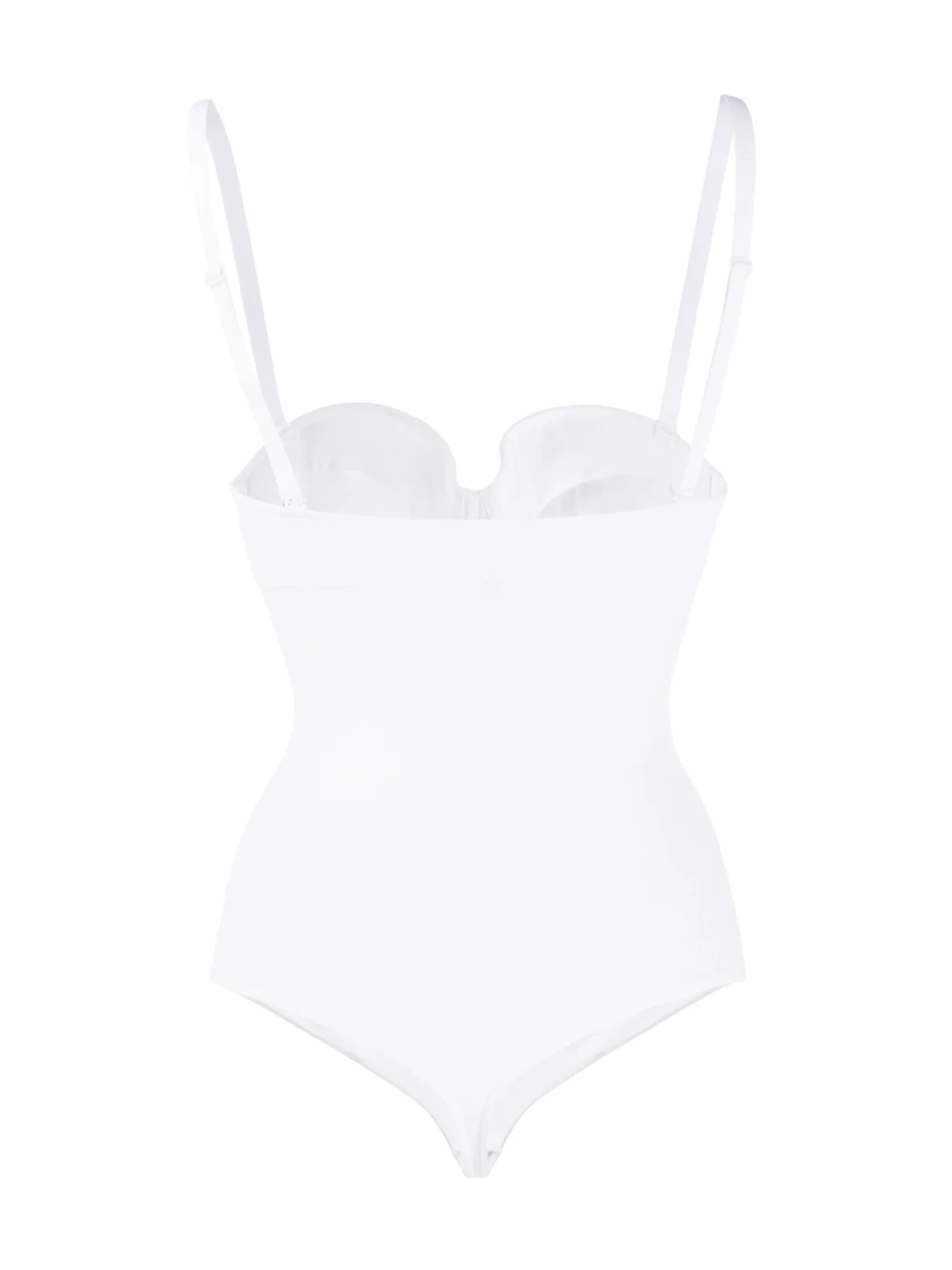White Mat de Luxe Form body from Wolford featuring spaghetti straps, a bustier top, a stretch fit, a slim fit, a secure fit and sewn-in cups. Underwear and lingerie must be tried on over your own garments.