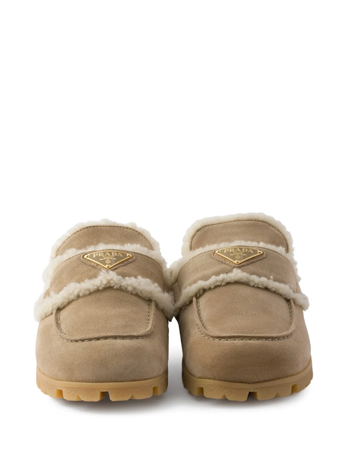 Prada shearling logo-plaque mules
