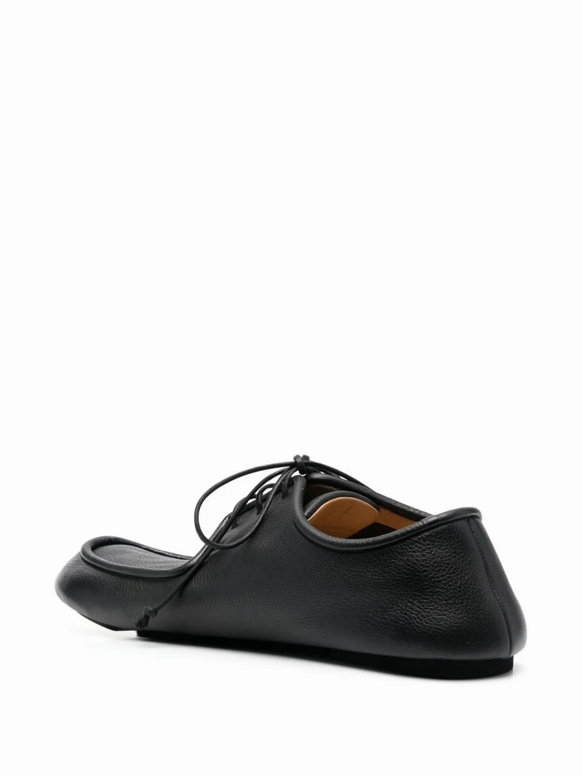 black leather leather lining round toe front lace-up fastening branded insole flat rubber sole