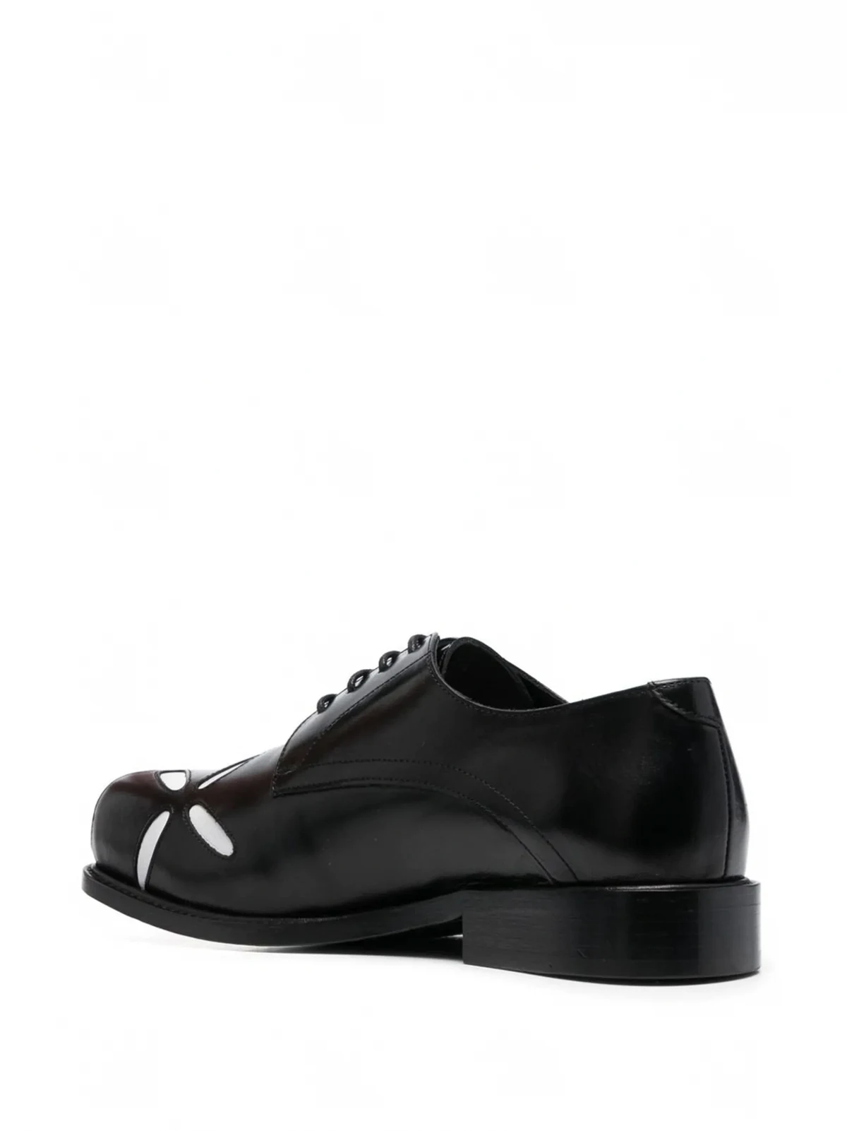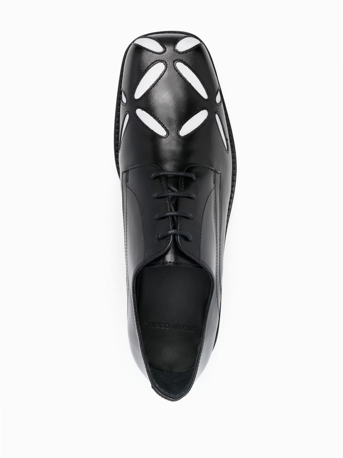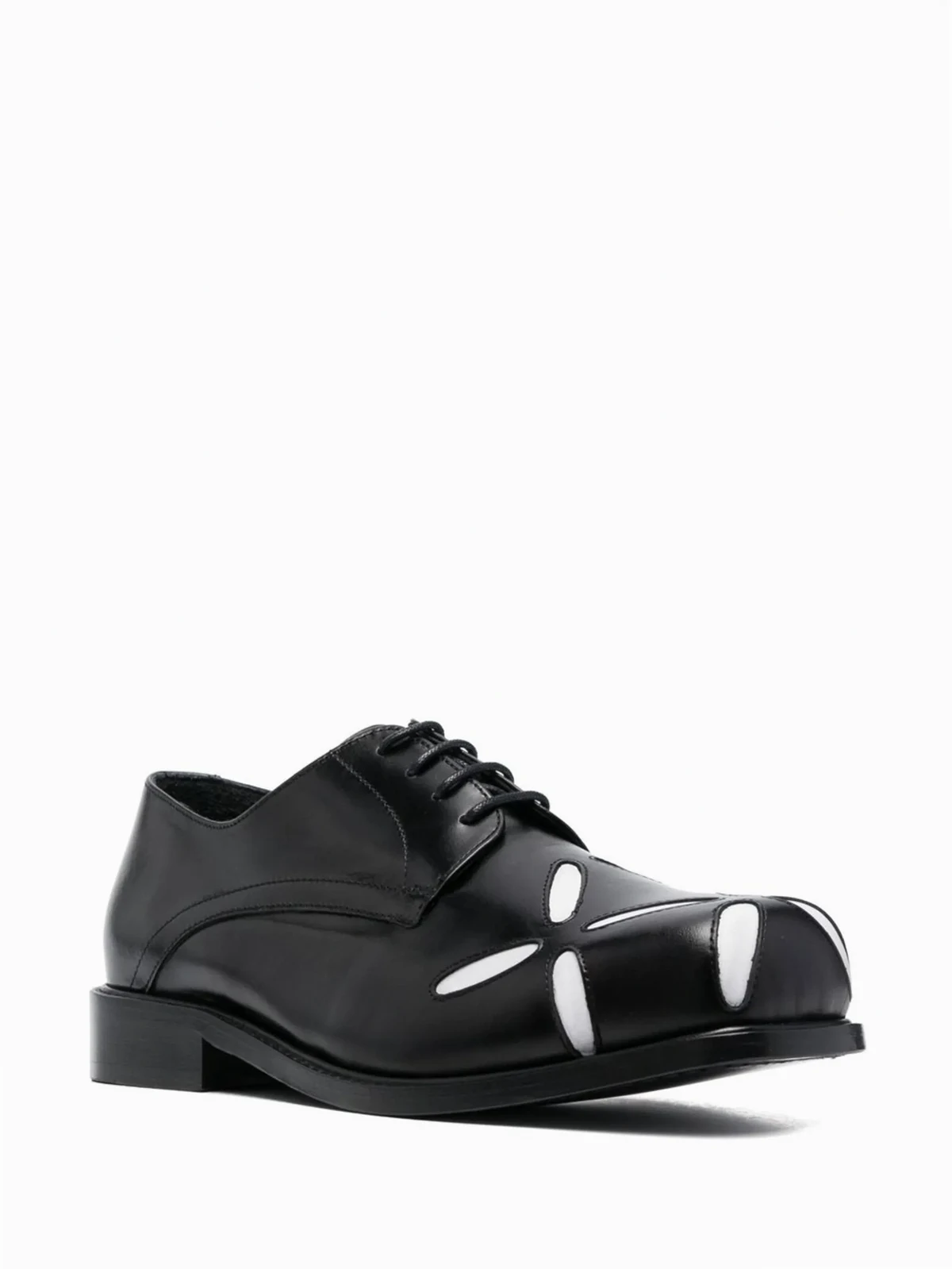 black/white leather square toe debossed detailing front lace-up fastening leather sole panelled design