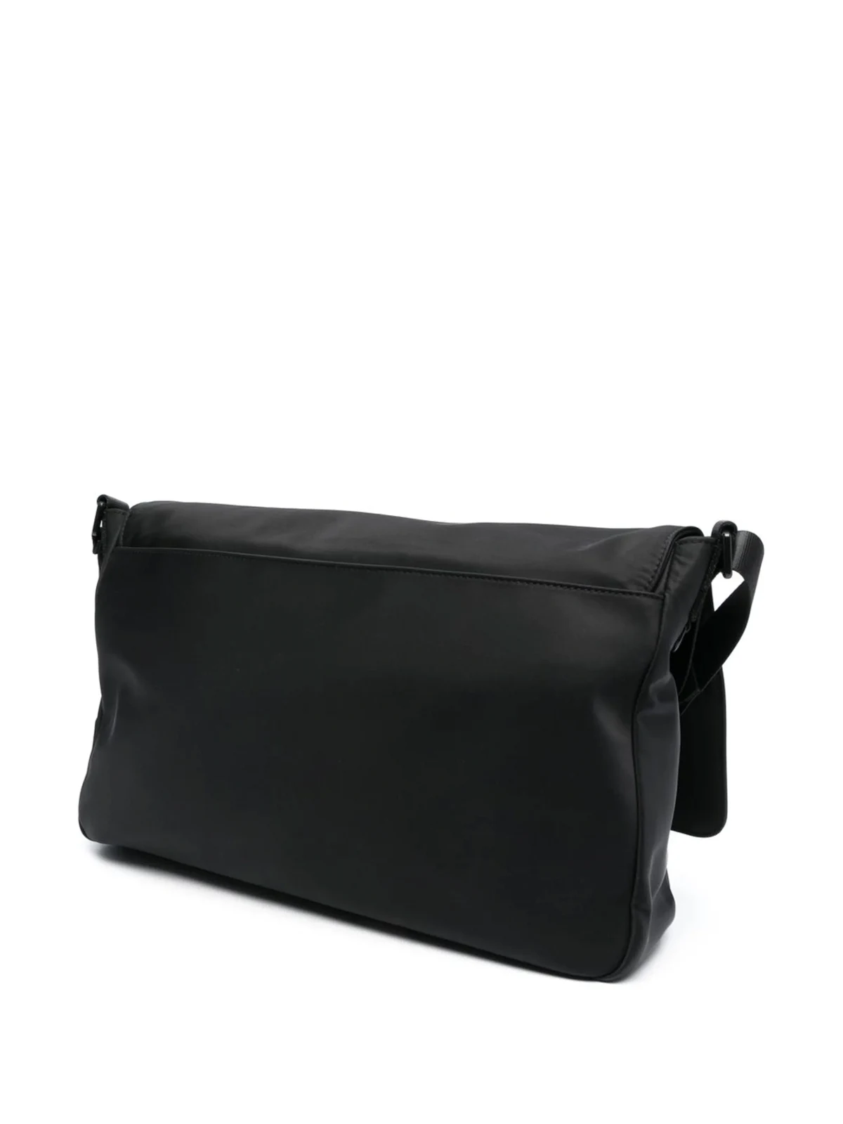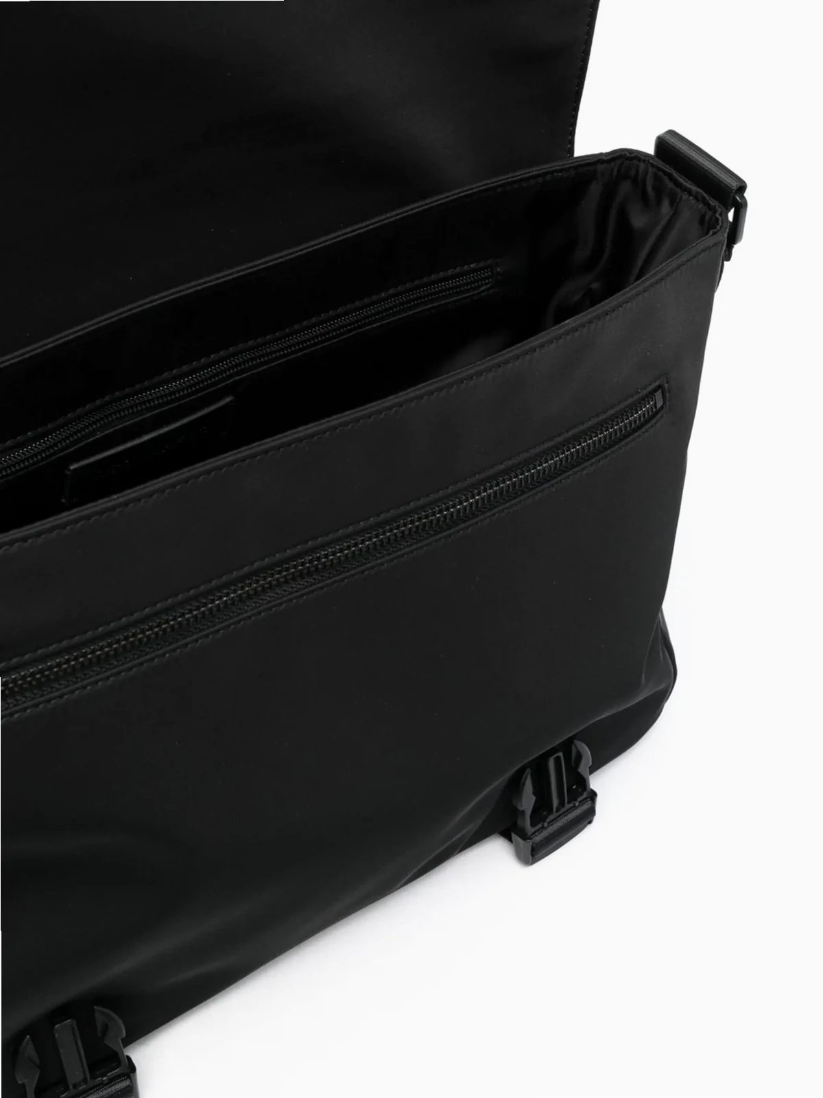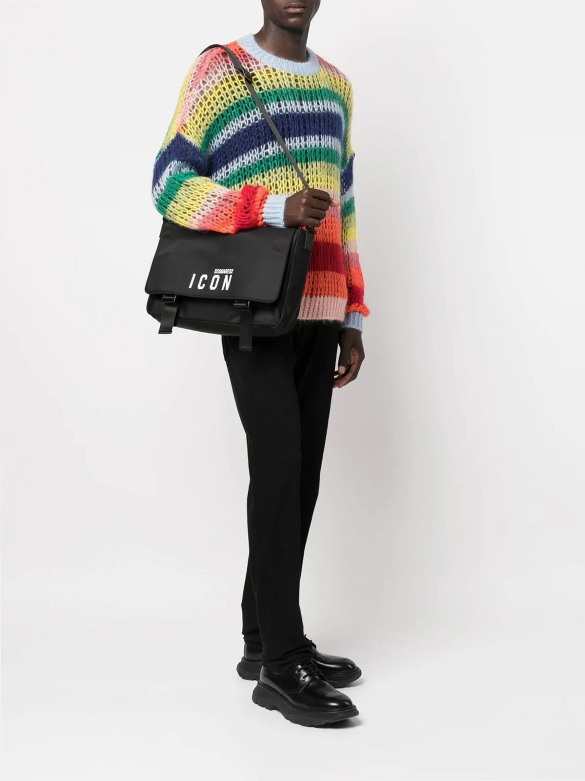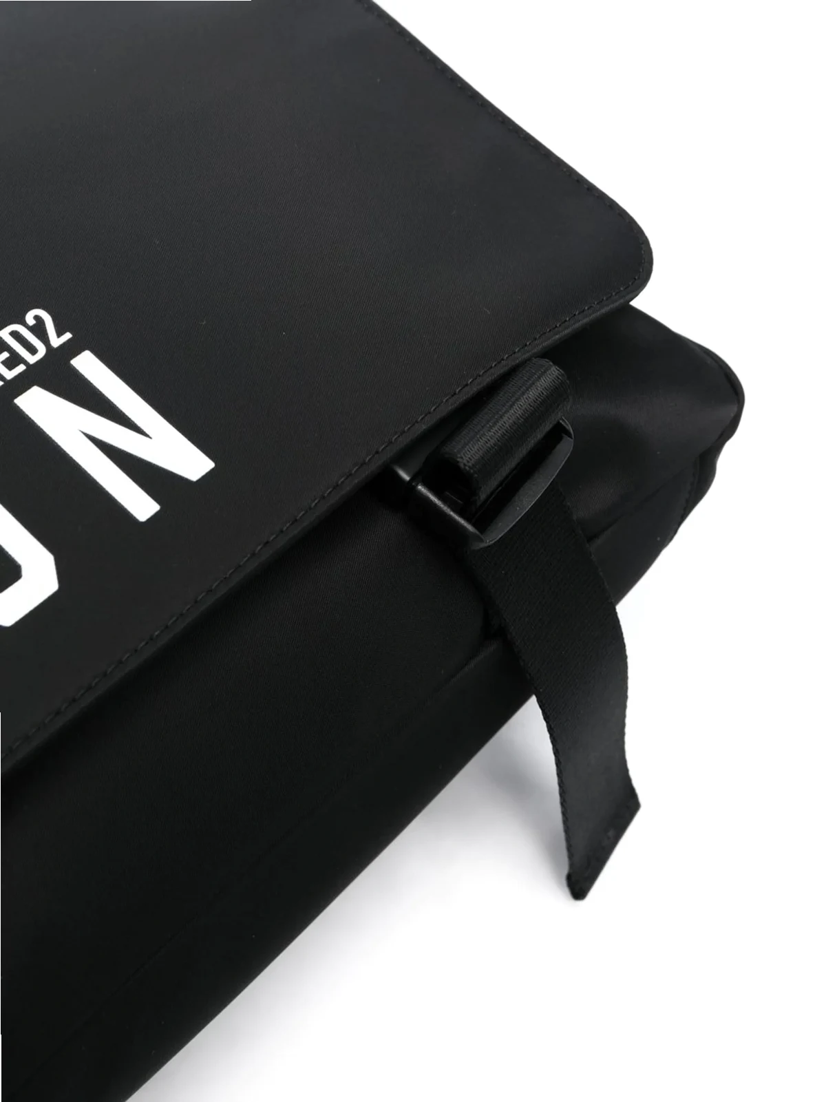 black/white signature Icon motif logo print to the front adjustable shoulder strap foldover top double buckle fastening front zip-fastening pocket main compartment internal zip-fastening pocket