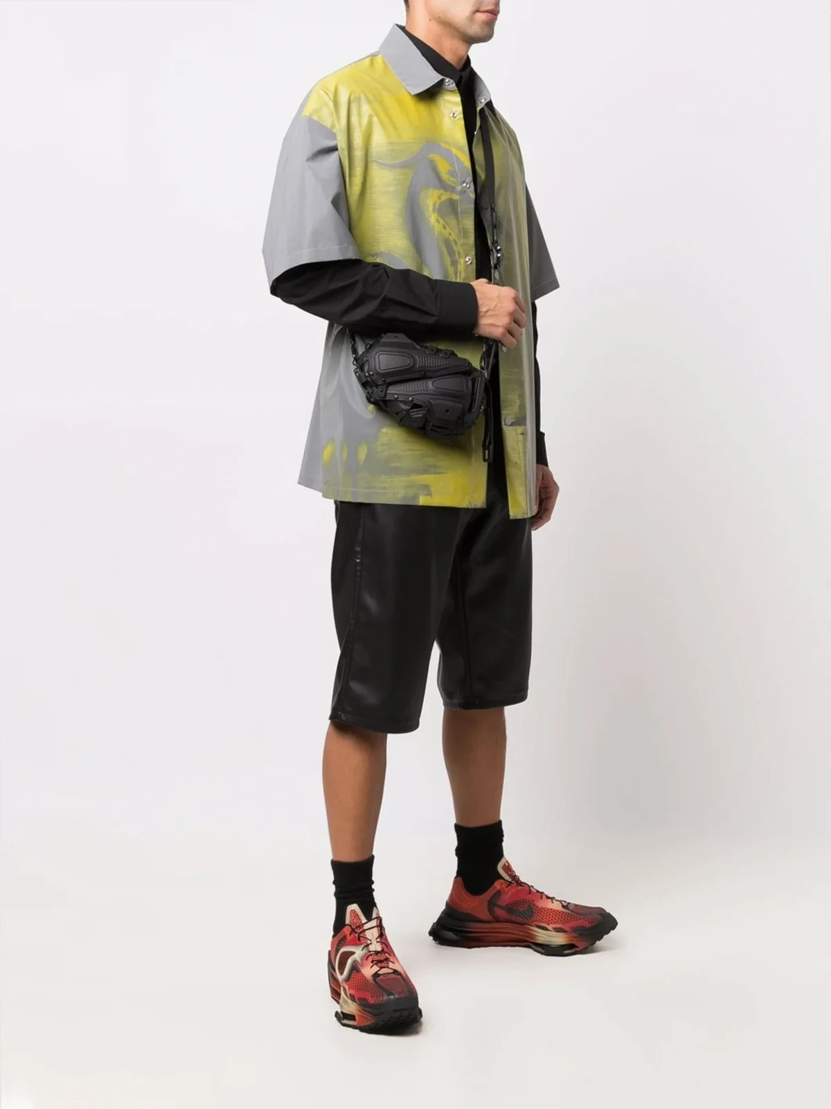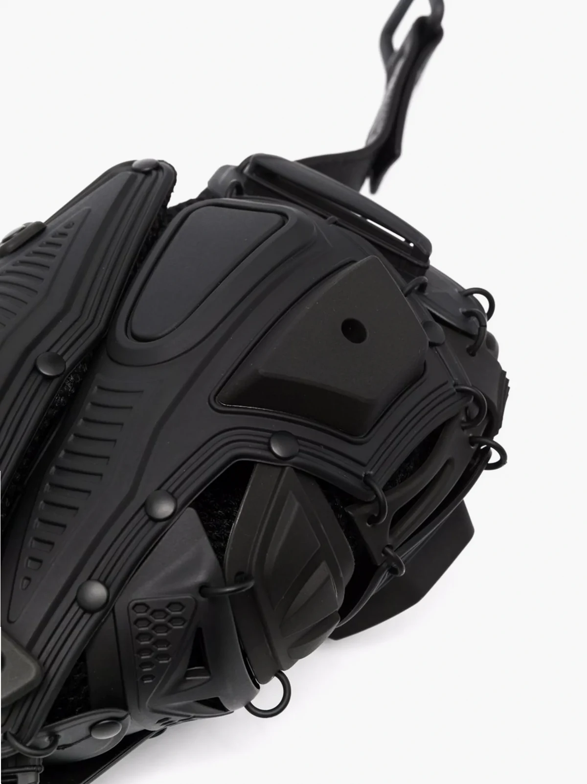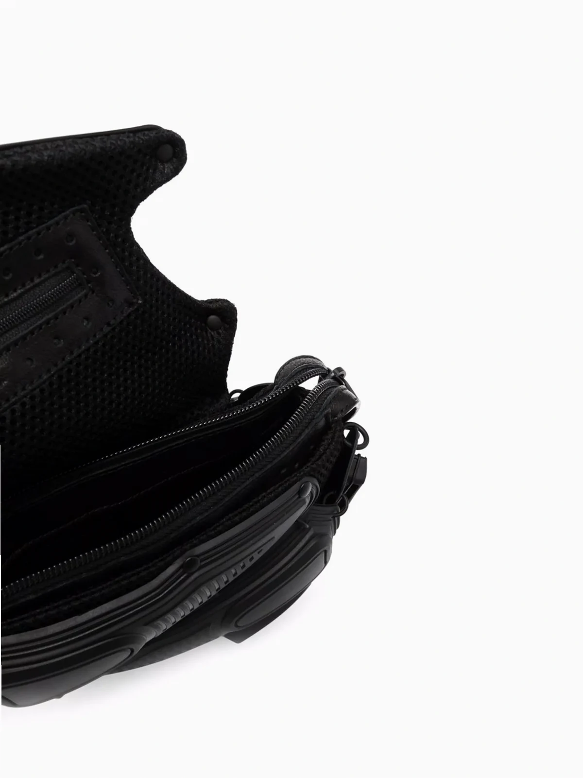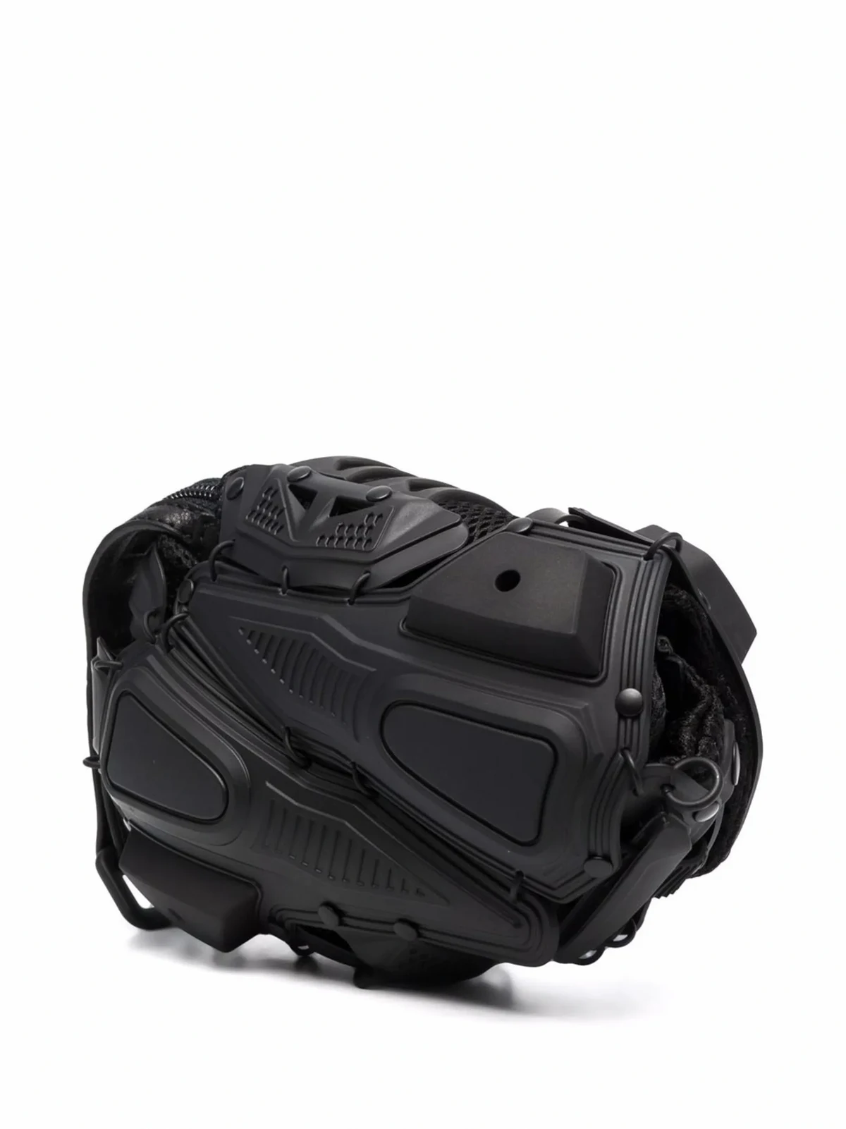 black panelled design asymmetric design foldover top main compartment single shoulder strap