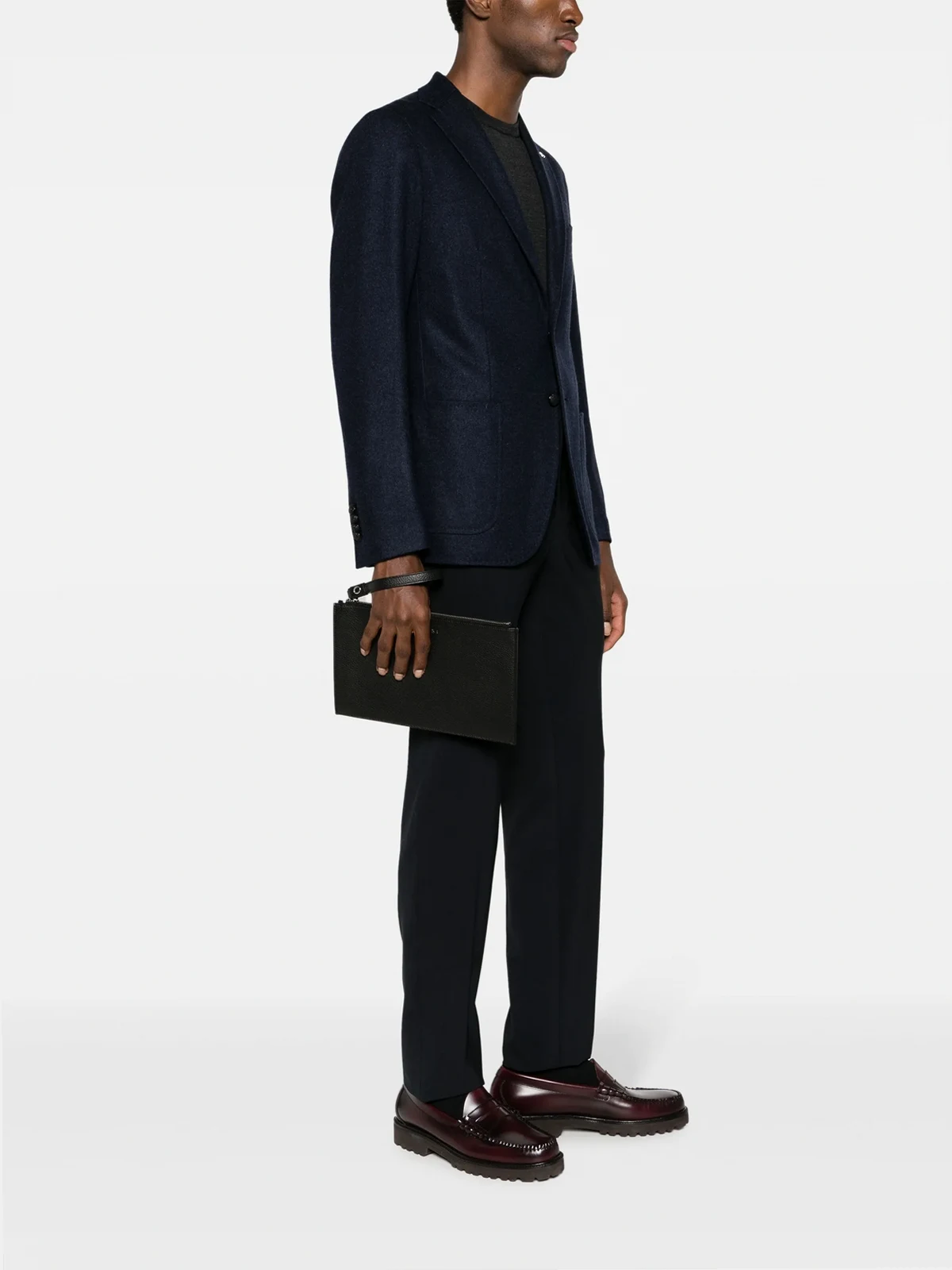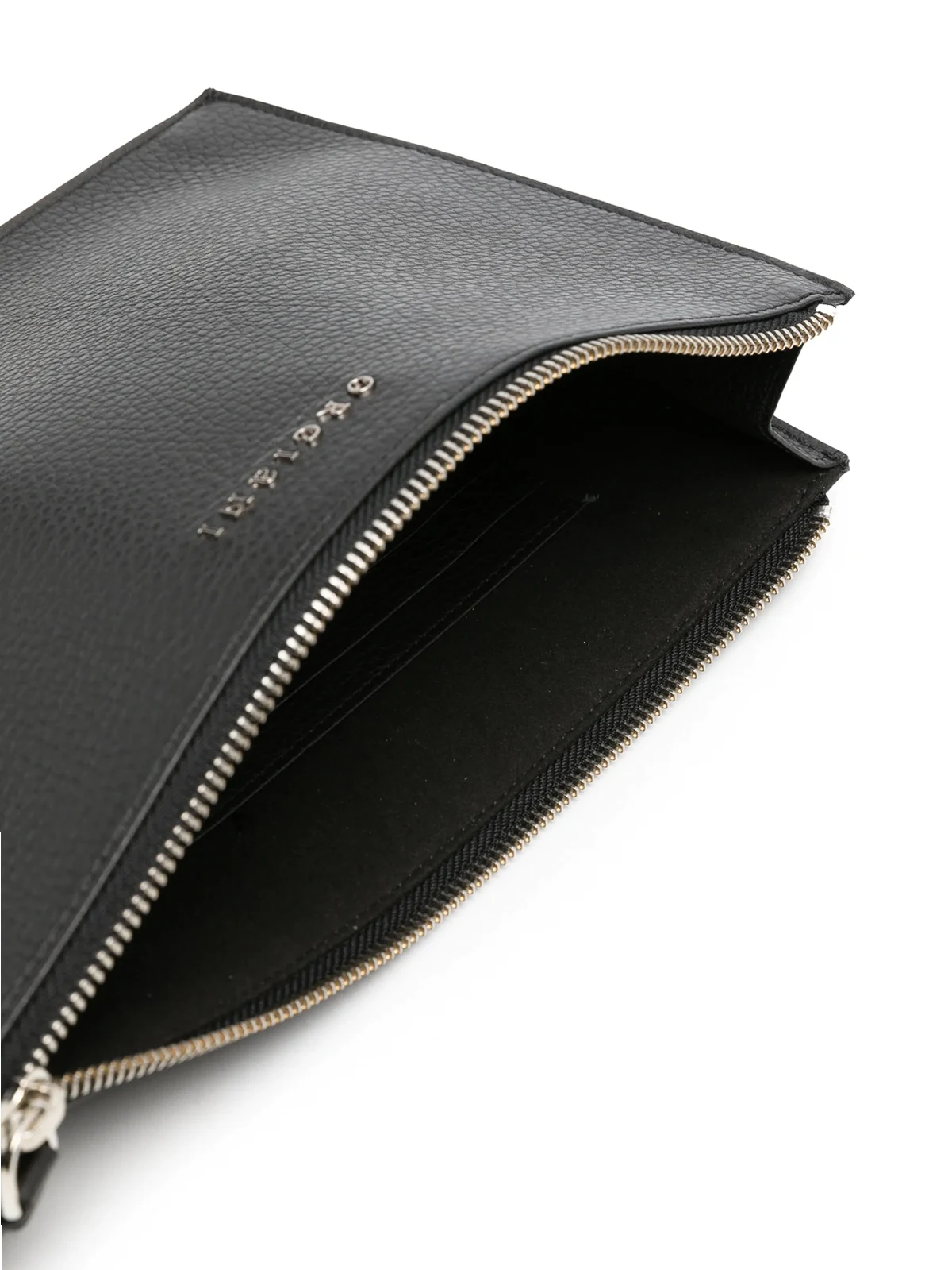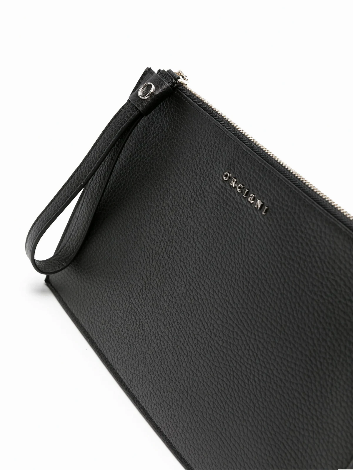 Orciani logo-lettering leather clutch