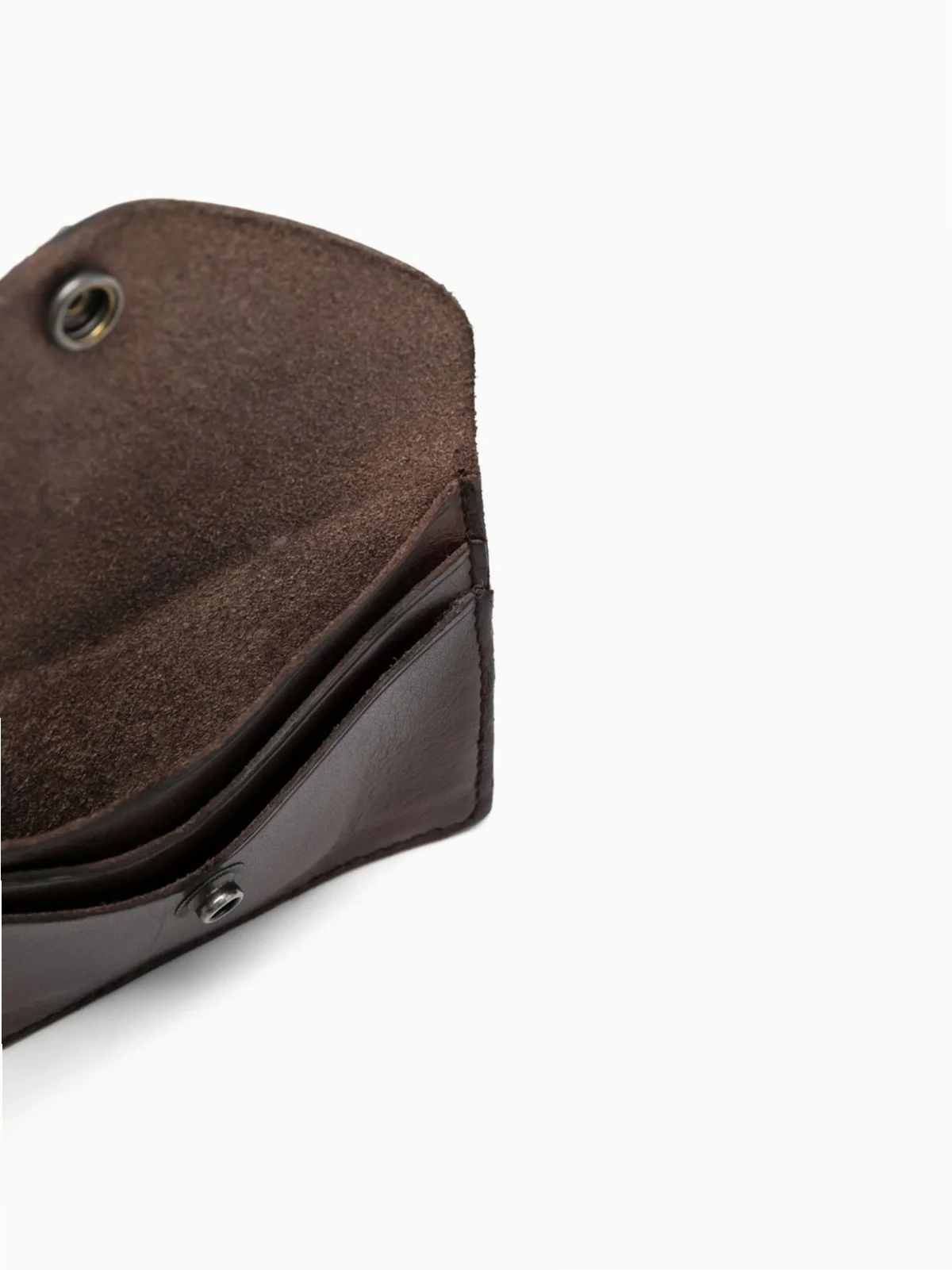 brown calf leather snap-fit fastening card slots embossed logo to the rear