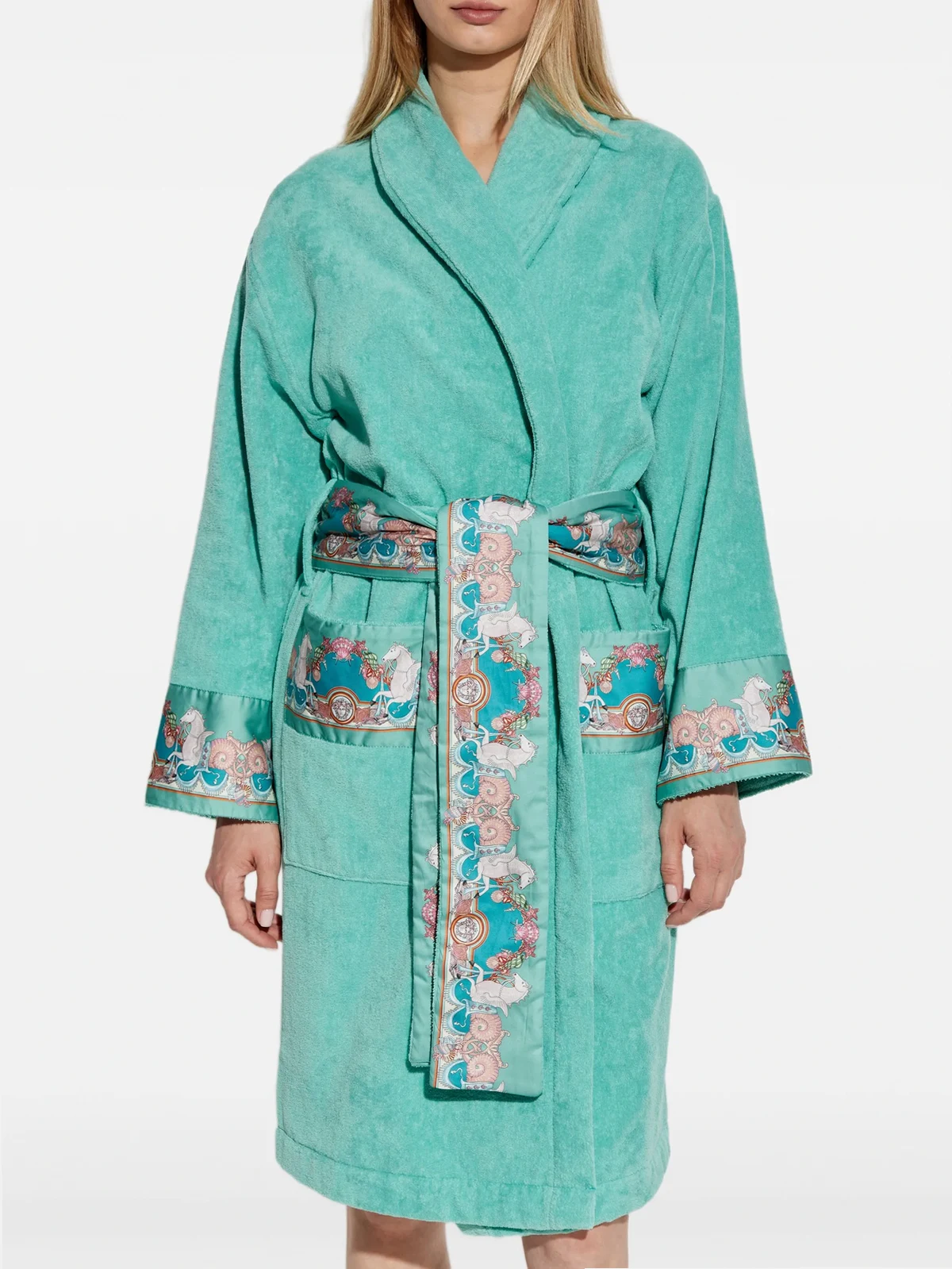 Versace turquoise embroidered robe