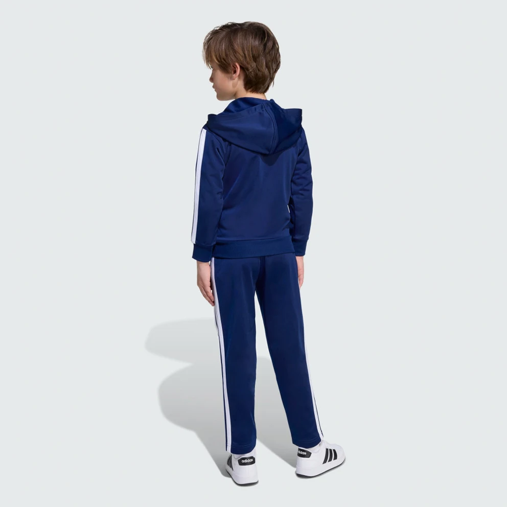 For kids who like to keep moving, this adidas tracksuit is ready for anything. The soft tricot build is perfect for playtime, and ribbed cuffs help the pants and jacket stay in place as they run and jump. Signature 3-Stripes down the arms and legs give this set a sporty look. CLIMACOOL wicks and disperses sweat for cool, dry and distraction-free performance.CLIMACOOL helps kids manage sweat with materials that wick and manage sweat quickly. Its fast-dry fibres give you a fresh-skin feel.