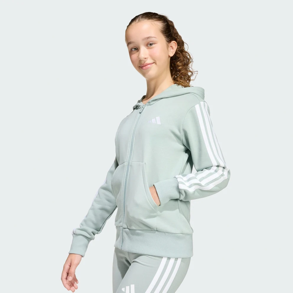 Enjoy everyday comfort with the Essentials Full Zip Hoodie. Whether it's a day at school or playtime with friends, the regular fit allows for a broad range of movement, making it a great choice for active days.Crafted from French terry, this hoodie offers a soft touch against the skin. The full zip closure provides easy wearability, while the snug hood construction helps kids stay cosy on chilly mornings. With the iconic adidas 3-Stripes and embroidered sign-off, this is a piece that speaks to both style and heritage. Suitable for layering, it is made for those who value simplicity and ease.This hoodie features a thoughtful design and durable materials that make it ready for whatever the day brings. Embrace both style and function, and make it your go-to for everyday adventures.