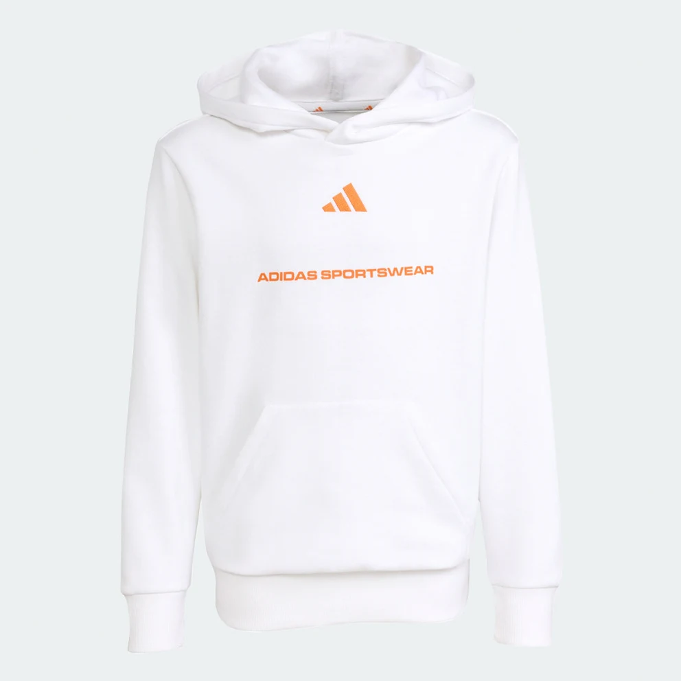 When the sun sets or the weather cools, this hoodie will keep you feeling warm and comfortable. Soft fleece holds in heat and feels cosy against the skin, while the kangaroo pocket provides a place to tuck cold hands. A bold adidas slogan adds a sporty touch.