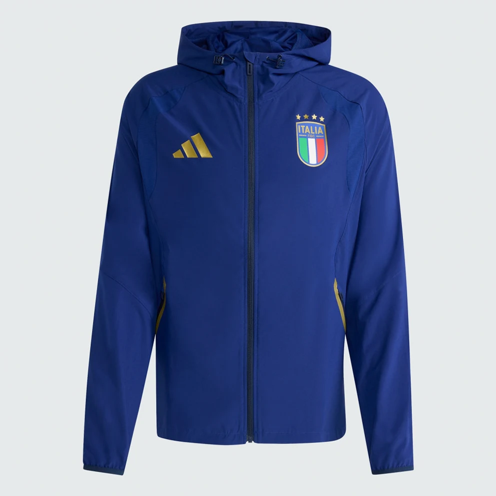 The Italy Tiro Travel Full Zip windbreaker is a fresh take on football-inspired aesthetics. With its clean, modern silhouette, it delivers a heritage-inspired, street-ready look.The plain weave fabric delivers a lightweight, relaxed feel, cut for comfort on the move. Thanks to the full zip closure and adjustable hood it provides coverage in changing and unpredictable weather conditions.The look is completed by the Italian crest and the iconic adidas Performance branding, for a versatile jacket that combines functionality and fashion in singular style.