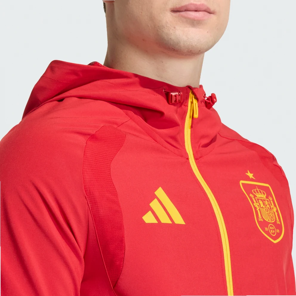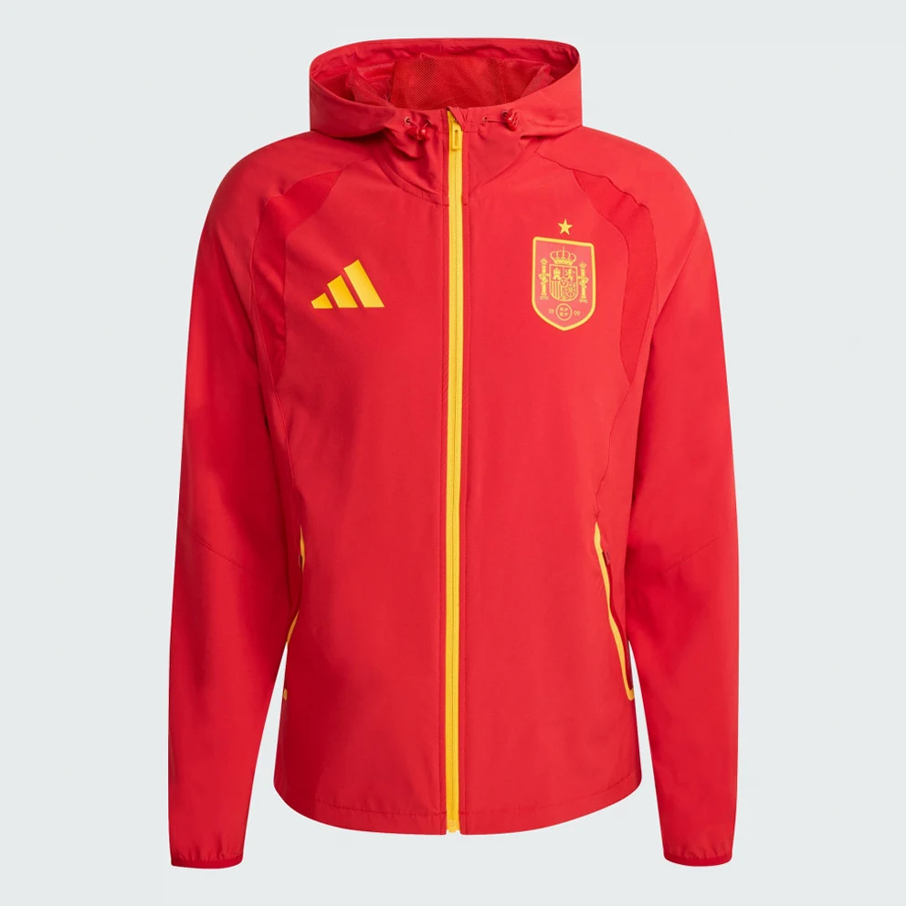 Embrace football-inspired style with the Spain Tiro Travel Full Zip Windbreaker. Designed for those who live and breathe the beautiful game, this jacket combines the sleek aesthetics of streetwear with the technical precision of sportswear.Crafted with ergonomic cutlines, it offers a streamlined fit that moves with you, whether you're navigating city streets or cheering from the stands. The plain-weave fabric adds durability, while the full zip makes for a wearable piece that layers easily.As part of adidas' Performance line, this windbreaker raises the bar for lifestyle wear, making it a must-have for your casual collection. Embrace a fusion of football culture and modern design with this jacket, where style meets functionality.