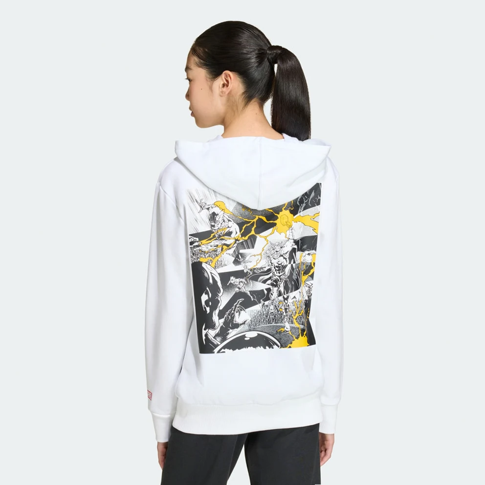 Football meets superheroes with the adidas Real Madrid Avengers Hoodie. Inspired by the epic collaboration between Real Madrid and Marvel's Avengers, this hoodie brings the excitement of the pitch and the thrill of comic book heroes into everyday wear.Crafted from soft French terry, it provides comfort during playtime and school activities. The drawcord hood adds a practical touch, keeping your little one snug and warm in cooler weather.Whether they're dreaming of scoring the winning goal or saving the world, this hoodie is designed to inspire. Let your child embrace their inner hero and show off their love for football and superheroes with this piece from adidas.