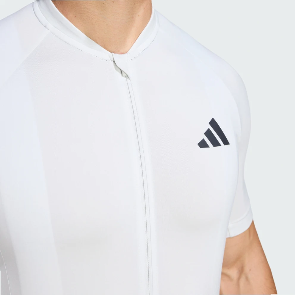 Our Essentials Cycling Jersey is your go-to apparel for daily rides, offering a blend of ease and performance. Designed with lower compression, it accommodates a variety of body types, while reflective details on the back and chest add a touch of style. Feel fresh with the Climacool technology incorporated in the jersey too. Fast-dry fibres deliver a fresh skin feel.With three back pockets, you have ample storage for essentials, making the jersey a great choice for long rides. The raglan sleeves provide freedom of movement, while the tape with adidas branding helps the jersey stay securely in place, even on challenging rides.Crafted from a soft-touch, breathable fabric, the jersey is all about comfort. Whether you're cycling through city streets or country roads, this adidas jersey is designed to support your journey, every pedal of the way.